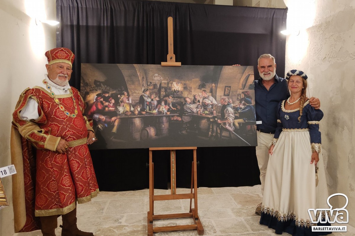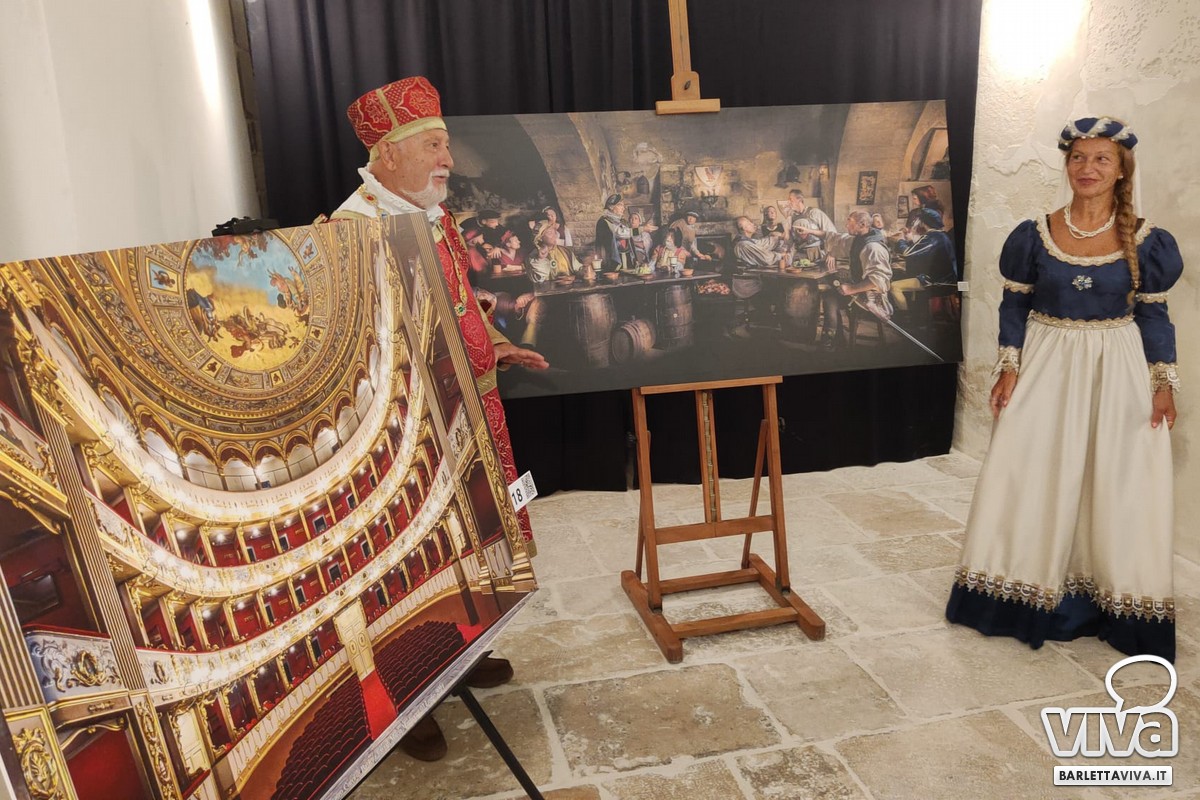Tra le opere esposte, spiccano tre fotografie che celebrano l'identità cittadina: "La Disputa", evocazione della celebre Disfida di Barletta, con i figuranti del gruppo storico "I Fieramosca" in abiti d'epoca; "Il Trabucco", simbolo della tradizione marinara; e "Il Teatro Curci", cuore pulsante della vita culturale barlettana.