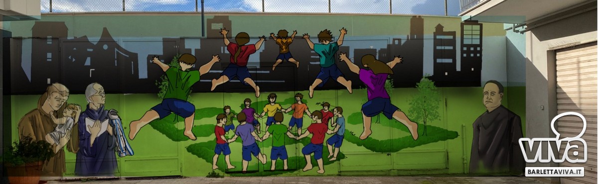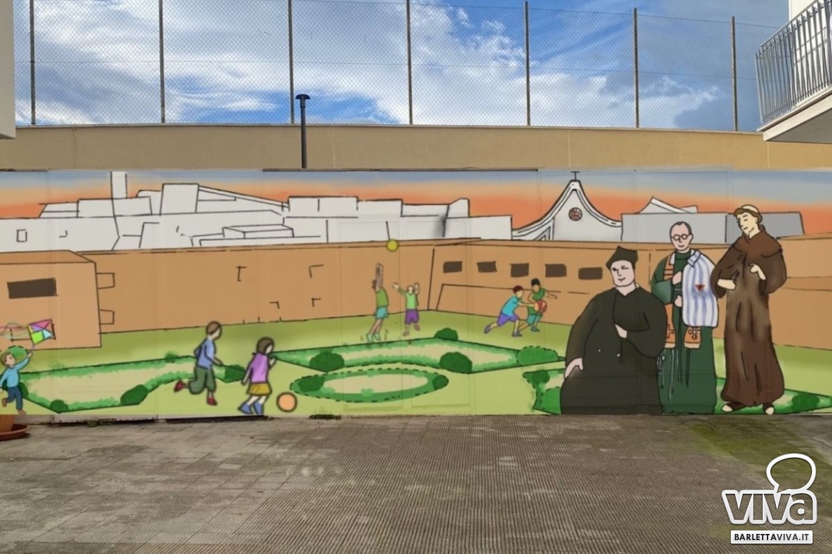 Si è svolto nella serata di ieri, presso il centro pastorale intitolato a San Massimiliano Kolbe, nel rione Medaglie d'Oro in Via Vitrani, l'incontro tra i residenti del quartiere, il vice parroco della parrocchia del Buon Pastore Don Claudio Gorgoglione, il vice sindaco Gennaro Cefola, e il presidente del Comitato spontaneo Rione Medaglie d'oro, incontro avente a tema la realizzazione di un murale sul muro che separa Via Vitrani dal Velodromo "Simeone".Quattro le bozze di murale presentate da una rappresentanza del liceo artistico "Leontine De Nittis" composta dal massimo dirigente dell'istituto Prof. Antonio Diviccaro, dalla Prof. Maria Teresa Di Monte, e dalla studentessa Gaia Musti in rappresentanza degli studenti che hanno contribuito a realizzare le quattro bozze di murale in concorso, la cui vincente sarà resa nota tra domenica e lunedì al termine di una votazione che vedrà coinvolti tramite social, e non solo, i residenti del quartiere.