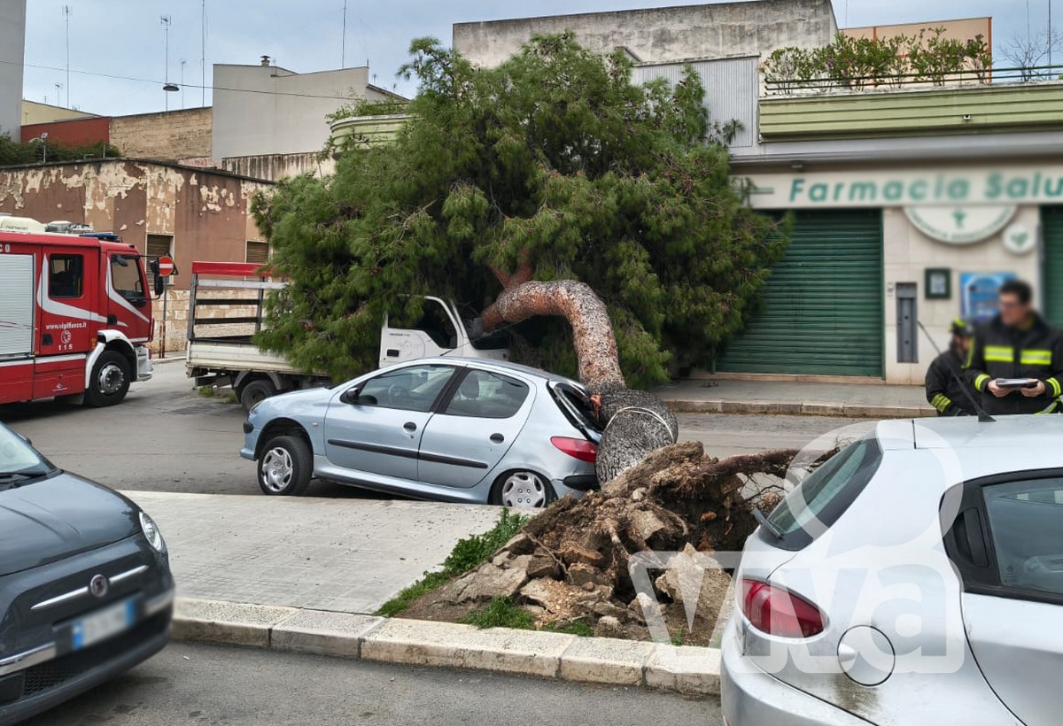 Il secondo, invece, è caduto pochi minuti più tardi in via Enrico Fermi, nei pressi di una farmacia, danneggiando le auto parcheggiate nei pressi della piantumazione.