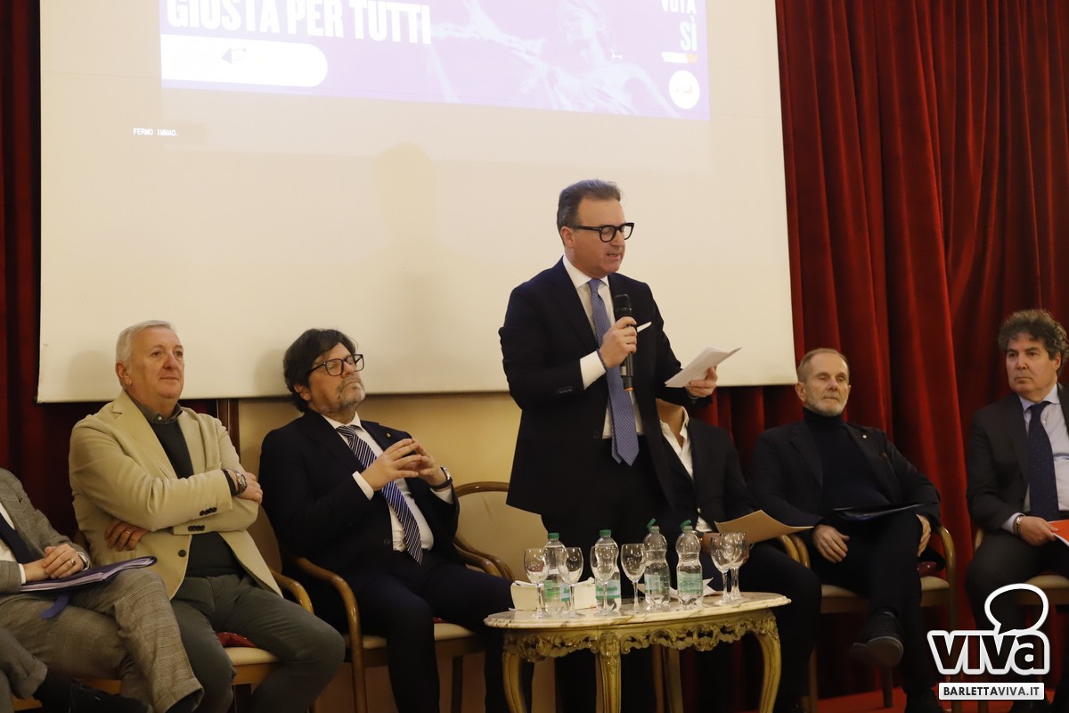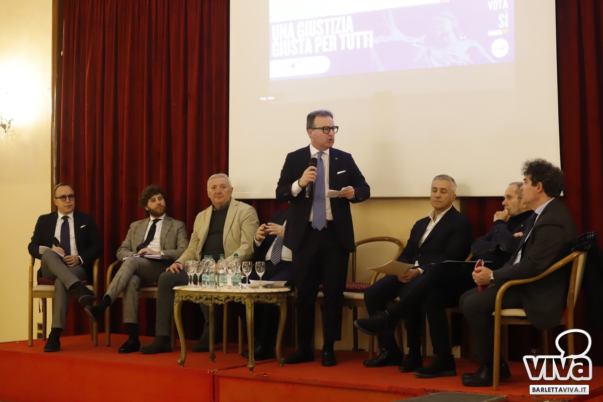 L'evento riguardante il referendum confermativo che si terrà il prossimo 22 e 23 marzo 2026, che è stato organizzato dai vertici territoriali di Forza Italia, e moderato dal giornalista Aldo Losito, ha visto la presenza del senatore barlettano Dario Damiani, dell'onorevole e capogruppo di Forza Italia in Commissione Giustizia Davide Bellomo, del magistrato barlettano nonché consigliere del TAR Puglia Dott. Carlo Di Bello, del presidente uscente della Camera Penale di Trani Avv. Giangregorio De Pascalis, del vice presidente dell'AIGA (Associazione Italiana Giovani Avvocati) Adamo Grieco, e dell'Avv. Giuseppe Cioce, presidente del Comitato Nazionale 'Cittadini per il Si'.A fare gli onori di casa, l'architetto Biagio Capacchione, presidente del Circolo Unione.