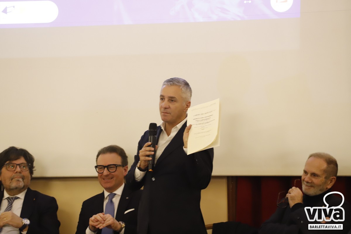 Assente per motivi istituzionali il sindaco di Barletta Cosimo Cannito, con i saluti da parte dell'amministrazione portati dal vice sindaco Gennaro Cefola.