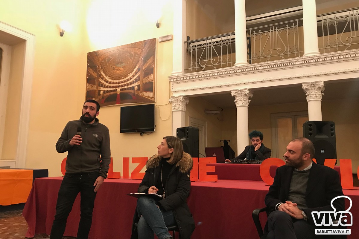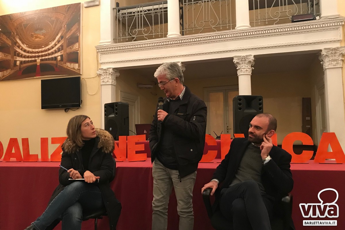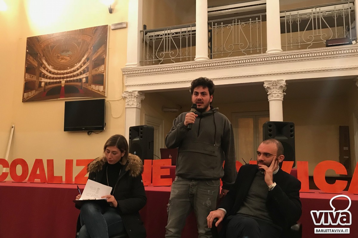 Si respira aria di arricchimento e innovazione, perché il pensiero comune è risollevare le sorti di Barletta, valorizzandone le risorse. Comincia il dibattito. A moderare l'incontro Francesca Rizzi la quale passa il microfono ad Antonio Quarto, proprietario di un nuovo ristorante in centro. «Mi tuffo a capofitto in questa avventura perché voglio decidere assieme a tutti i cittadini le sorti della nostra città. Penso alle mille proposte fatte in consiglio comunale per la questione dehors, tema irrisolto che colpisce gravosamente i nostri commercianti. Nessuno ha mai ascoltato la nostra voce». Si parla di lanciare il turismo attraverso sagre ed eventi musicali. Si parla del lavoro che manca e dei tanti, troppi giovani che lasciano famiglia e amici. Si discute di legalità e del gioco d'azzardo, una piaga silenziosa. Si riflette circa l'assenza di luoghi di aggregazione per bambini e anziani in pensione. Ci sono idee.