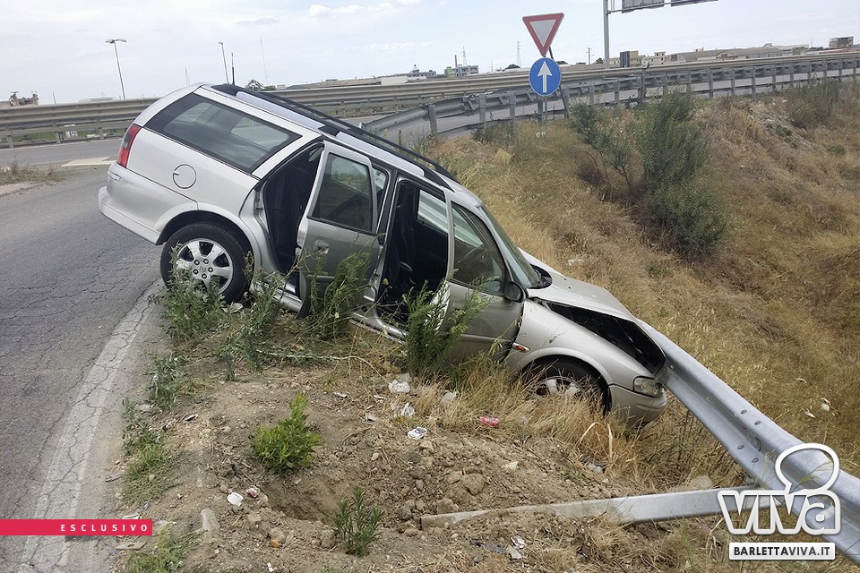 Aggiornamento - L'incidente stradale sarebbe avvenuto alle 15:50 e le cause non sono esattamente chiare al momento. Da un prima ricostruzione pare che un secondo veicolo - in transito lungo la SS16 in direzione Trani - abbia ostacolato il percorso alla Opel Vectra che procedeva allo stesso modo da Barletta verso Trani e che ha sbandato finendo la propria corsa sul guard rail della corsa di immissione alla statale dopo una violenta frenata. Sulla piazzola infatti è nettamente visibile il segno della frenata. Il veicolo si è schiantato ma senza gravi conseguenze per la giovane coppia presente nel mezzo. I due - non barlettani - sono stati trasportati all'ospedale "Dimiccoli" di Barletta ma non avrebbero riportato ferite grazie alle cinture di sicurezza correttamente allacciate.