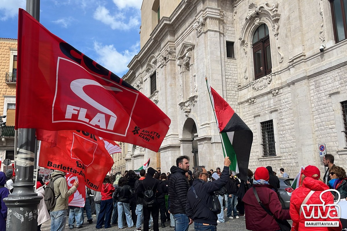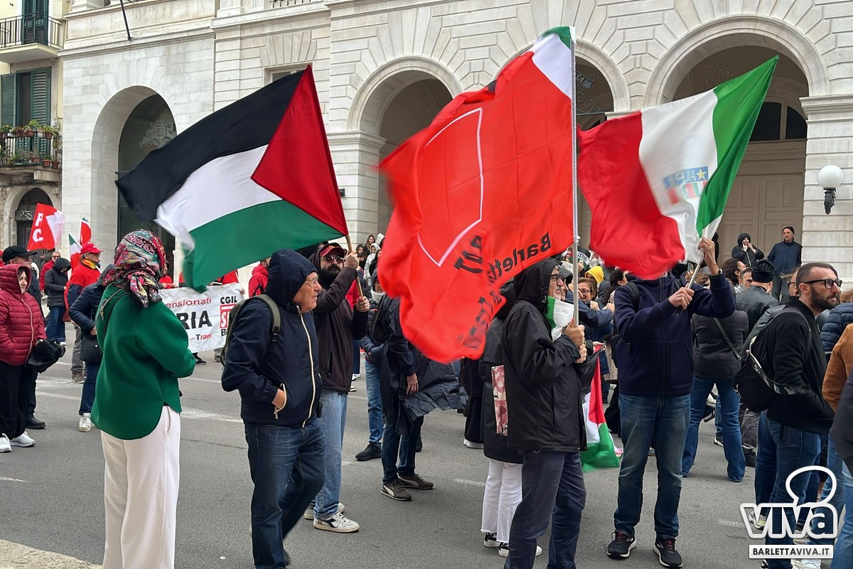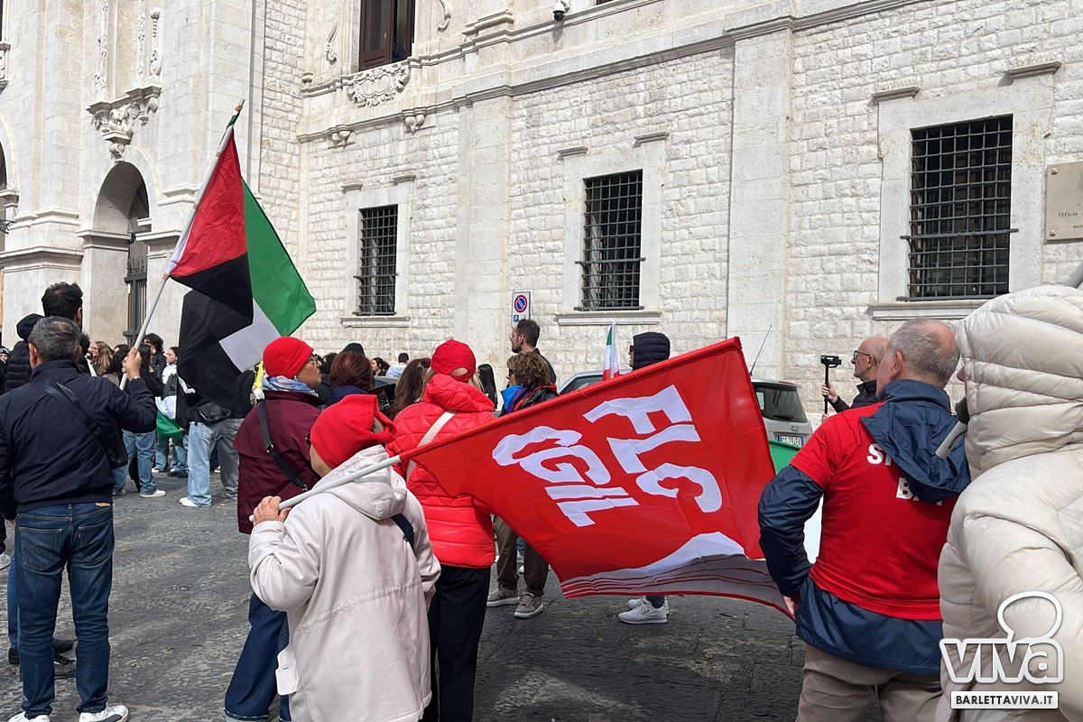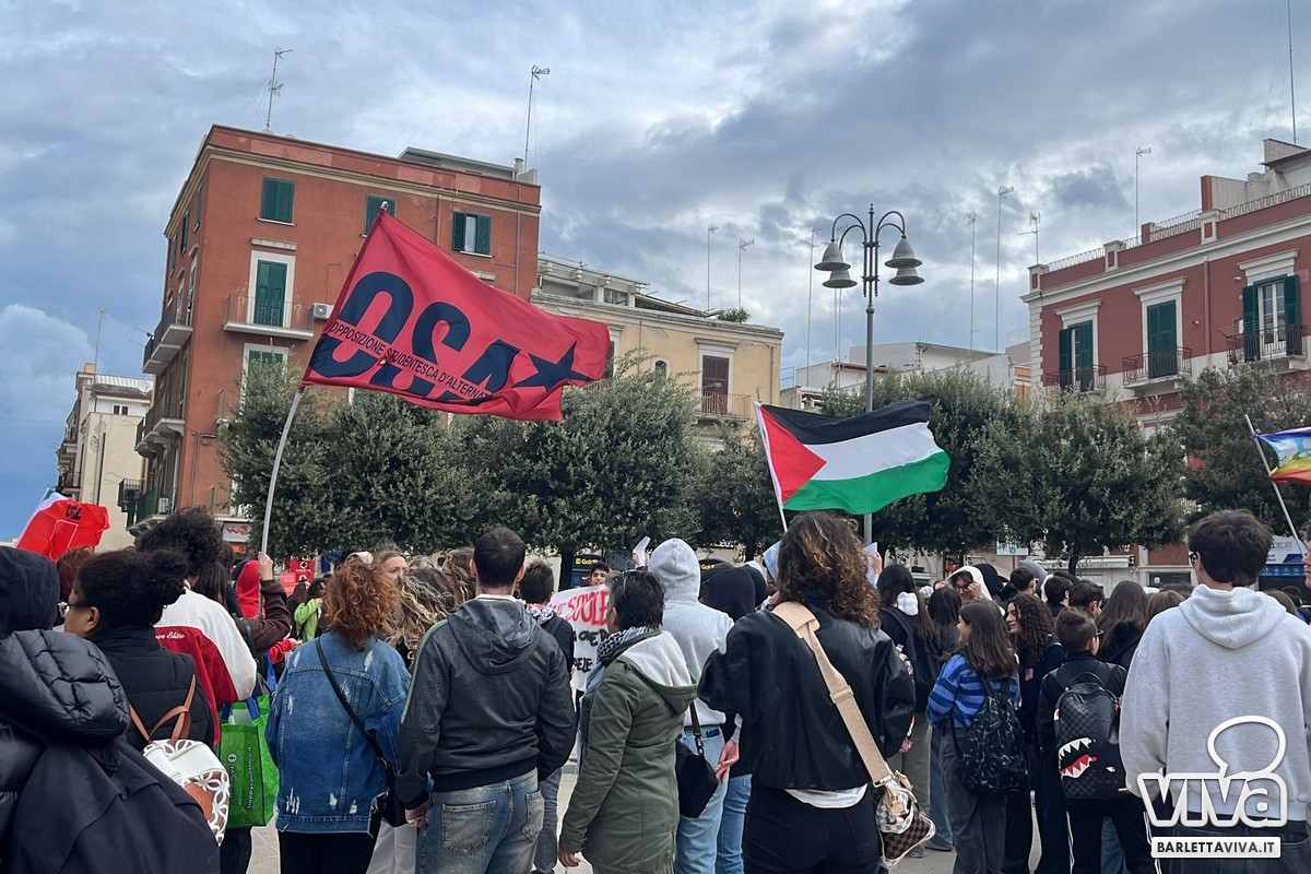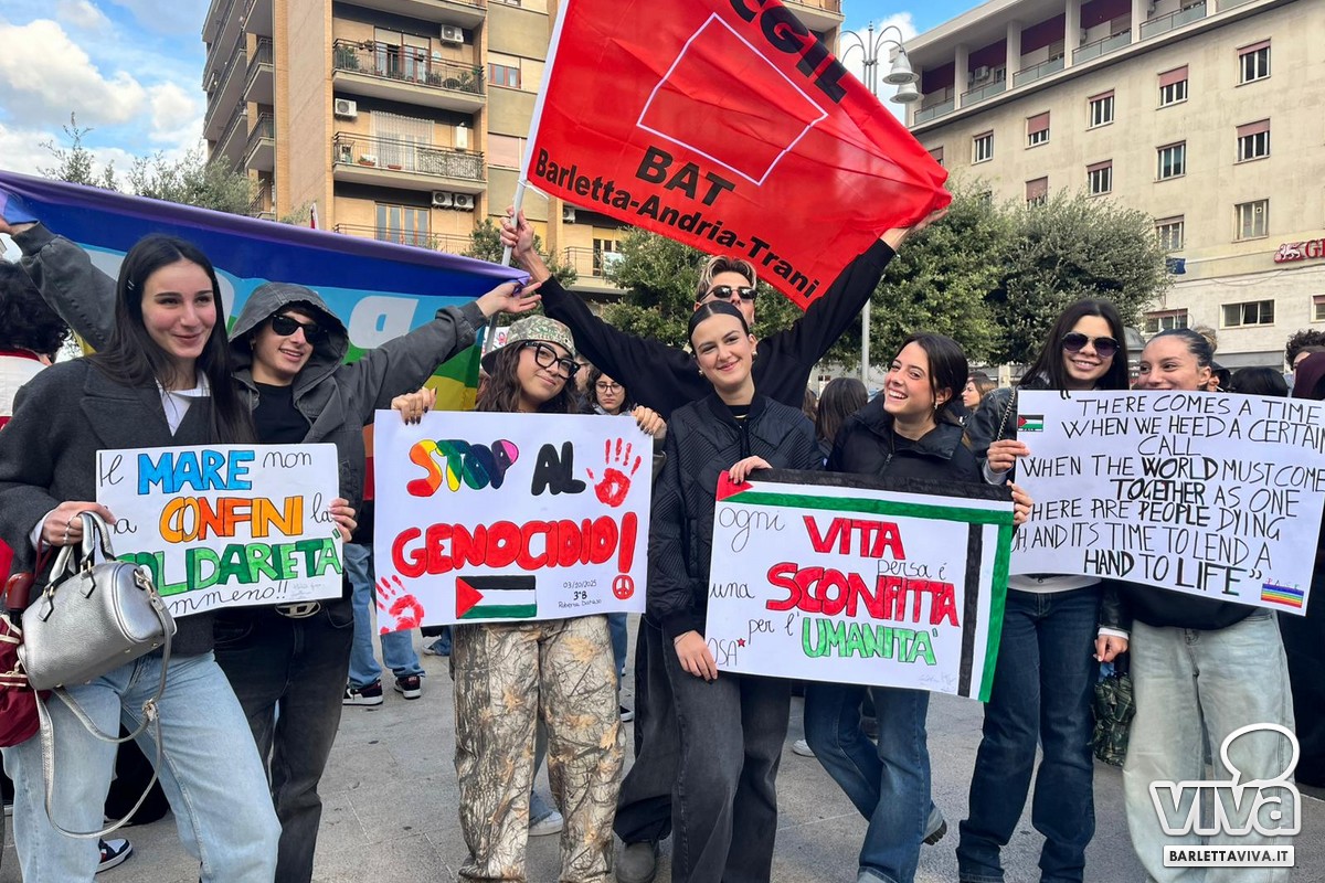 È stato soprattutto il mondo della scuola a raccogliere in massa l'appello della CGIL, che per la giornata di mobilitazione nazionale pro Palestina ha promosso un presidio nel centro cittadino di Barletta. A riempire la piazza cortei sindacali e centinaia di giovani, arrivati con cartelli, bandiere e striscioni di ogni tipo.