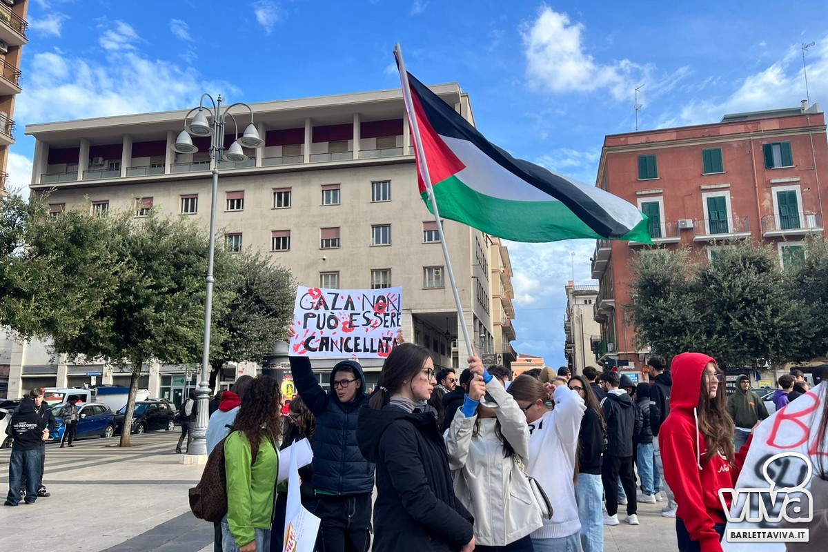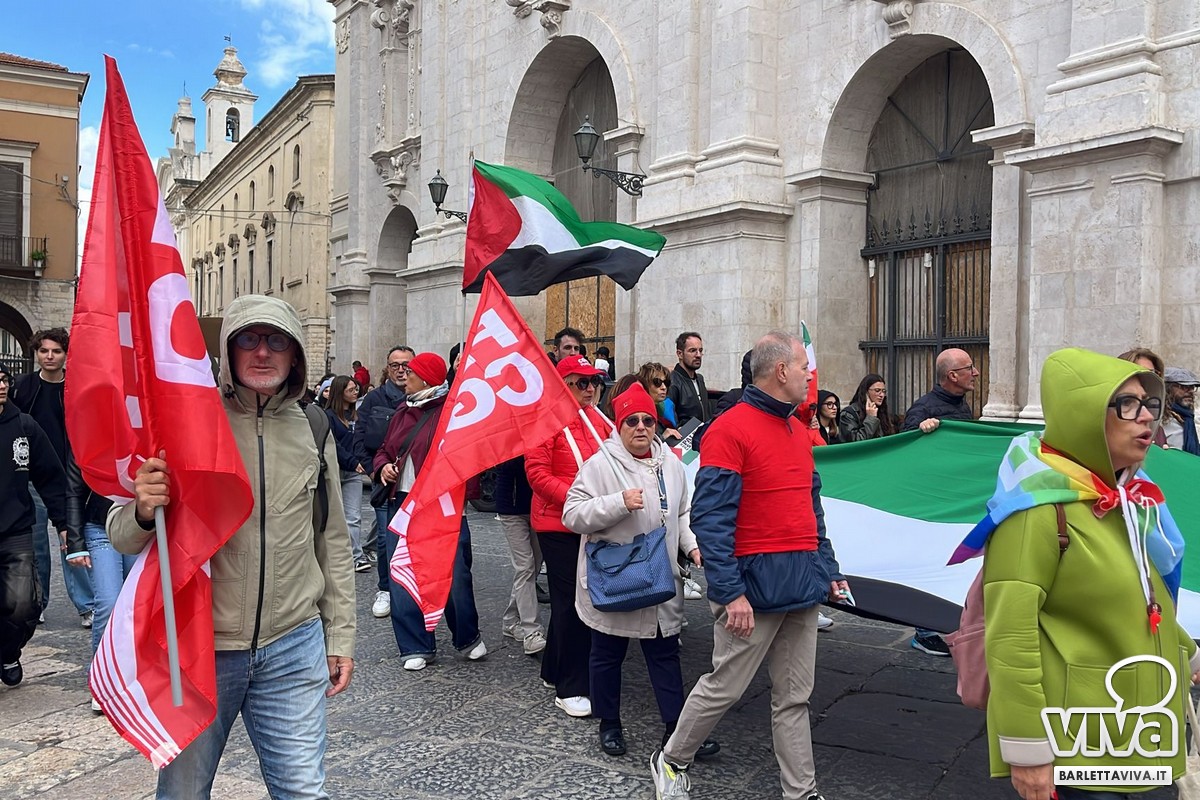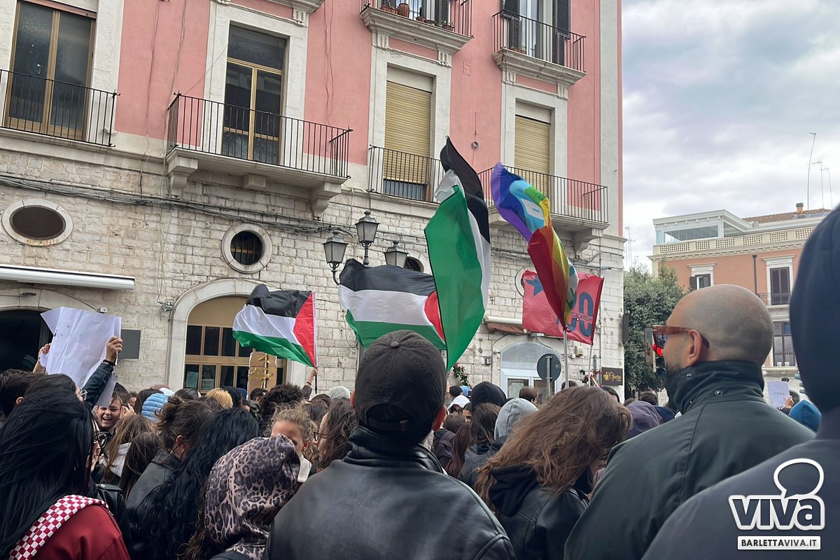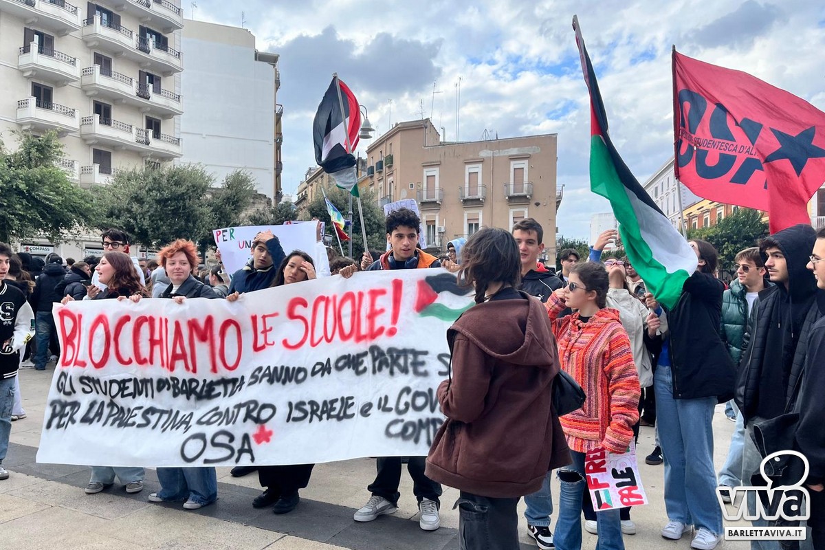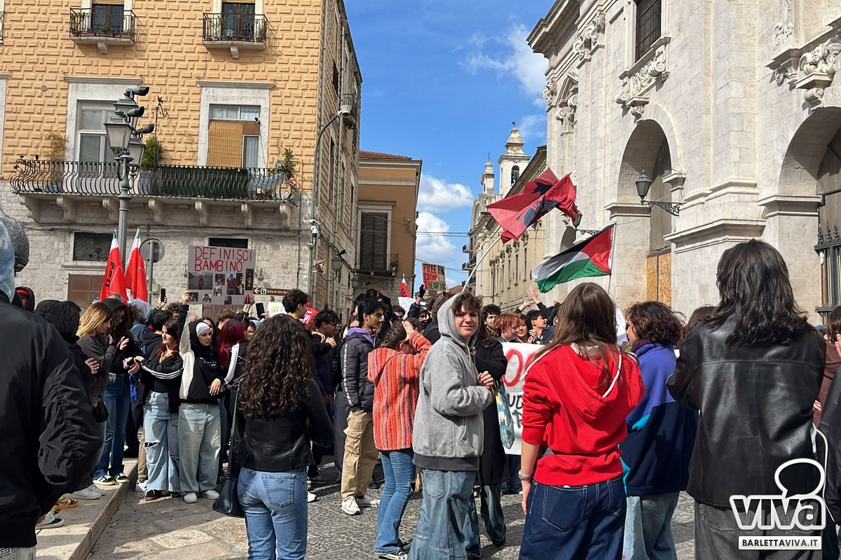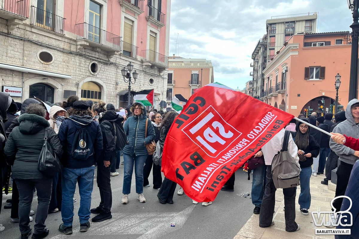 È stato soprattutto il mondo della scuola a raccogliere in massa l'appello della CGIL, che per la giornata di mobilitazione nazionale pro Palestina ha promosso un presidio nel centro cittadino di Barletta. A riempire la piazza cortei sindacali e centinaia di giovani, arrivati con cartelli, bandiere e striscioni di ogni tipo.