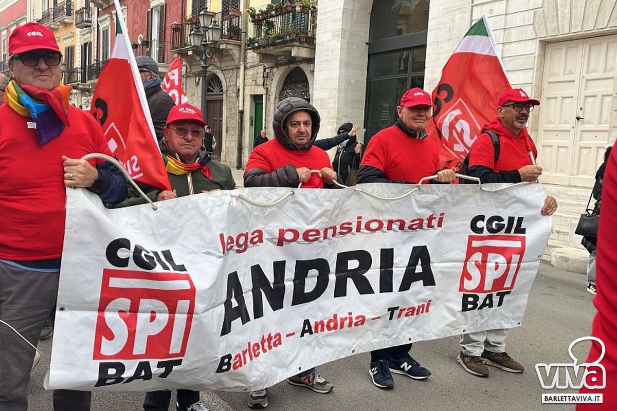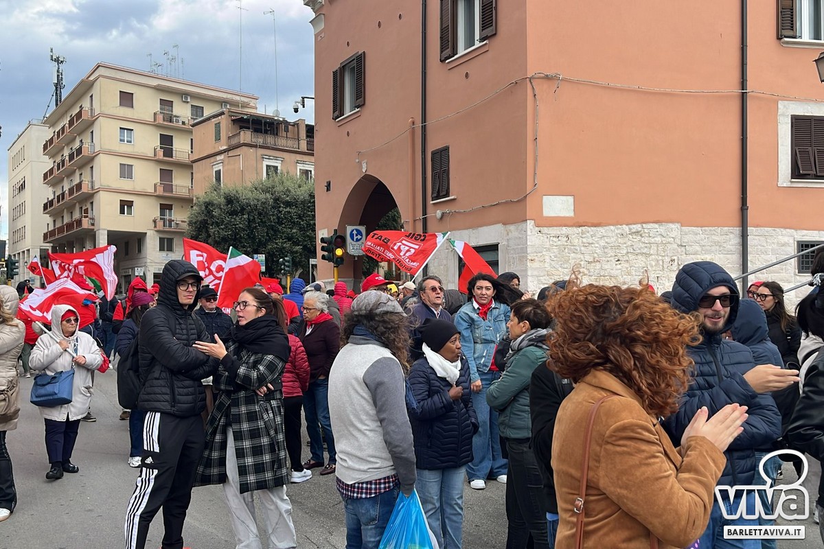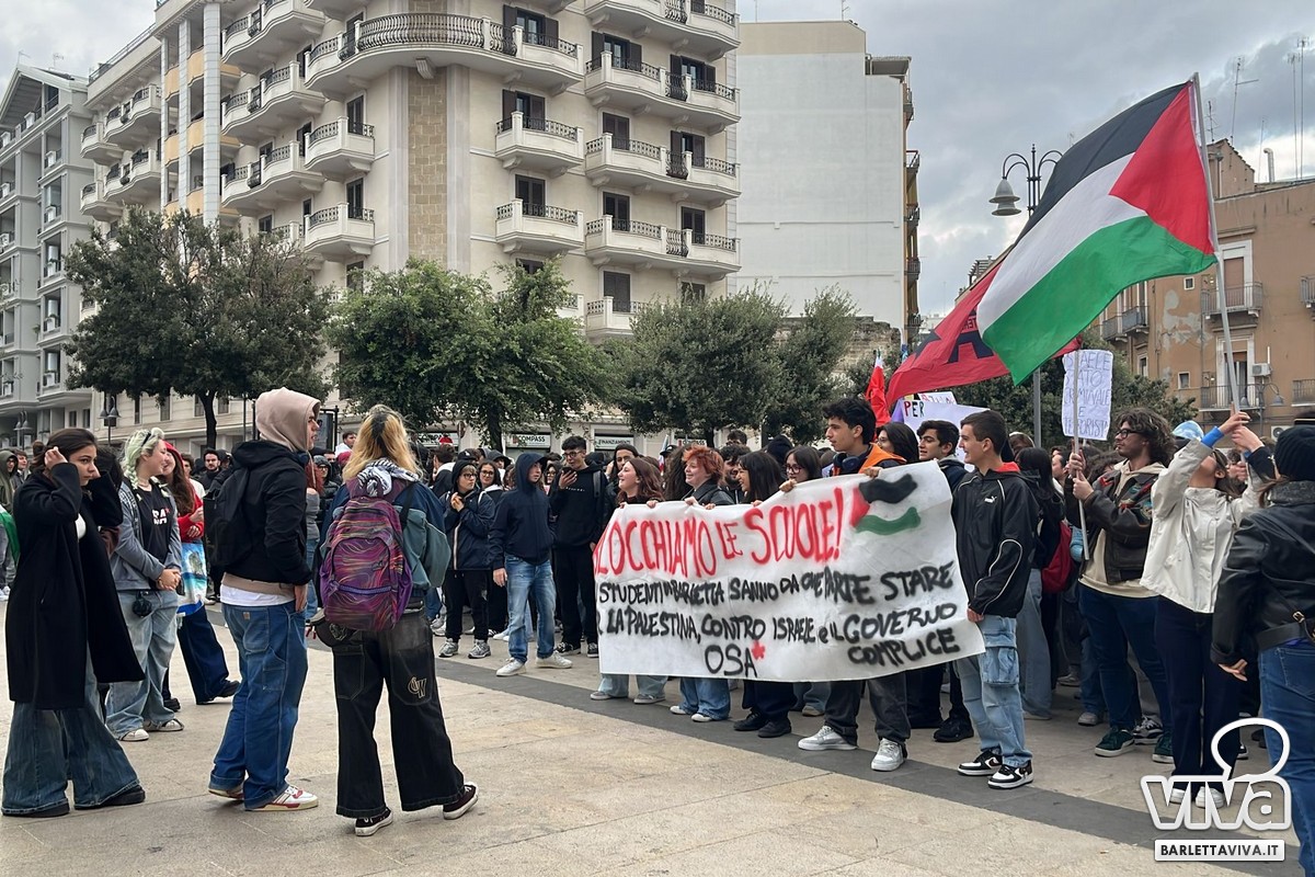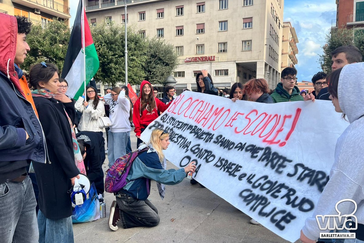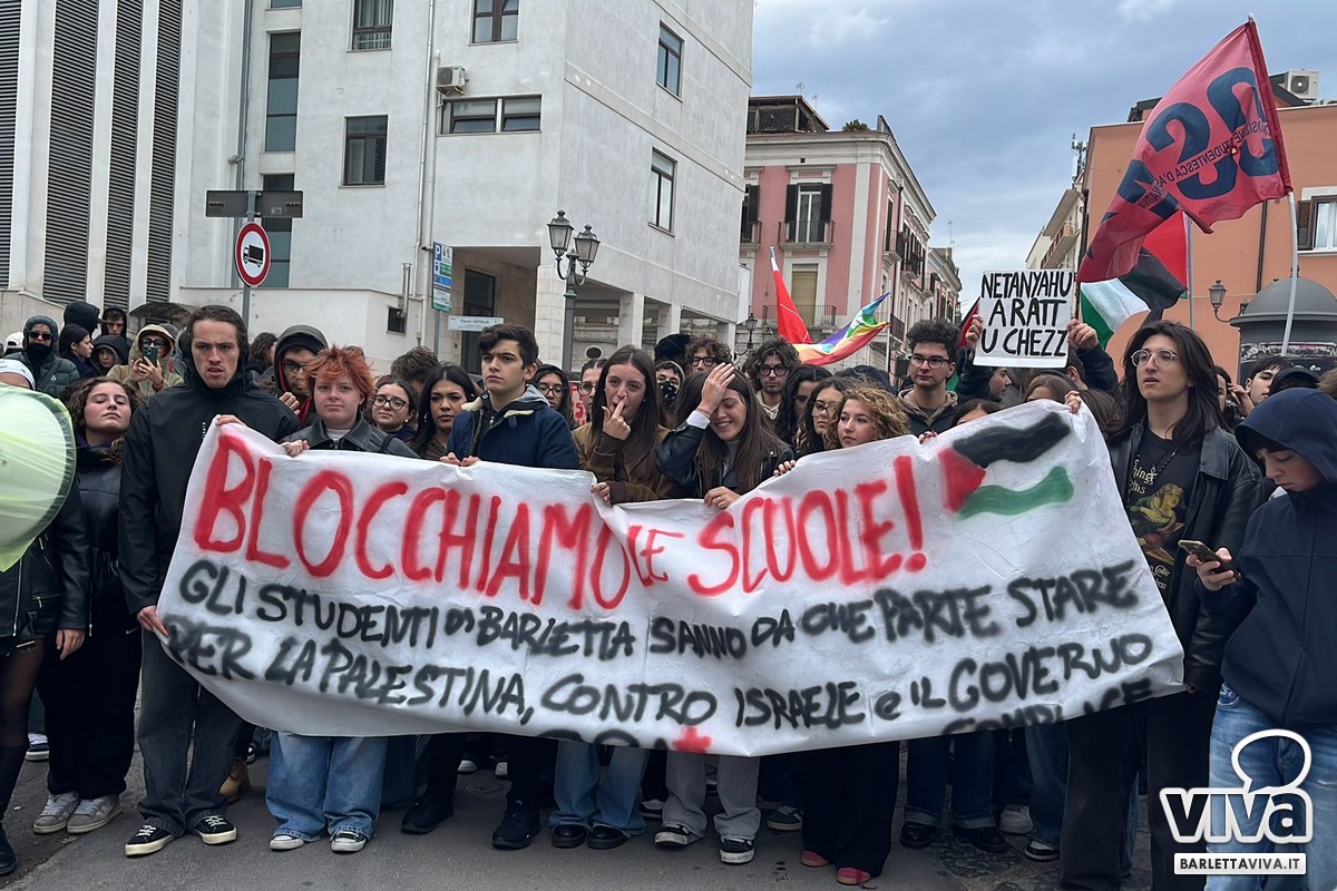 È stato soprattutto il mondo della scuola a raccogliere in massa l'appello della CGIL, che per la giornata di mobilitazione nazionale pro Palestina ha promosso un presidio nel centro cittadino di Barletta. A riempire la piazza cortei sindacali e centinaia di giovani, arrivati con cartelli, bandiere e striscioni di ogni tipo.