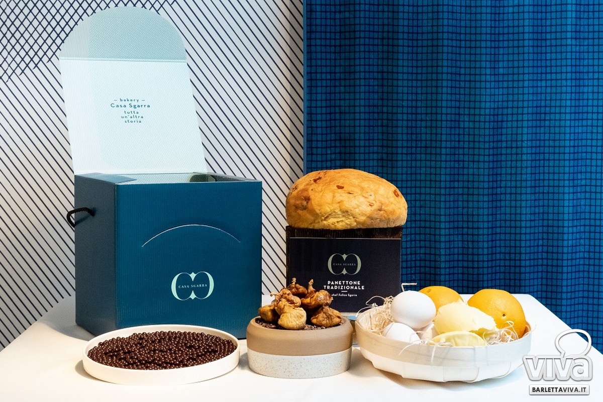 Non poteva mancare la "rinnovata" stella Michelin di Puglia Felice Sgarra. In occasione delle festività, il forno del superbo ristorante Casa Sgarra a Trani produce il formidabile panettone e l'indimenticabile pandoro, reinterpretati in maniera originale e arricchiti con i pregiati ingredienti del territorio.
