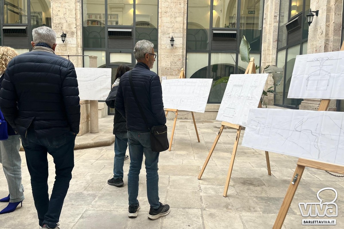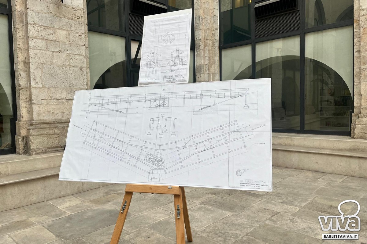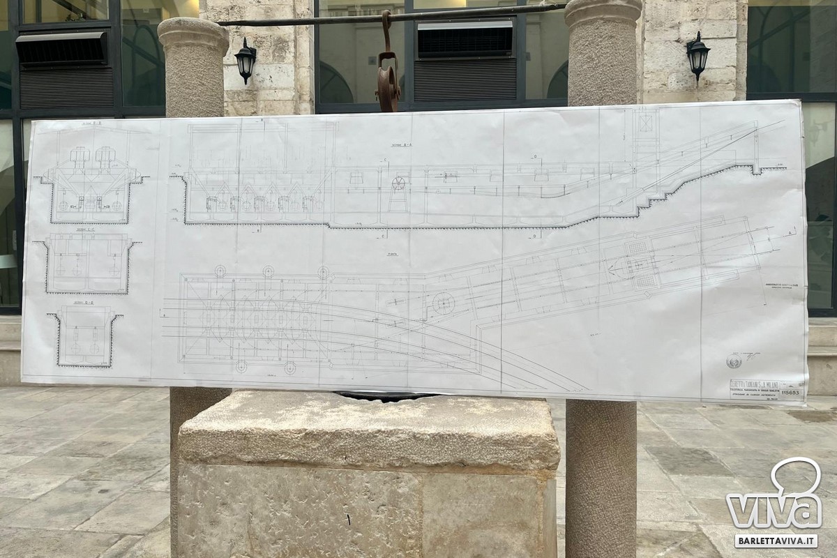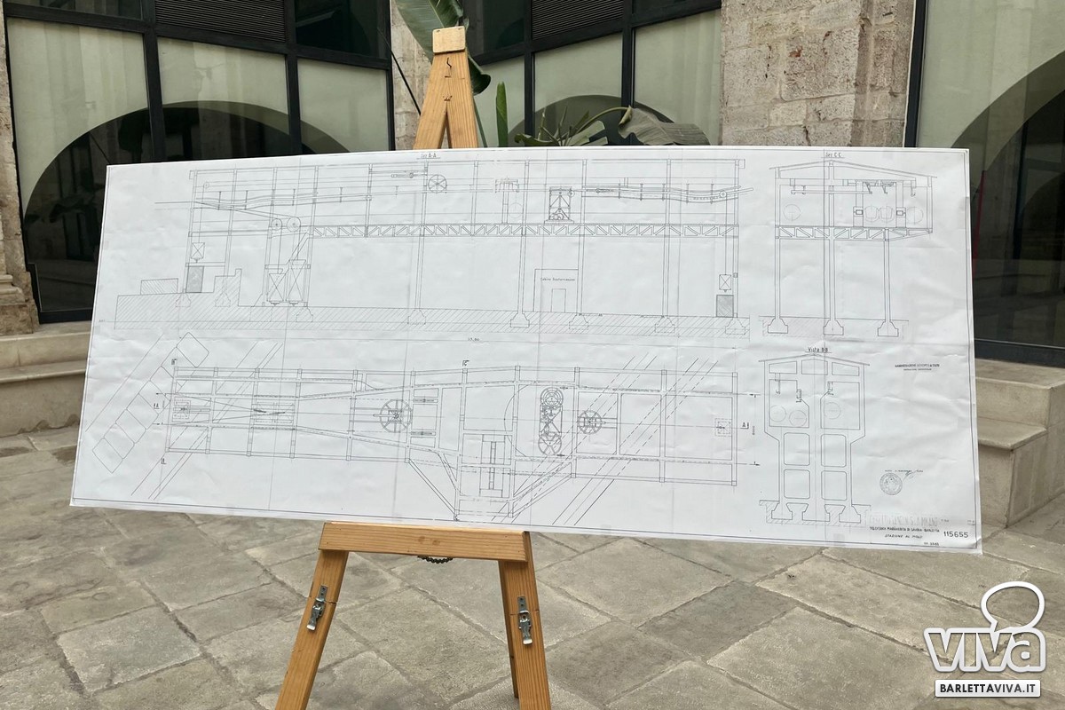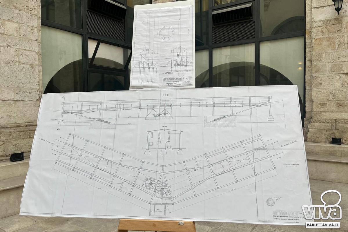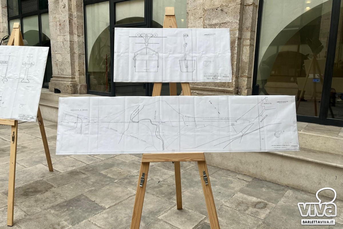 Michele Grimaldi, storico e archivista, dichiara: "Oggi presentiamo la manifestazione che verrà svolta domani mattina del Cammino del Sale che è una camminata storico culturale lungo il tragitto della antica teleferica. La costruzione avvenne 70 anni fa, precisamente nel 1955, e oggi abbiamo pensato di mostrare i documenti, riprodotti, non originali, della costruzione e progettazione di questa straordinaria opera che fu finanziata dalla Cassa del Mezzogiorno e che aveva, come saprete, lo scopo di trasportare a Barletta il sale prodotto a Margherita di Savoia. Ci rendiamo conto che non è mai stato dato risalto a un'opera sicuramente industriale, ma che rientra a pieno titolo nel filone del turismo culturale".