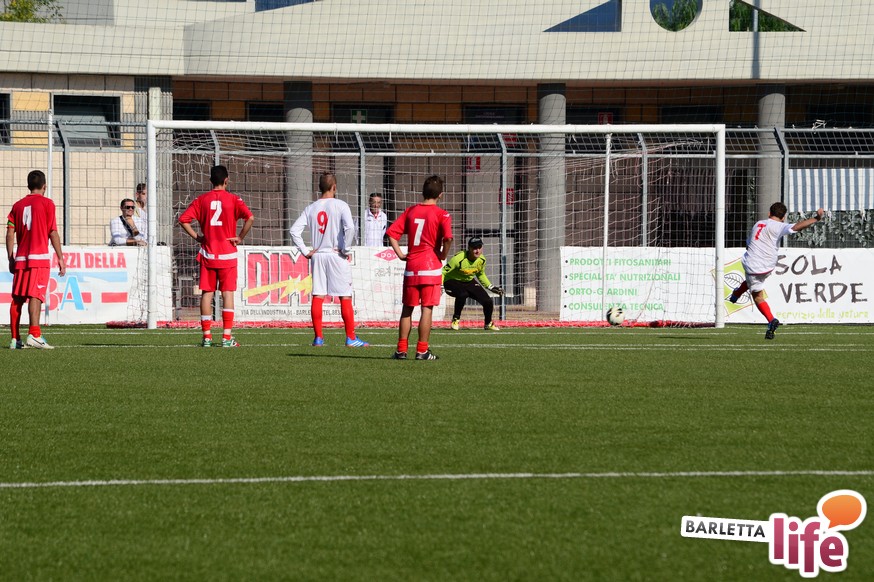 La cronaca- Pronti, via e passa il Trinitapoli: primo cross, il portiere Dibenedetto non trattiene la sfera, favorendo l'inserimento dell'attaccante trinitapolese Racaniello, che insaccava senza tanti complimenti. La reazione delle Medaglie d'Oro portava in dote un gol annullato e i reclami per un fallo di mani in area ospite. Il primo tempo si conclude con il Trinitapoli in vantaggio. Nella ripresa non arrivava la reazione dei padroni di casa, che al 13' restano in 10 per il "rosso" a capitan Cafagna. Sette minuti e gli ospiti raddoppiavano su contestato calcio di rigore, messo a segno da Grimaldi. La partita di fatto finiva lì, con il Trinitapoli che sfiorava a più riprese il tris nel finale.