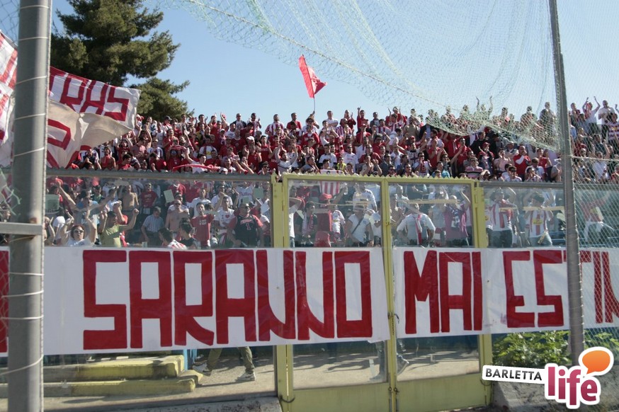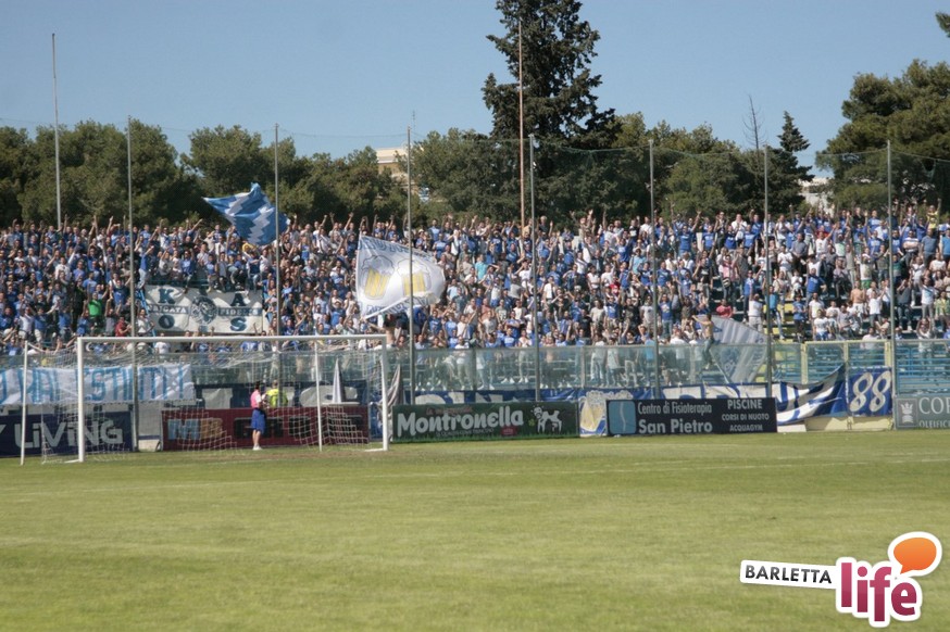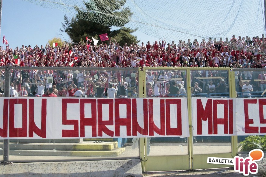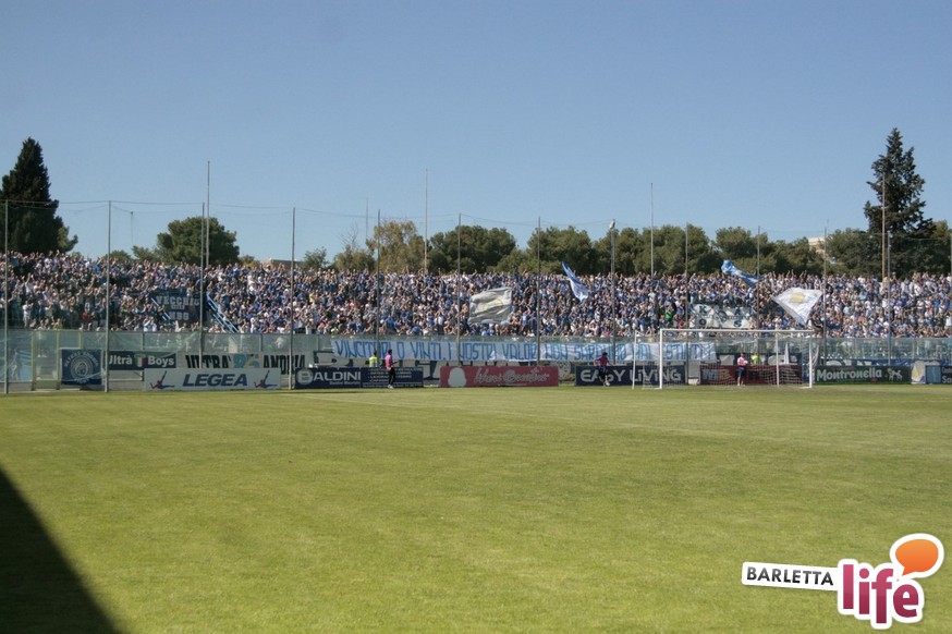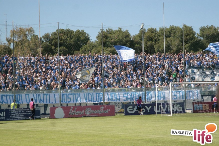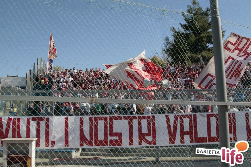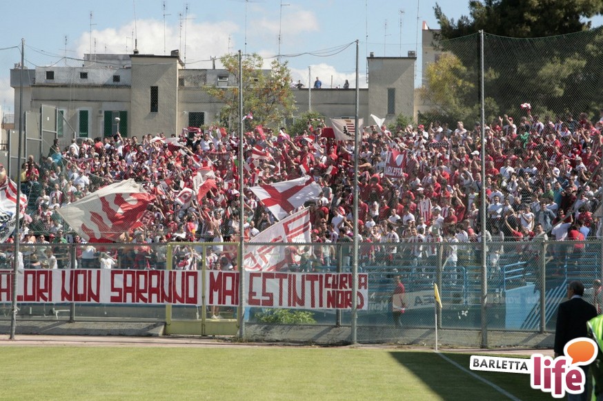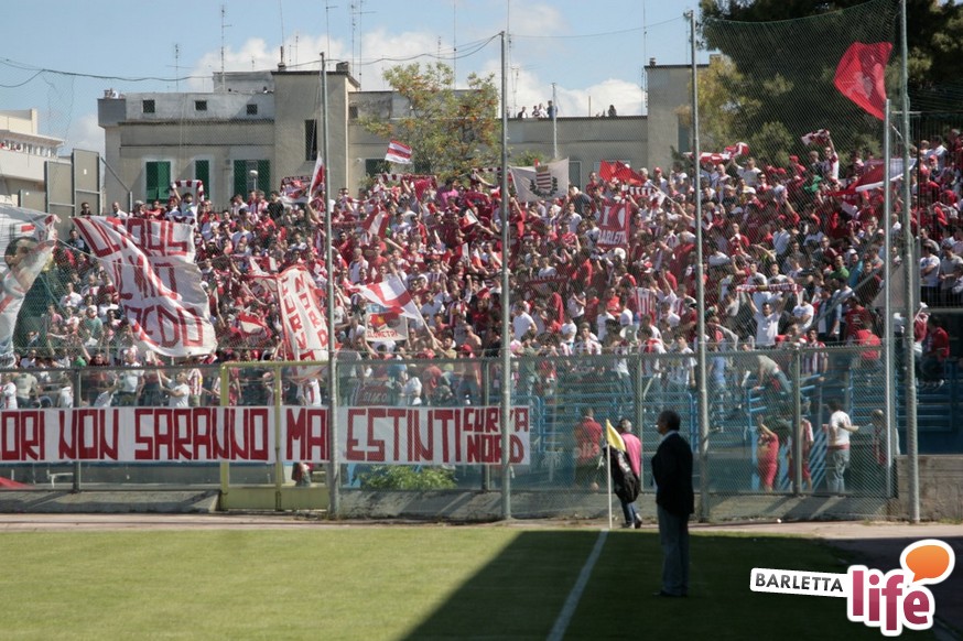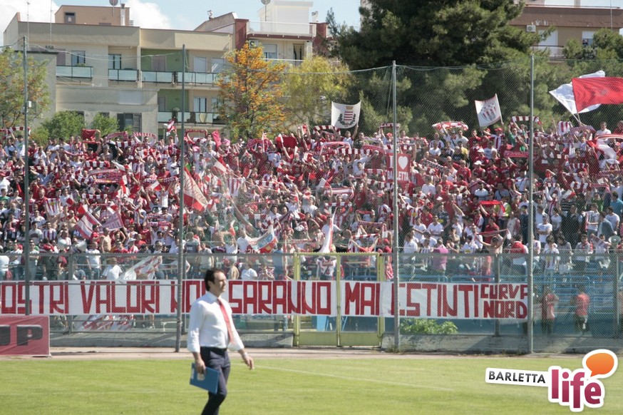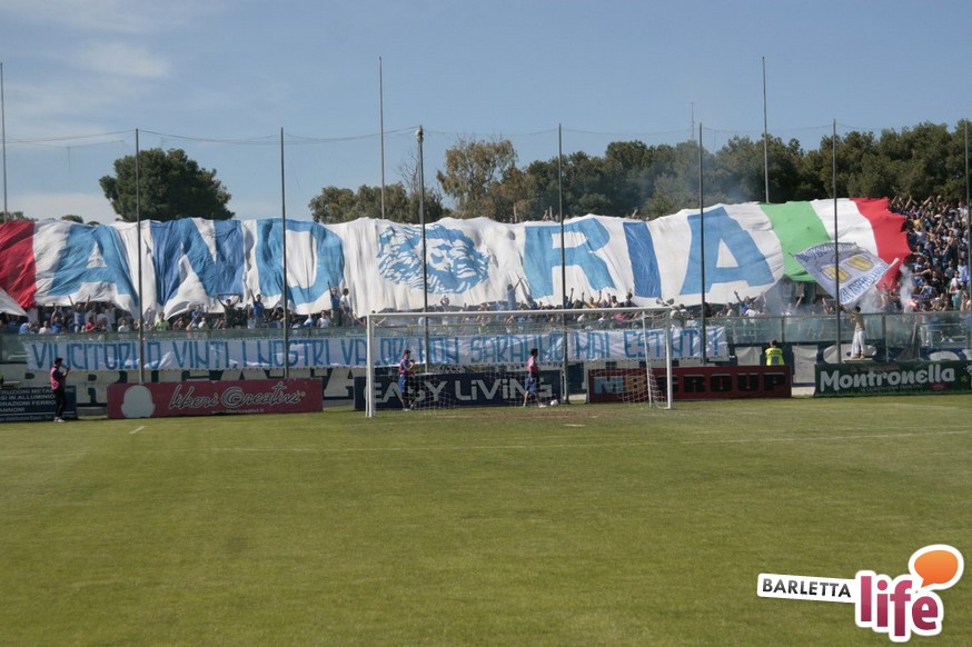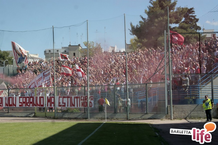 Andria piange, Barletta ride. Il giorno dopo lo 0-1 del "Degli Ulivi", che da un lato ha consegnato la salvezza e la permanenza nel girone B di Prima Divisione Lega Pro ai biancorossi e dall'altro ha visto i biancoazzurri sprofondare in futuro nero, tra la certezza dei drammi societari e le nubi circa la disputa del prossimo campionato di Seconda Divisione, oltre alle immagini nel campo, negli occhi dei tifosi restano i flashback degli spalti: dallo spettacolo offerto dalle due curve nel pre-partita, al mantenimento del consolidato gemellaggio, passando per l'interruzione di otto minuti, i volti noti presenti in tribuna al "Degli Ulivi" e i beceri insulti al presidente biancorosso Roberto Tatò, la carne al fuoco non è mancata.