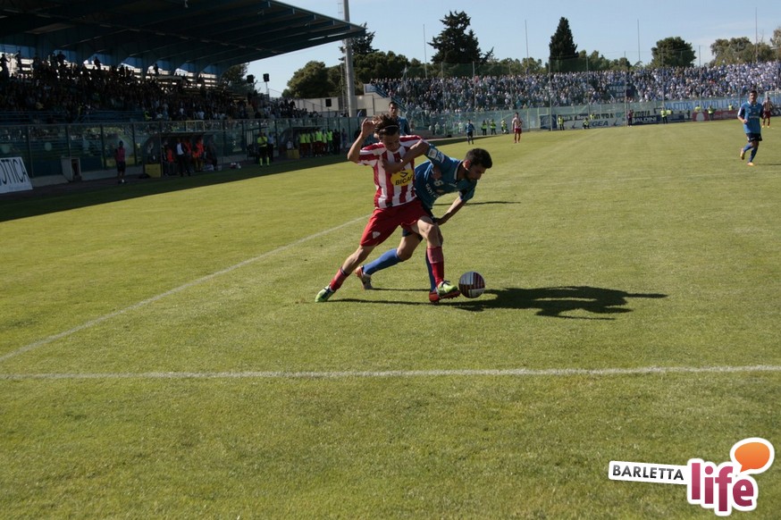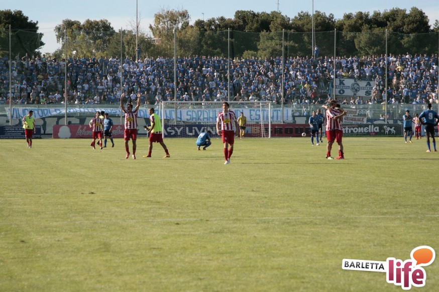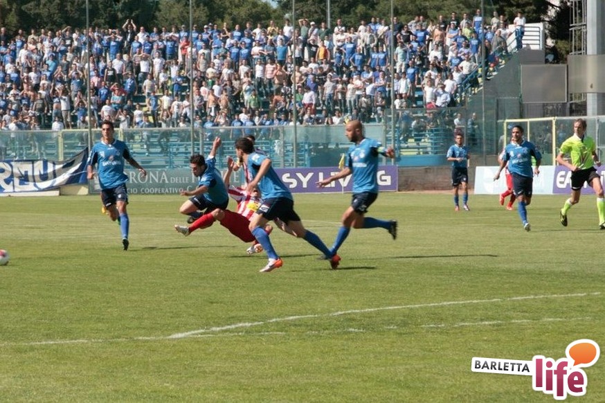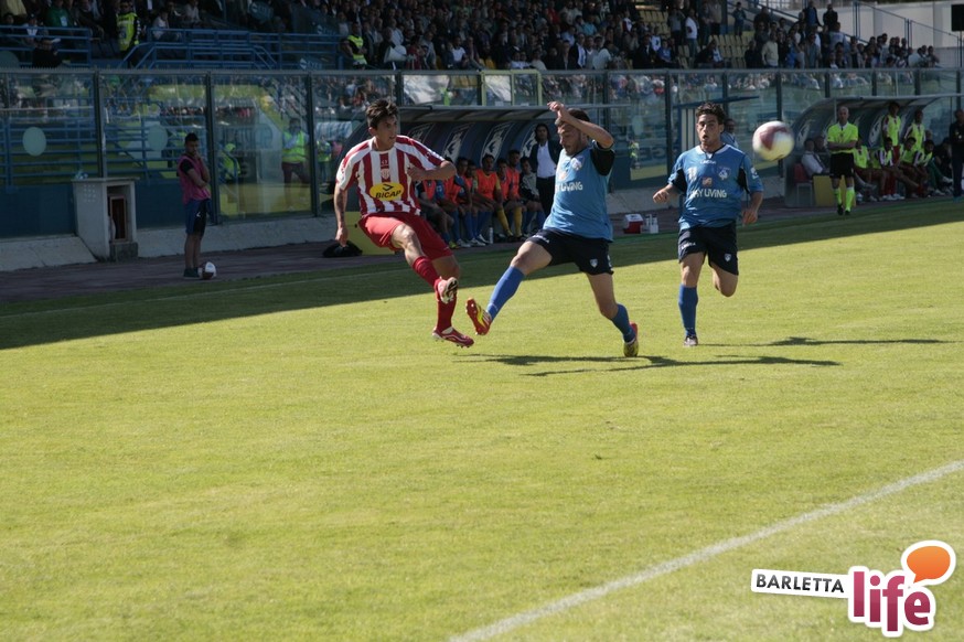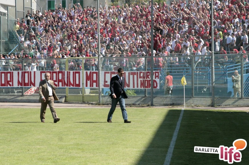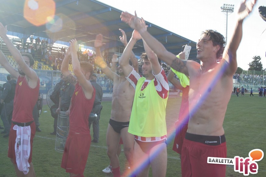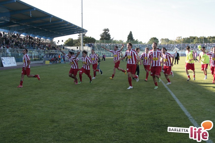 Luca Liverani, Fabrizio Di Bella, Vincenzo Camilleri, Fabio Romeo, Andrea Pippa, Jurgen Prutsch, Riccardo Allegretti, Jacopo Dezi, Salvatore Molina, Andrea La Mantia, Emanuele Cicerelli, Jacopo Dall'Oglio, Lorenzo Burzigotti, Mirko Carretta, Nevio Orlandi. Una carrellata infinita di nomi, ma che oggi a Barletta suona come la migliore musica. Un Barletta roccioso e mai deconcentrato sbanca il "Degli Ulivi" di Andria, spedendo i padroni di casa in Seconda Divisione e conquistando la permanenza in Prima Divisione. Autore del gol del definitivo 0-1 è l'ex Mirko Carretta, ancora una volta decisivo dopo il gol che qualche stagione fa permise all'Andria di salvarsi a discapito della Ternana. Le emozioni di marca biancorossa al "Degli Ulivi" non sono mancate. Un grande tifo ha fatto da splendida cornice alla meritata salvezza di Allegretti e compagni. Riviviamo le emozioni di Andria-Barletta attraverso gli scatti più belli raccolti a bordo campo: