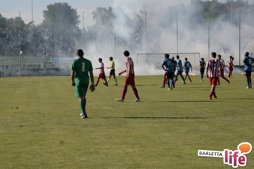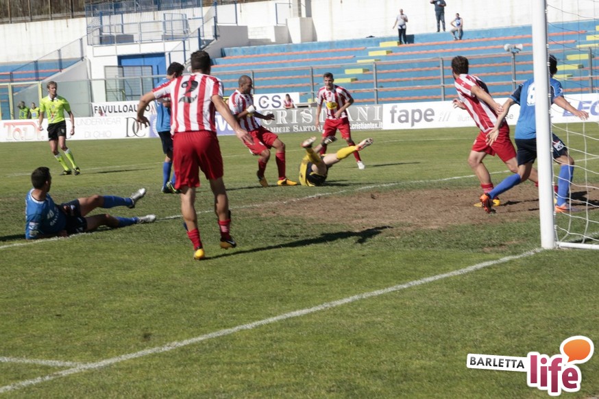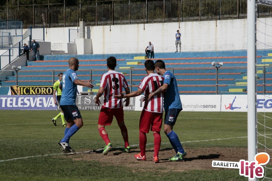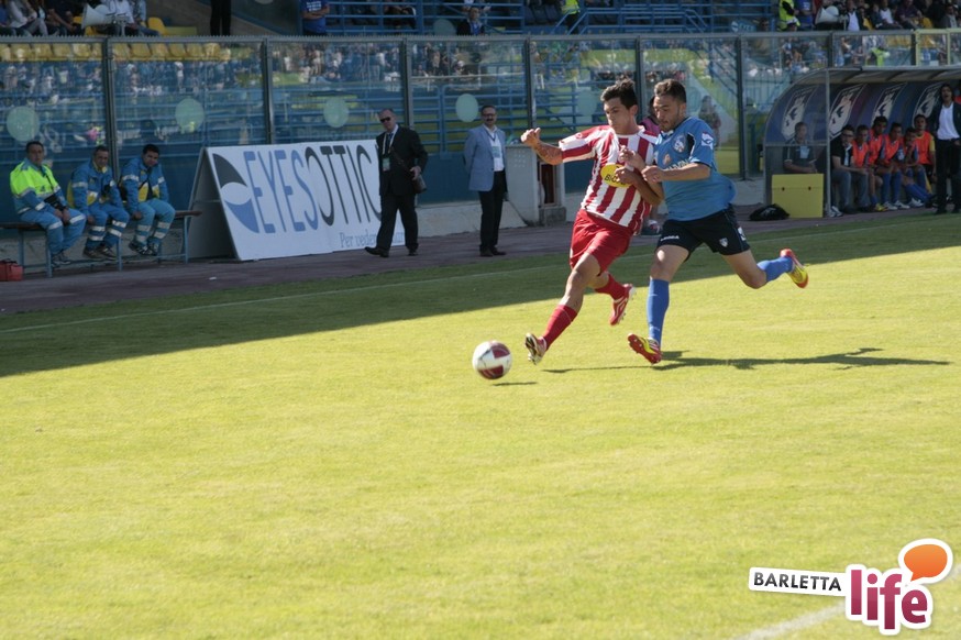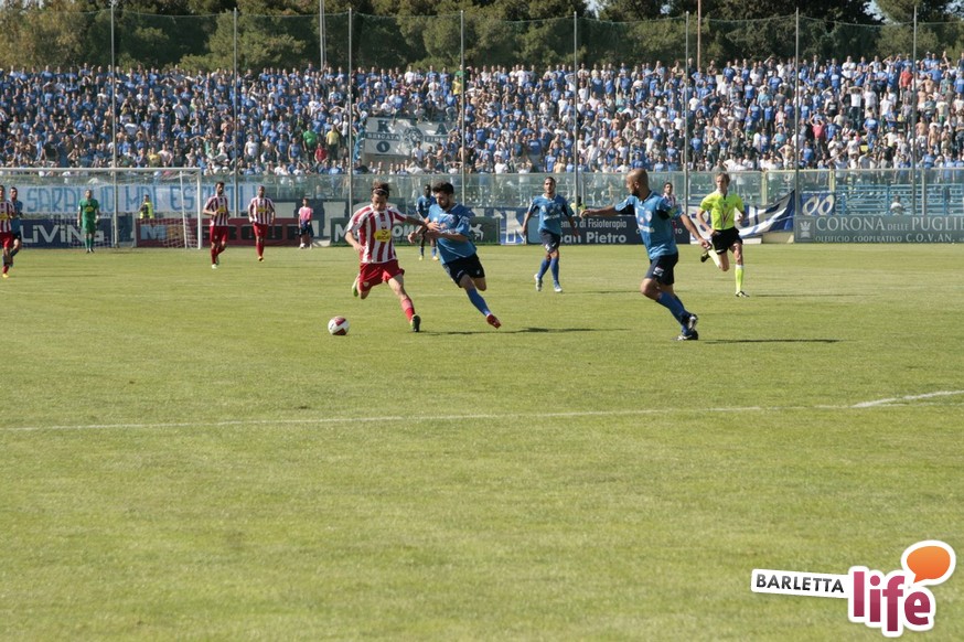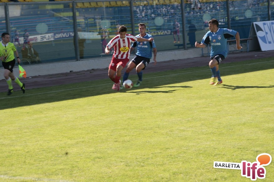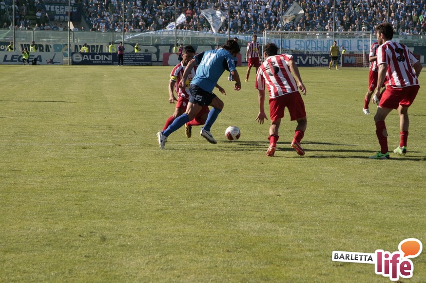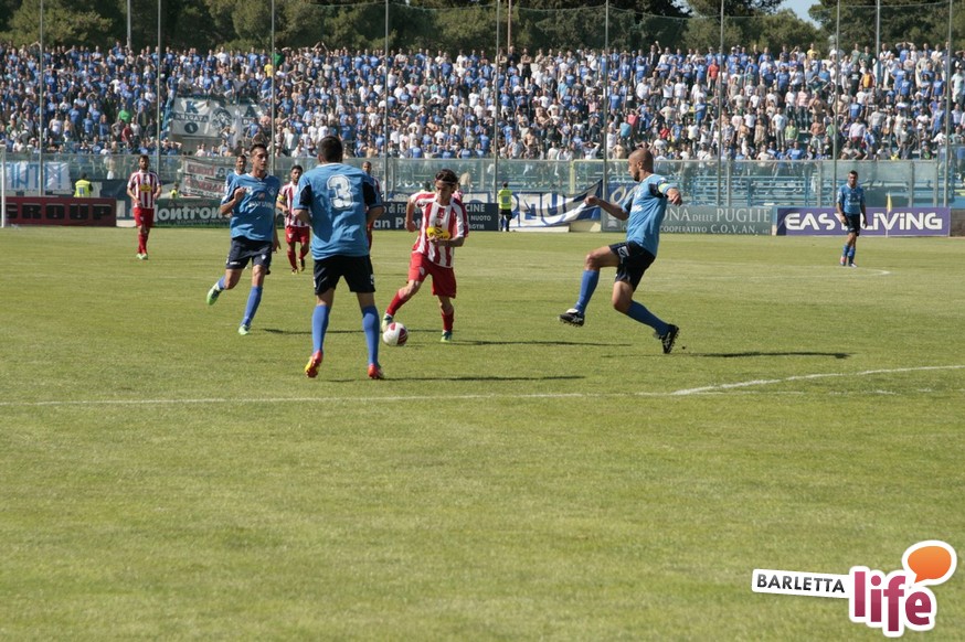 Luca Liverani, Fabrizio Di Bella, Vincenzo Camilleri, Fabio Romeo, Andrea Pippa, Jurgen Prutsch, Riccardo Allegretti, Jacopo Dezi, Salvatore Molina, Andrea La Mantia, Emanuele Cicerelli, Jacopo Dall'Oglio, Lorenzo Burzigotti, Mirko Carretta, Nevio Orlandi. Una carrellata infinita di nomi, ma che oggi a Barletta suona come la migliore musica. Un Barletta roccioso e mai deconcentrato sbanca il "Degli Ulivi" di Andria, spedendo i padroni di casa in Seconda Divisione e conquistando la permanenza in Prima Divisione. Autore del gol del definitivo 0-1 è l'ex Mirko Carretta, ancora una volta decisivo dopo il gol che qualche stagione fa permise all'Andria di salvarsi a discapito della Ternana. Le emozioni di marca biancorossa al "Degli Ulivi" non sono mancate. Un grande tifo ha fatto da splendida cornice alla meritata salvezza di Allegretti e compagni. Riviviamo le emozioni di Andria-Barletta attraverso gli scatti più belli raccolti a bordo campo: