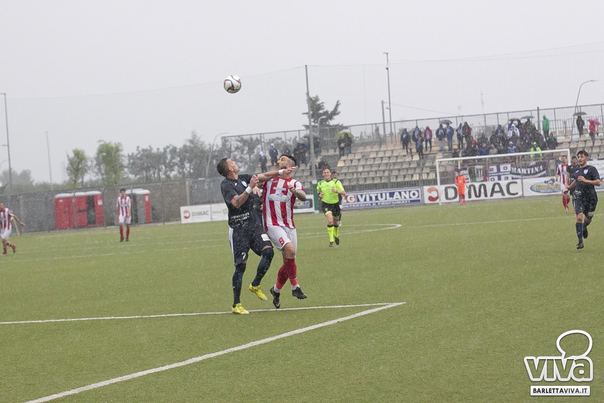 Non riesce ancora a decollare invece il Barletta che, una volta riuscito a ribaltare lo svantaggio del primo tempo grazie alla doppietta di Pignataro ha via via arretrato il baricentro d'azione fino a subire il pareggio ad opera dell'altro grande protagonista della gara: quel Nicolas Di Rito con trascorsi non certo indimenticabili in biancorosso.