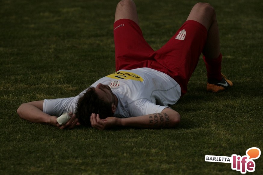 Maggio è il mese del coraggio. I biancorossi infilano un poker al Viareggio sul prato del "Puttilli" e di fatto si assicurano i playoff contro l'Andria, "confidando" di evitare l'incrocio con la penalizzione che pende sul capo biancoazzurro. La giustizia però non porta penalità ai "cugini" e lo 0-0 di Benevento archivia la stagione. L'icona del mese è Riccardo Allegretti: il suo gol trascina agli inferi gli avversari e apre le porte del paradiso sportivo al Barletta nel 2-0 del "Puttilli" contro l'Andria. La Mantia completa l'opera, il cammino-salvezza appare spianato.