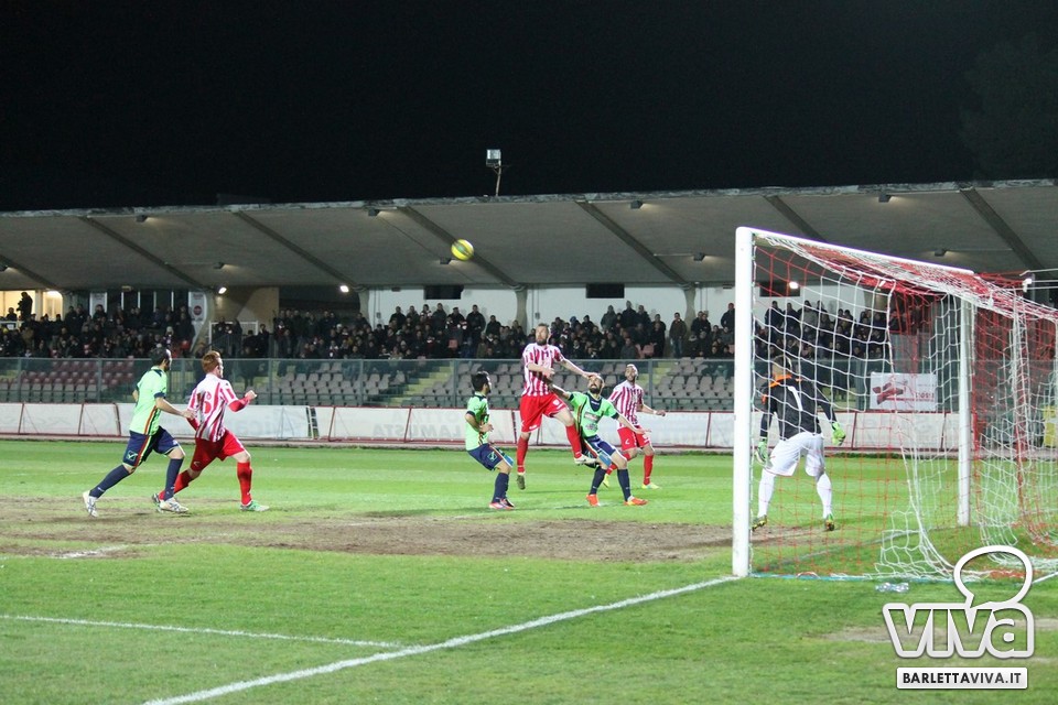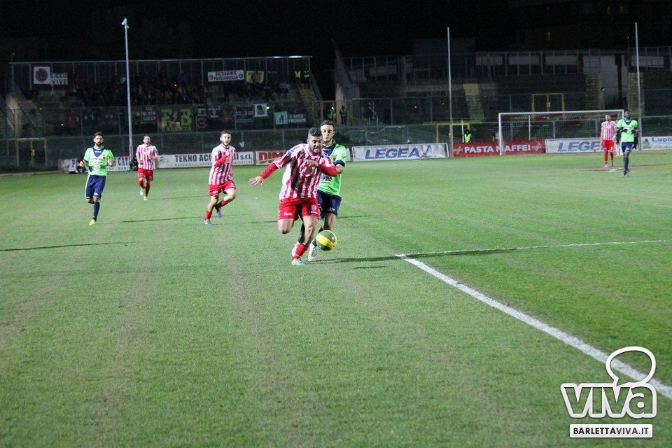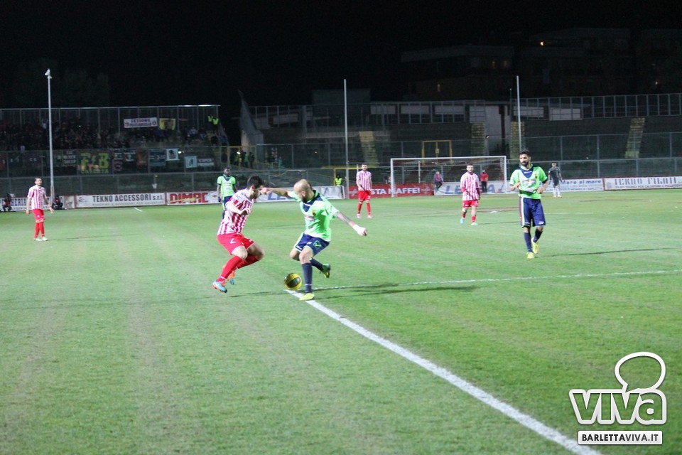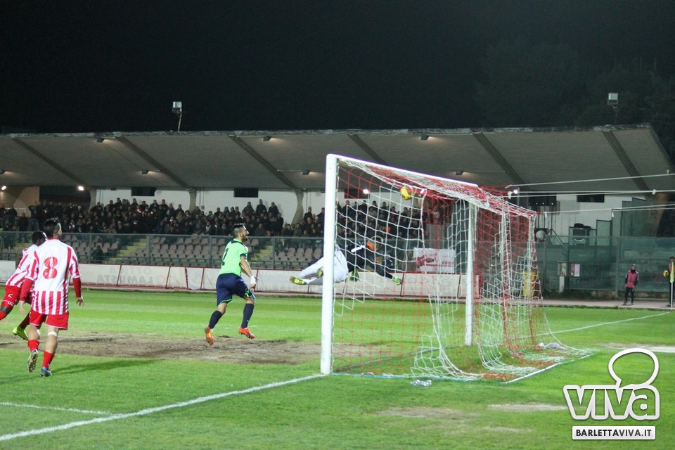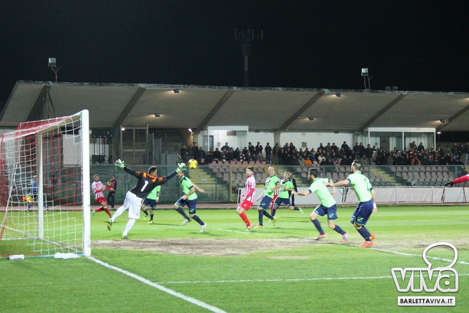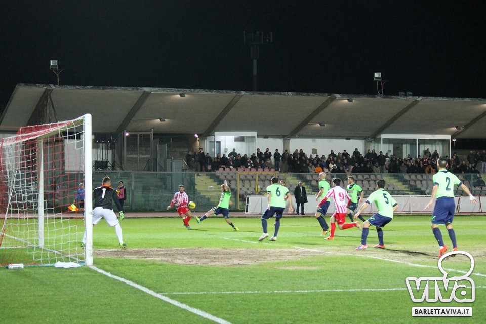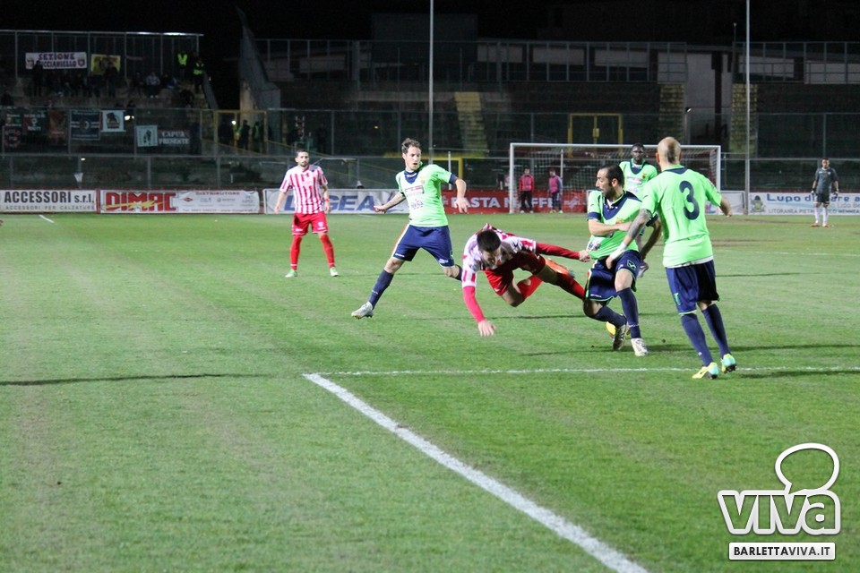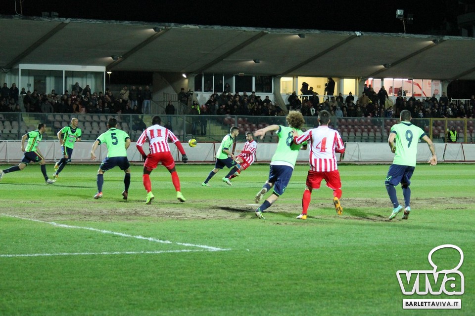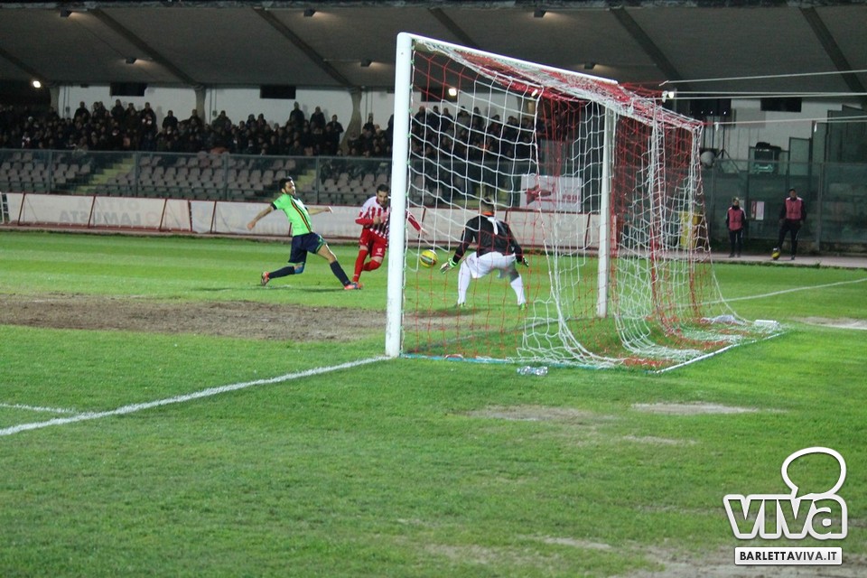 Ci sono partite in cui al tuo avversario bastano due tiri per totalizzare bottino pieno, mentre i legni della porta e la misura nelle conclusioni non sono amiche della sorte. Barletta-Casertana 0-2, partita giocata ieri sera sul terreno del "Cosimo Puttilli", si può riassumere così: da un lato i biancorossi, apparsi sopiti in avvio e cresciuti di ritmo con il trascorrere dei minuti, fino a che il palo ha detto "no" alla splendida punizione di Alberto Quadri e l'estremo avversario Fumagalli non ha evitato il peggio per i suoi. Dall'altra parte la cinica compagine campana, che in avvio di gara ha sbloccato il match con Karamolo Cissè dopo un'azione in percussione orchestrata insieme a Mancino e nella ripresa, superato il pericolo, ha trovato con il mancino di Fabio Tito e la collaborazione del portiere biancorosso De Martino il raddoppio. Il Barletta, pur privo di due titolari come Liverani e Meola, ha giocato comunque un buon match, ma in cascina non arrivano punti a favore. Mercoledì si va a Matera, per un'altra disfida sportiva. Intanto riviviamo Barletta-Casertana 0-2 attraverso la photogallery firmata dagli obiettivi di Giuseppe Savino jr. e gli highlights di Amica 9 Tv (clicca qui):