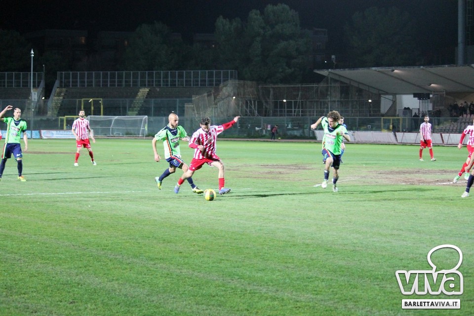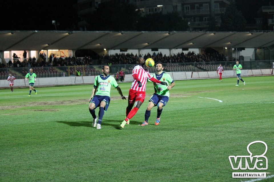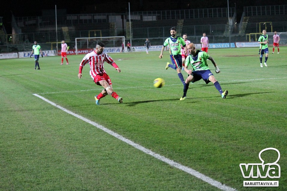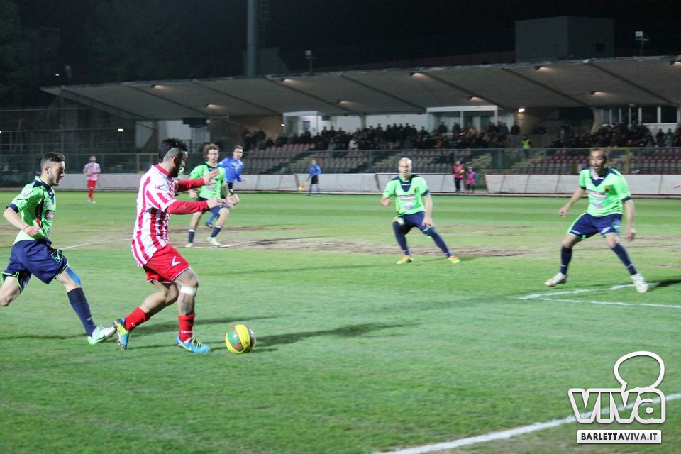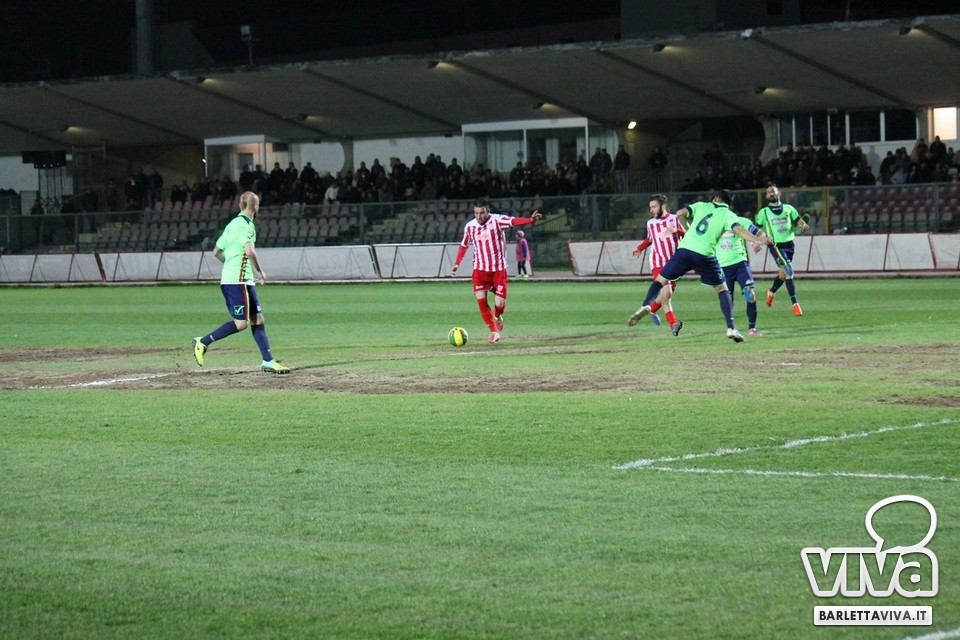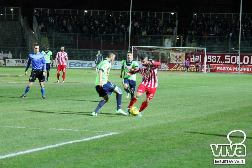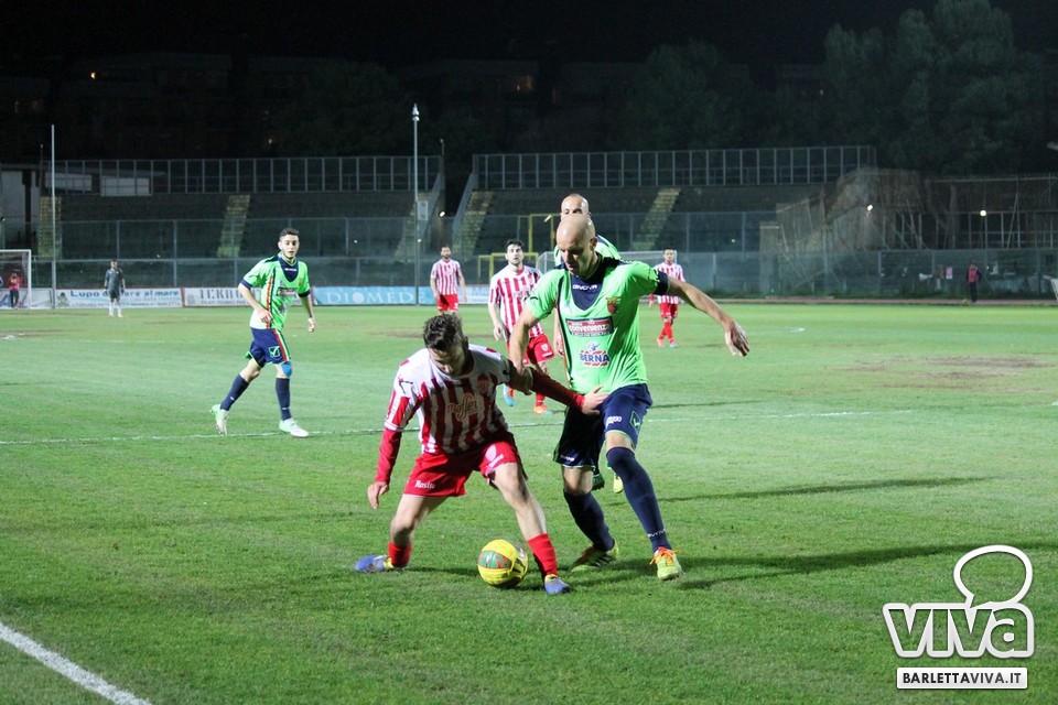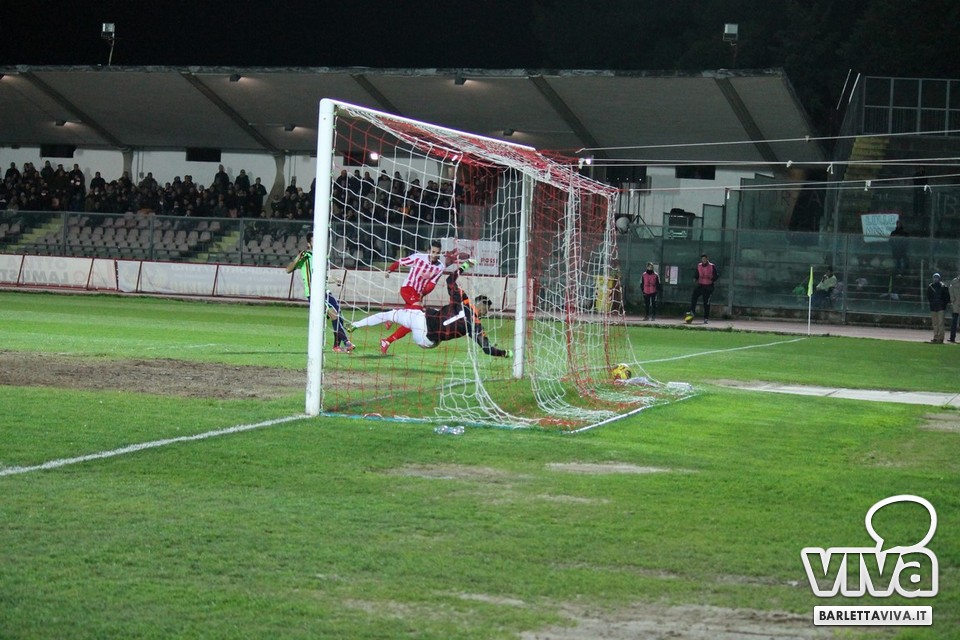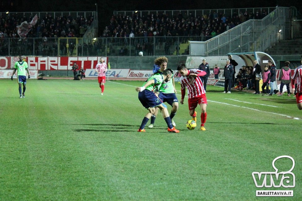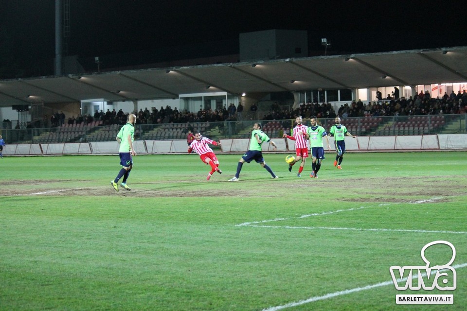 Ci sono partite in cui al tuo avversario bastano due tiri per totalizzare bottino pieno, mentre i legni della porta e la misura nelle conclusioni non sono amiche della sorte. Barletta-Casertana 0-2, partita giocata ieri sera sul terreno del "Cosimo Puttilli", si può riassumere così: da un lato i biancorossi, apparsi sopiti in avvio e cresciuti di ritmo con il trascorrere dei minuti, fino a che il palo ha detto "no" alla splendida punizione di Alberto Quadri e l'estremo avversario Fumagalli non ha evitato il peggio per i suoi. Dall'altra parte la cinica compagine campana, che in avvio di gara ha sbloccato il match con Karamolo Cissè dopo un'azione in percussione orchestrata insieme a Mancino e nella ripresa, superato il pericolo, ha trovato con il mancino di Fabio Tito e la collaborazione del portiere biancorosso De Martino il raddoppio. Il Barletta, pur privo di due titolari come Liverani e Meola, ha giocato comunque un buon match, ma in cascina non arrivano punti a favore. Mercoledì si va a Matera, per un'altra disfida sportiva. Intanto riviviamo Barletta-Casertana 0-2 attraverso la photogallery firmata dagli obiettivi di Giuseppe Savino jr. e gli highlights di Amica 9 Tv (clicca qui):