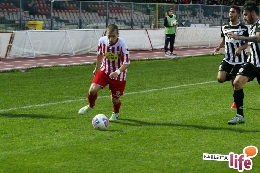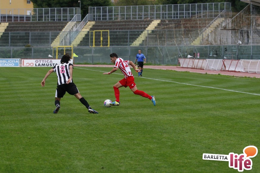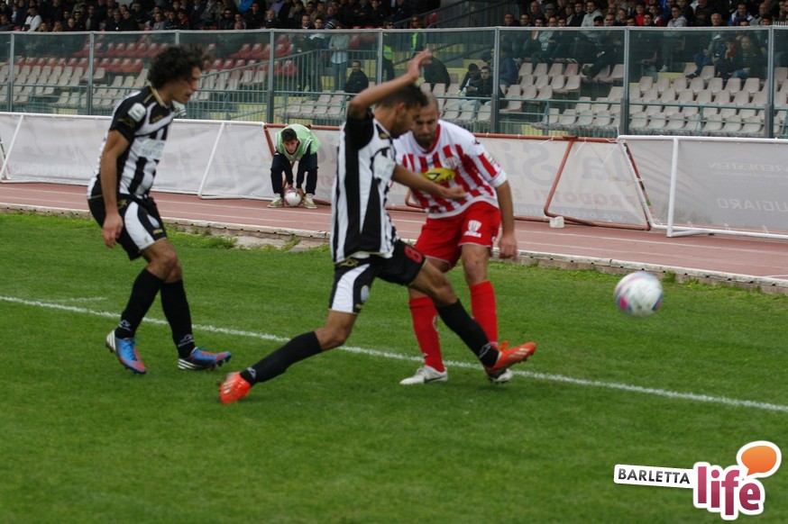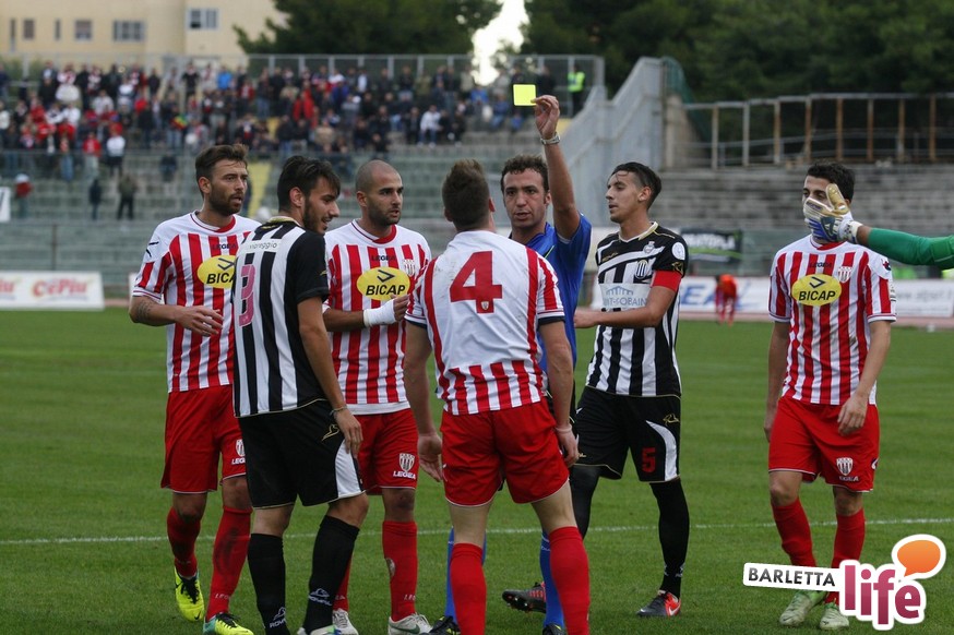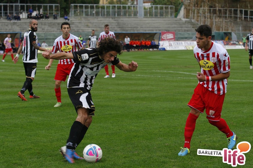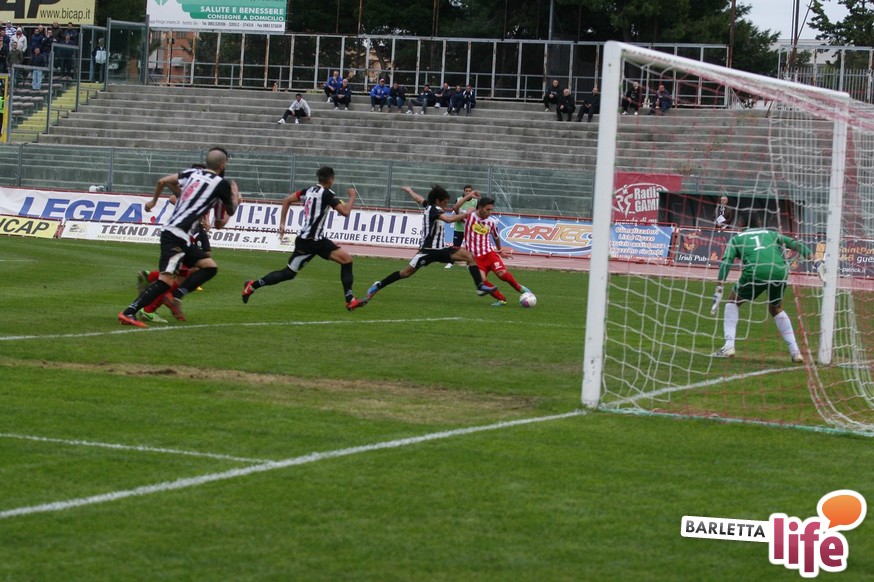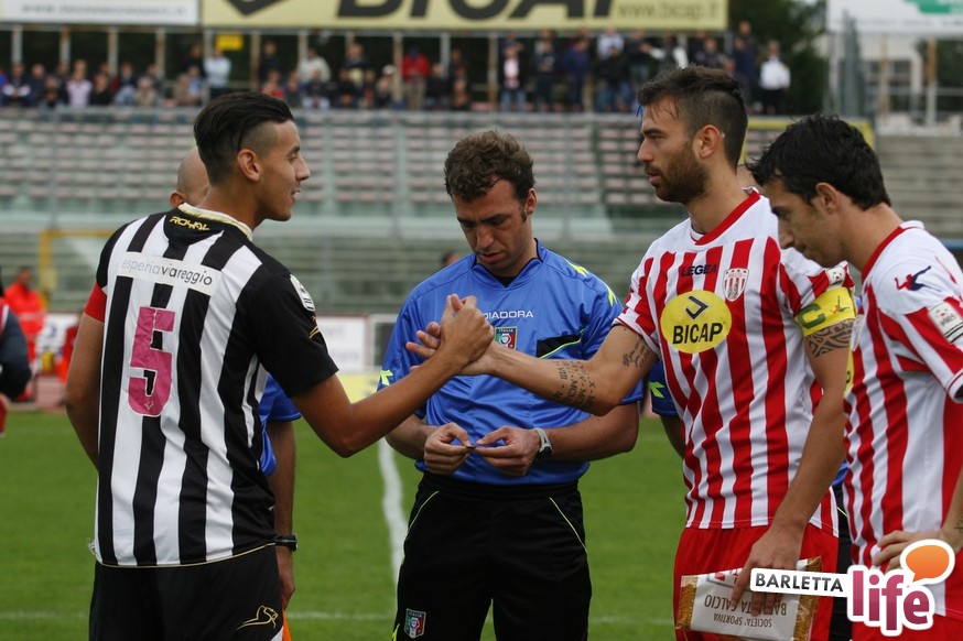 Dopo aver superato la prova del nove, battendo a domicilio un Gubbio in doppia superiorità numerica, il Barletta ha evidentemente fallito ieri pomeriggio quella dell'undici, cadendo in casa ad armi pari contro il Viareggio, sin qui mai vittorioso in campionato. Gli uomini di Cristiano Lucarelli sono passati al "Puttlli" con irrisoria facilità e mettendo a segno un gol per tempo, griffati Vannucchi e Rosafio, senza mettere in mostra un gioco trascendentale. Netto passo indietro per i biancorossi, privi di manovra e personalità e ancora attesi alla prima gioia davanti al proprio pubblico. Lo 0-2 ha lasciato in dote i copiosi fischi rivolti alla squadra e al direttore generale Gabriele Martino all'uscita dal campo. Barletta terzultimo a quota 7 e ricco di dubbi e incognite sul futuro. Riviviamo i due schiaffi rimediati dalle zebre toscane attraverso gli scatti di Enrico Gorgoglione: