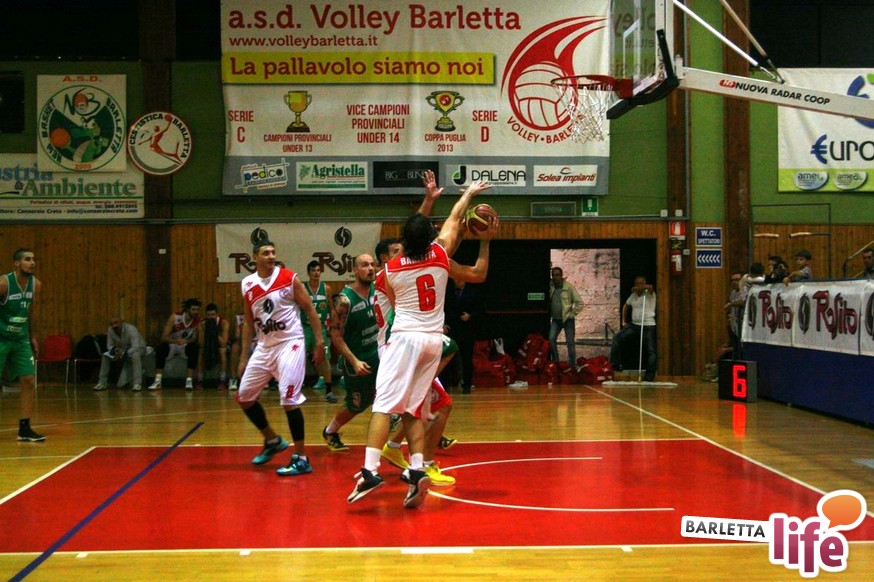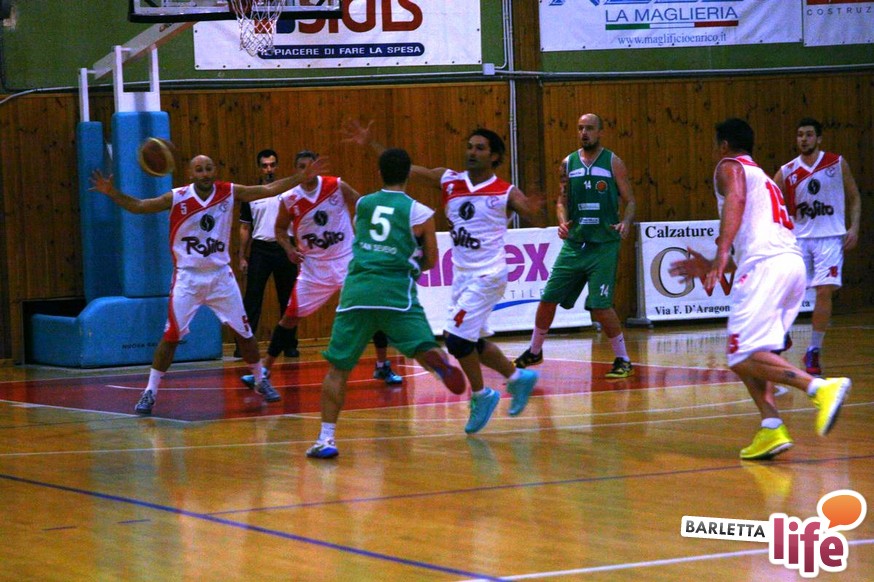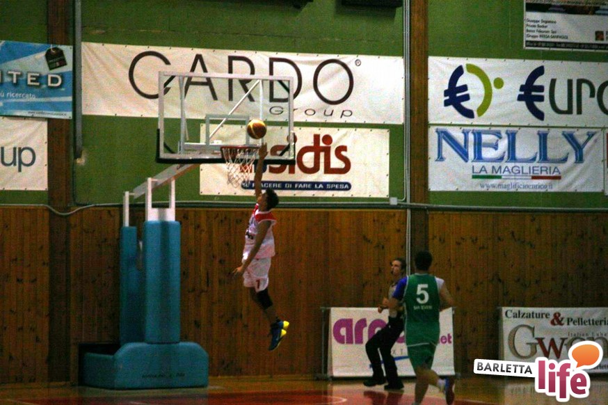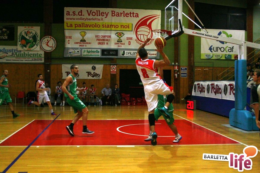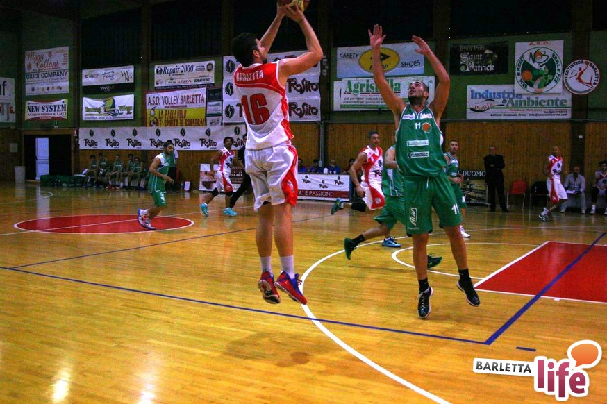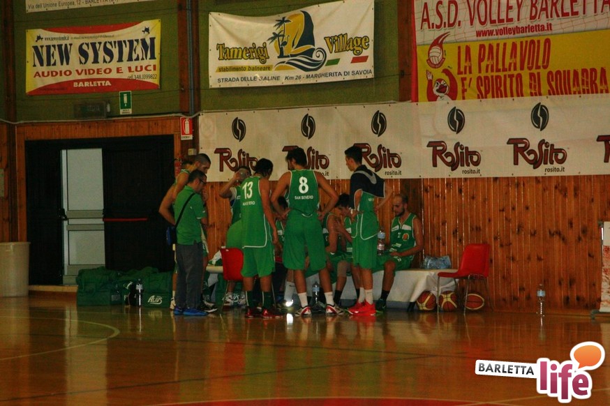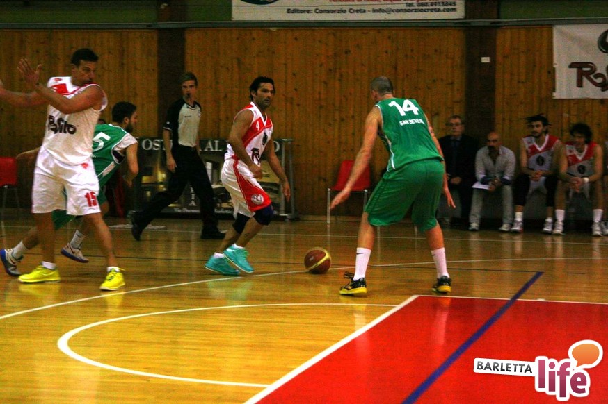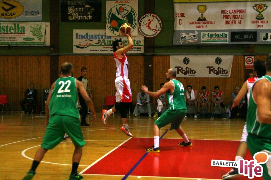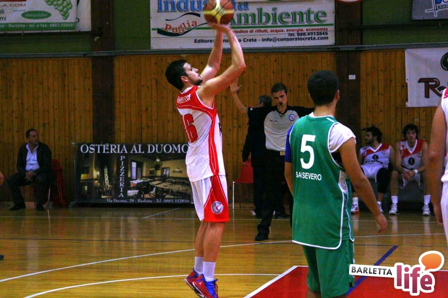Le prime fasi del match sono di marca bianco verde, con le fochine che partono meglio mettendo in difficoltà la difesa biancorossa che risulta troppo molle. L'attacco di Onetto e compagni è farraginoso, e il primo quarto si chiude sul punteggio di 15-18. La ripresa si apre sulla stessa falsariga, con i sanseverini che si affidano ad un incontenibile Bjelic, devastante sia sotto canestro, dove stravince il confronto con il parco-lunghi del Barletta, sia dall'arco. I biancorossi rispondono con Onetto e con una serie di punti utili di Vorzillo. All'intervallo lungo, San Severo è avanti di due sul 36-38. Il terzo quarto restituisce alla partita un San Severo ancor più arrembante, che vola addirittura fino al +11 complice qualche disattenzione difensiva di marca biancorossa. La rimonta degli uomini di Degni è affidata ad un Corvino in stato di grazia, che centra una serie di giocate da "monster class" che permette alla Cestistica di mantenere la scia degli avversari. Bjelic e compagni, però, si sciolgono come il burro, sprecando progressivamente tutto il vantaggio. I palloni cominciano a scottare tra le mani, e a risentirne è il giovane roster bianco verde, che spreca nel momento decisivo 4 liberi nel giro di 30 secondi. A fine frazione, San Severo è ancora avanti di un punto, ma l'inerzia della partita sembra cambiata. L'ultimo quarto è un vero e proprio monologo biancorosso. Corvino sale in cattedra, capitalizzando al meglio qualsiasi palla capiti tra le sue mani. Il fischio finale sancisce l'apoteosi biancorossa: Onetto e compagni possono finalmente sorridere per il 91-80 finale.