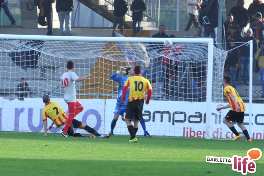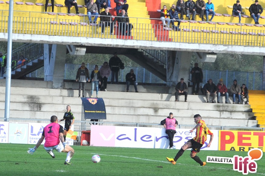 Ci si attendeva una reazione, un'inversione di rotta, caldeggiata da più parti, rispetto a un torneo sin qui all'insegna della bufera, dentro e fuori dal campo: sono arrivate solo conferme, di limiti strutturali e caratteriali che la squadra continua ad evidenziare, con dosi differenti a seconda dell'impegno e dell'avversario che le si pone di fronte. Benevento-Barletta 4-2 è stato questo: oggi pomeriggio al "Vigorito" i biancorossi hanno fatto bene solo nei primi 10 minuti, salvo poi soccombere sotto i colpi dei sanniti, costruiti a suon di euro e "caps" nelle categorie superiori. Una differenza fatta anche di motivazioni, evidenziata dai centri di Campagnacci, Bonaiuto, Mengoni ed Evacuo, che dopo un'ora di gioco hanno praticamente chiuso i conti e messo in cassaforte la partita. Inutili i centri finali di Cicerelli e Ilari, buoni solo a suggellare una reazione comunque insufficiente e buona più per gli almanacchi. Settima sconfitta stagionale, quella subìta nel Sannio, e siamo ancora a fine novembre. Riviviamo il ko biancorosso attraverso gli scatti fotografici realizzati e gentilmente concessi da Giuseppe Feliciello de Il Sannio Quotidiano: