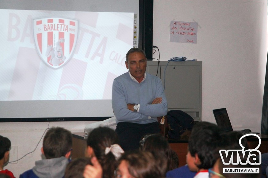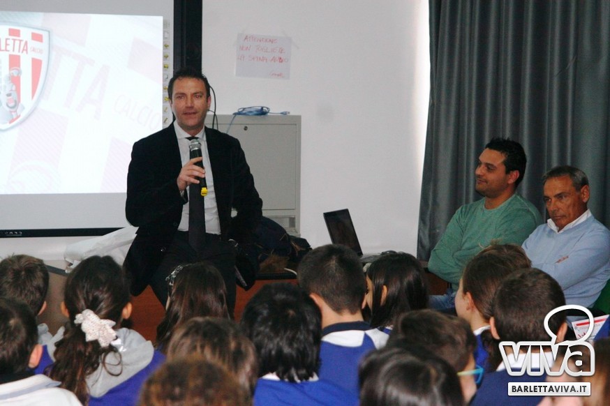 Con l'iniziativa di venerdì mattina si chiude la prima tornata di incontri presso le scuole, con un bilancio molto soddisfacente. Il club ha incontrato all'incirca 170 ragazzi, esponendo il progetto tecnico e illustrando ai ragazzi tutte le particolarità di una squadra di calcio. L'iniziativa "Calciando si impara" si articolerà in una serie di incontri tecnico-formativi che si realizzeranno tra le scuole barlettane e lo stadio "Puttilli" in un calendario composto da convegni e "Day School" (già andato in porto contro Nocerina, Pontedera, Viareggio, Ascoli, Frosinone e Lecce) con ingresso gratuito a due partite del Barletta Calcio, contro Catanzaro (13 aprile) e Grosseto (4 maggio), per studenti delle scuole medie. Non mancherà un concorso, visto che gli studenti potranno immaginare, disegnare e riprodurre la nuova maglia del Barletta o la nuova mascotte del sodalizio di via Vittorio Veneto. Al termine del concorso i vincitori saranno premiati con gadget e giornate "speciali", ma tanti disegni saranno esposti presso lo stadio "Puttilli".