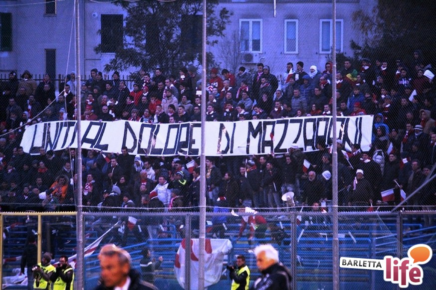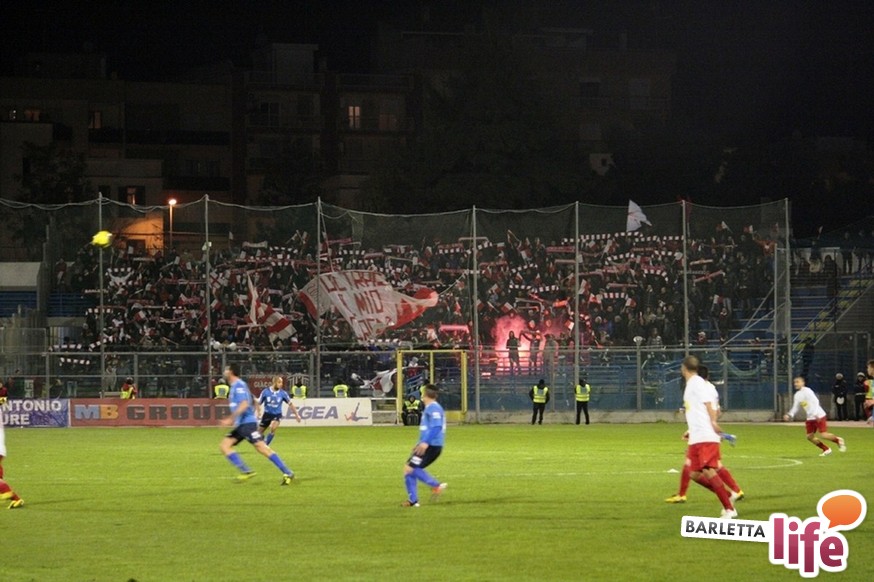 Termina in pareggio il derby della sesta provincia pugliese. Tra Andria e Barletta al "Degli Ulivi" prevale la voglia di non perdere. I "cugini" si dividono la posta in palio, in un derby in cui le occasioni da rete latitano, ma è il Barletta ad esprimersi meglio, soprattutto nella prima frazione. Nella ripresa, poi, "solo" la traversa di Taormina in ripartenza sembra poter scuotere gli animi dei tanti paganti presso l'impianto sportivo andriese, ma i fischi che salutano l'uscita dal campo dei 22 a fine partita testimonia la scarsa spettacolarità di un derby dall'elevatissima posta in palio. Lo 0-0 di Andria, il secondo pareggio a reti bianche per il Barletta di mister Orlandi, può considerarsi il secondo "bicchiere mezzo pieno" consecutivo, ma tardano ad arrivare gioie da 3 punti per coloro nelle cui vene scorre autentico sangue biancorosso. Riviviamo in momenti più interessanti di Andria-Barletta attraverso gli scatti di Vincenzo Fasanella. Focus concentrato, oltre che sui protagonisti del rettangolo di gioco, anche sugli spalti, visto il vero e proprio spettacolo offerto da entrambe le tifoserie.