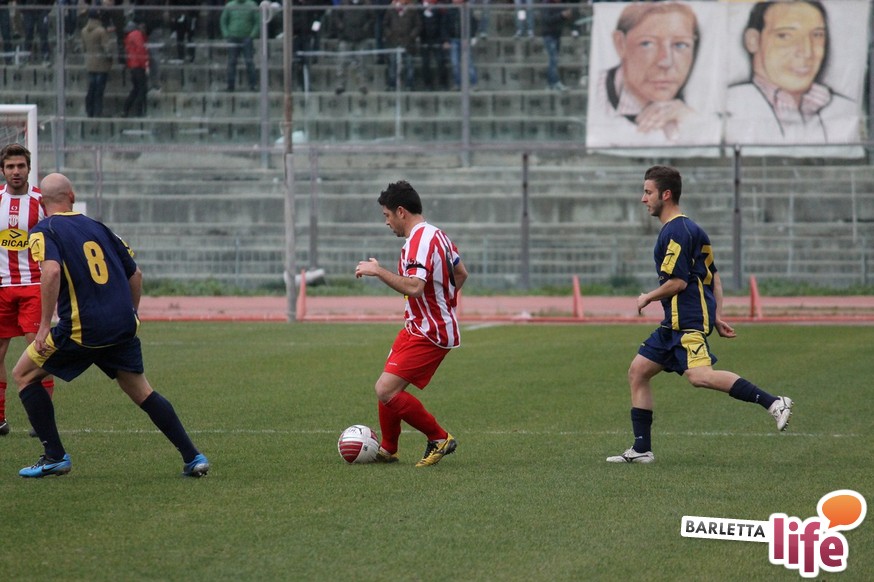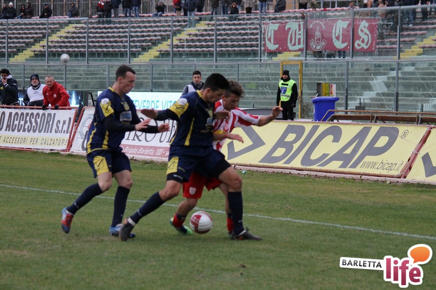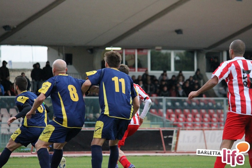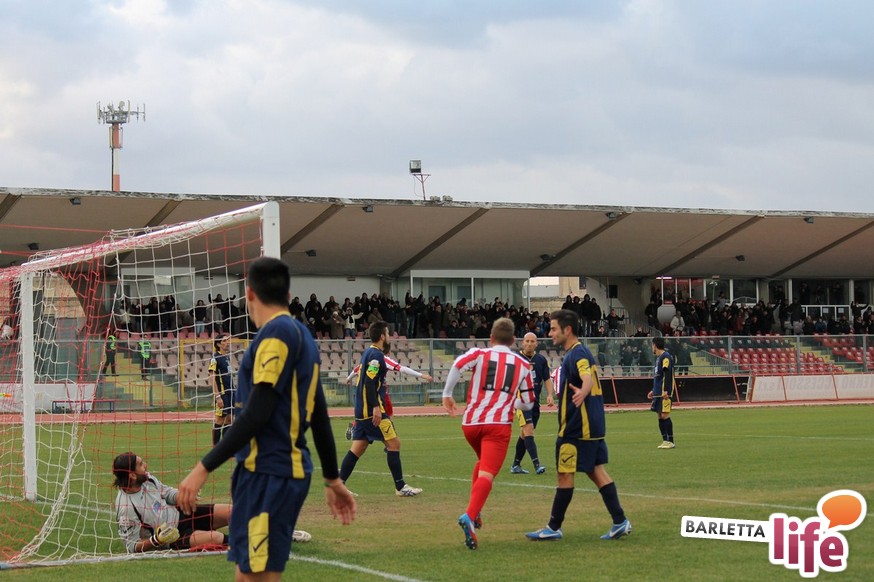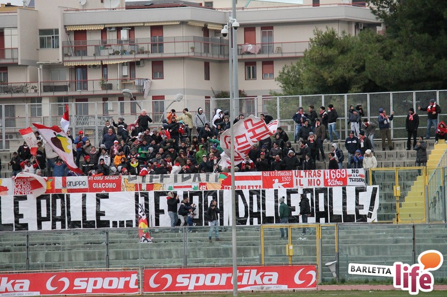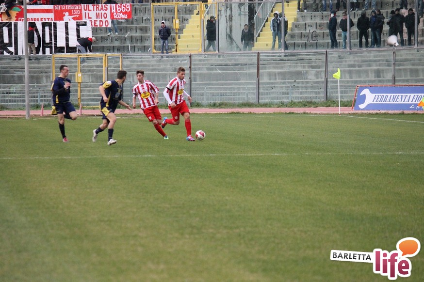 Un solo punto, ultimo posto in coabitazione con gli avversari lunigiani e il Sorrento, tanti musi lunghi e strascichi di addio con il ds Peppino Pavone. Questo è quanto il pari per 2-2 con la Carrarese ha lasciato in eredità al Barletta: ieri pomeriggio al "Cosimo Puttilli", in un pomeriggio denso di emozioni nel pre-partita, in cui si celebravano i ricordi di Mauro Lagrasta, allenatore dei "Giovanissimi Nazionali" biancorossi, scomparso prematuramente in settimana, e dello storico tifoso barlettano Giuseppe Rizzi, venuto a mancare recentemente, si è consumato uno "psicodramma" sportivo: dalle stelle- maturate con il doppio vantaggio biancorosso firmato dopo 30' da Molina e Burzigotti- si è passati, attraverso anche decisioni arbitrali sfavorevoli (rigore molto dubbio concesso agli ospiti e penalty negato al Barletta), al pareggio della Carrarese, con i centri di Makinwa dal dischetto e Mancuso nei finali di tempo. Una partita che ha lasciato increduli i (pochi, per la verità) tifosi accorsi al "Puttilli" e ha lasciato l'amaro in bocca e una classifica deficitaria. Riviviamo il 2-2 tra Barletta e Carrarese attraverso gli scatti fotografici immortalati a bordo campo dagli obiettivi di Giuseppe Savino jr.:
