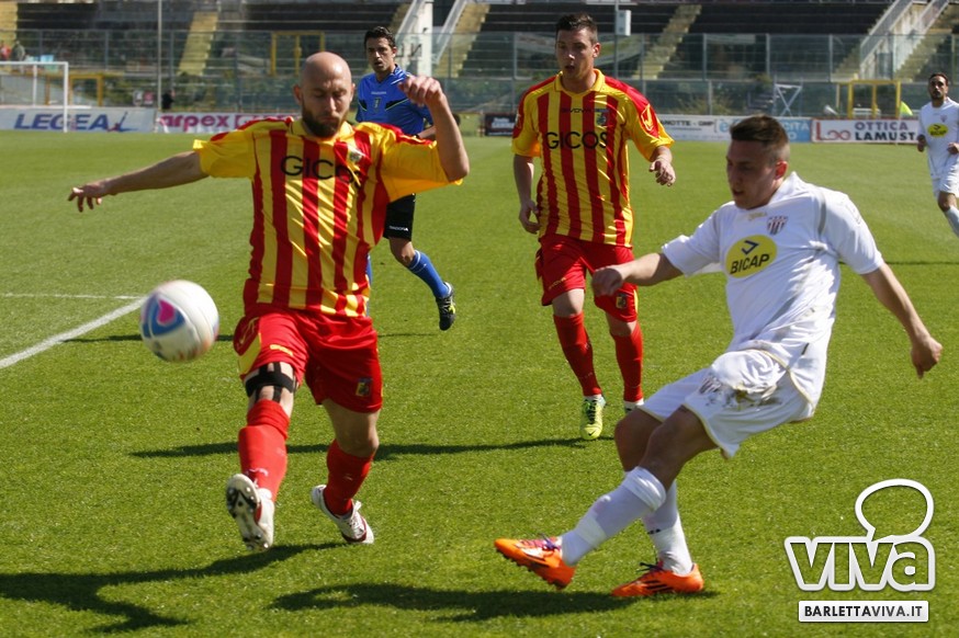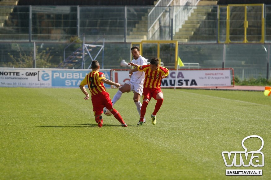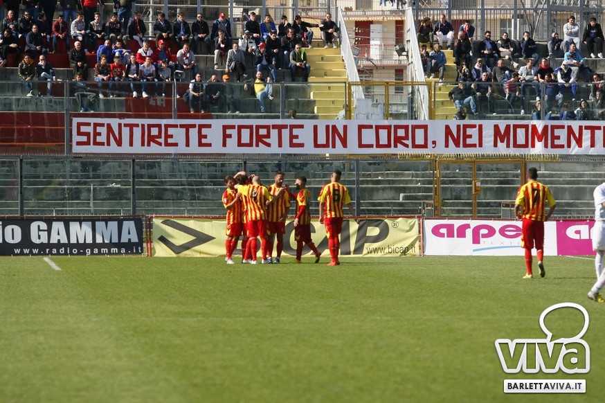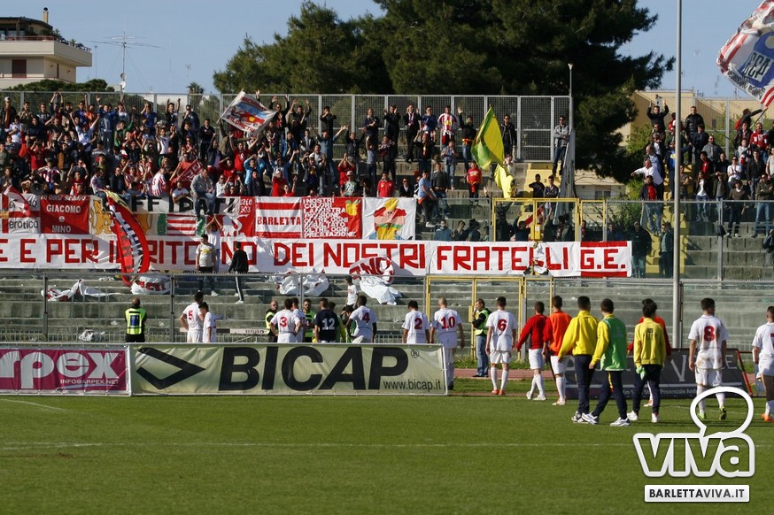 Doveva essere una festa quella del "Puttilli", ma a gioire è stato soltanto il Catanzaro. In un match tra due tifoserie gemellate da anni, il Barletta non riesce a contrastare adeguatamente i calabresi, rimediando un altro pesante ko. La sesta sconfitta consecutiva degli uomini di mister Carrara è firmata da Sabatino, Germinale e Fioretti, ma più del passivo e della sconfitta fa male la mancata reazione della squadra, che è apparsa in balia dell'avversario per tutto il match. A parziale attenuante di Liverani e compagni c'è la lunga lista di infortuni e di squalifiche, ma chi è sceso in campo non è riuscito a dare la scossa in una giornata particolare per le due tifoserie. A decidere le sorti del match è stato anche il cartellino rosso estratto dal signor Verdenelli all'estremo difensore del Barletta Liverani. L'unica nota positiva è stata l'esordio tra i professionisti di Marco Cilli, portiere della Berretti. Riviviamo insieme le emozioni di Barletta-Catanzaro attraverso la photogallery.