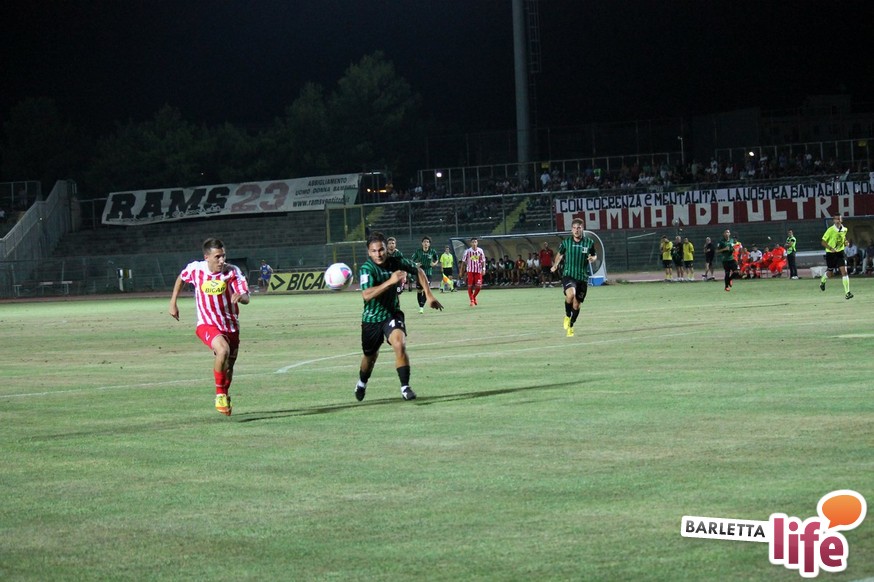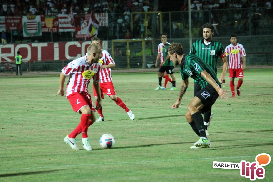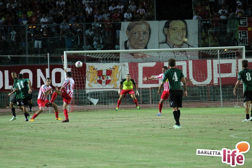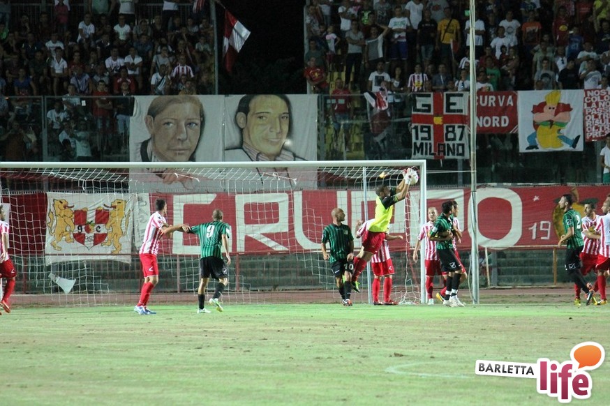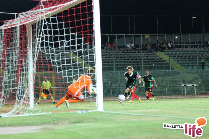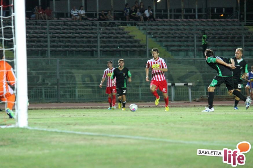 Esordisce con un pareggio il Barletta Calcio versione 2013/2014. La rosa biancorossa, guidata da mister Orlandi, ha da poco concluso il ritiro di Cascia, e ieri sera hanno affrontato, a margine della presentazione, l'11 di Chieti per il primo test amichevole disputato tra le mura amiche. Dinanzi ad una buona cornice di pubblico, un Barletta stanco ed imballato a causa di importanti carichi di lavoro non riesce ad andare oltre il pareggio con i neroverdi, che disputeranno il prossimo campionato di Seconda Divisione. A decidere l'incontro ci hanno pensato Andrea D'Errico, autore di un gol-capolavoro e La Mantia su rigore per quel che riguarda Barletta, mentre per i teatini Guidone mette a segno una doppietta di buona fattura. Riviviamo le emozioni del match amichevole tra i biancorossi di mister Orlandi e i neroverdi di mister Di Meo attraverso la photogallery firmata da Giuseppe Savino Jr.