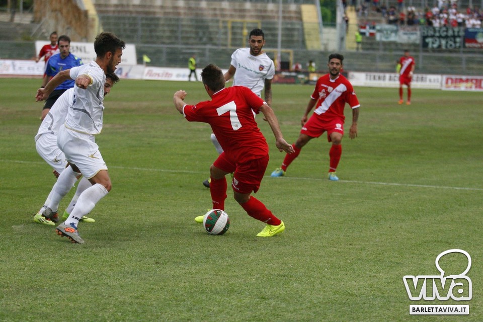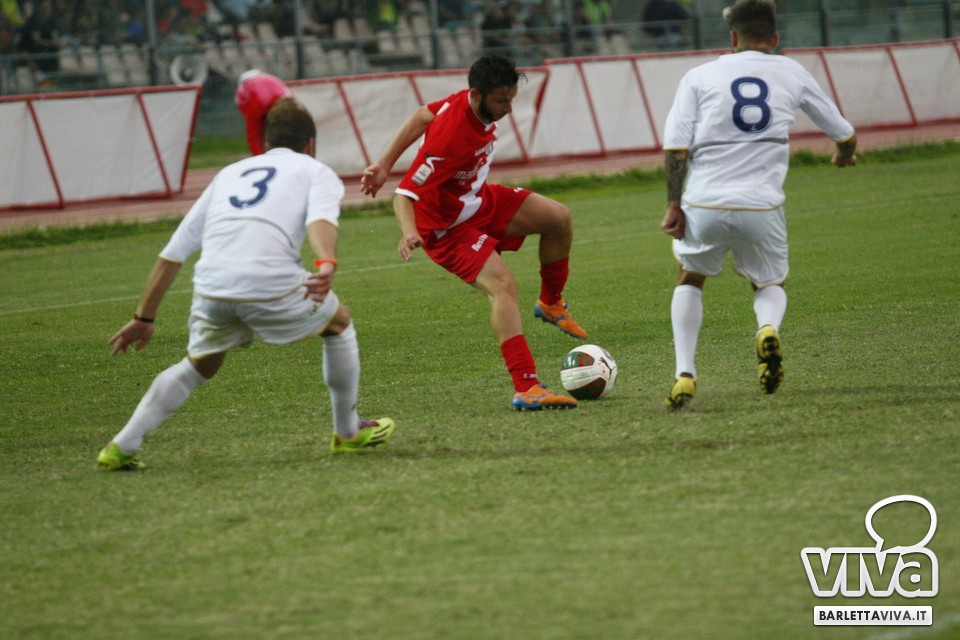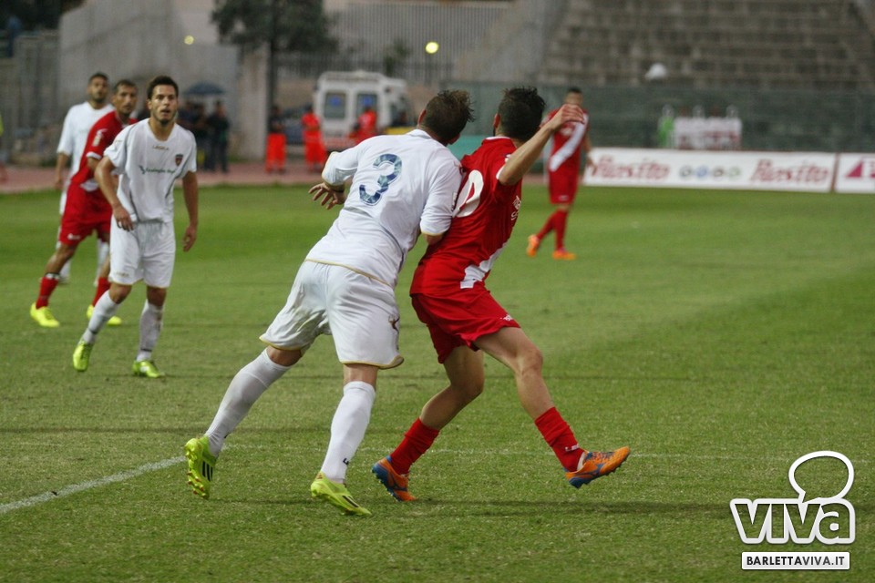Il sabato sera perfetto per i colori biancorossi coincide con la seconda vittoria del Barletta in casa contro il Cosenza. Al "Puttilli", gli uomini di mister Sesia si sono imposti con un netto 3-0 a scapito di Cori e compagni, raramente in grado di impensierire il Barletta. Nel primo tempo, a sbloccare le sorti del match ci pensa Oscar Branzani, subentrato dalla panchina al posto dell'infortunato Legras. L'ex Andria e Cittadella è abile a sfruttare una respinta corte della difesa calabrese insaccando alle spalle di Ravaglia. Nella seconda frazione arrivano i sigilli di Floriano e di Radi che fissano il punteggio sul 3-0. Poche le occasioni da rete per i lupi rossoblu, che hanno anche trascorso gli ultimi minuti del match in inferiorità numerica in virtù del rosso estratto ai danni dell'estremo difensore Ravaglia. Il secondo acuto casalingo consente a Radi e compagni di salire a quota sei punti in classifica, regalando ai propri tifosi un fine settimana da ricordare. Riviviamo le emozioni di Barletta-Cosenza attraverso la photogallery griffata Barlettaviva.