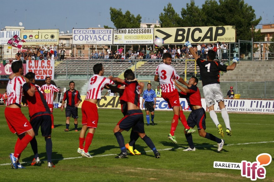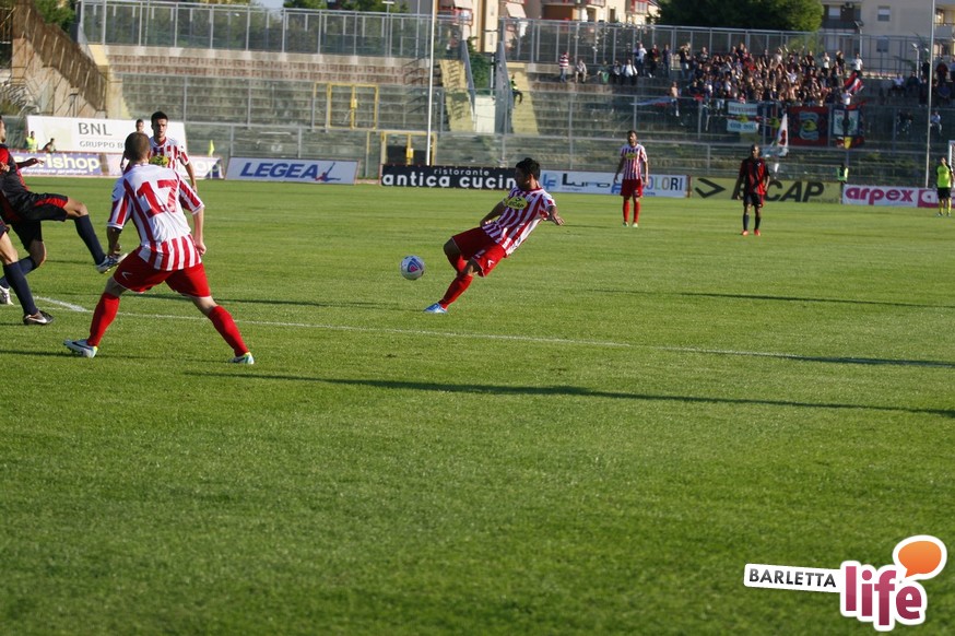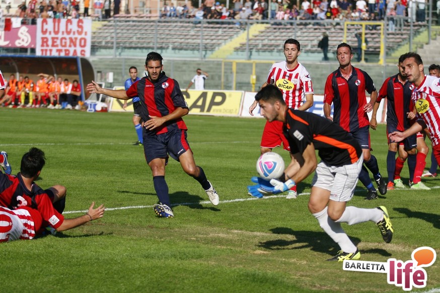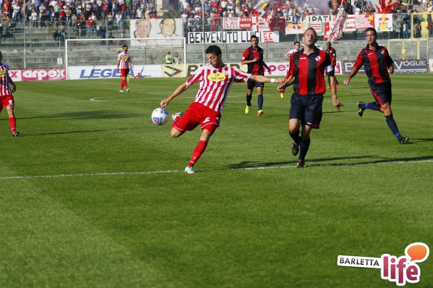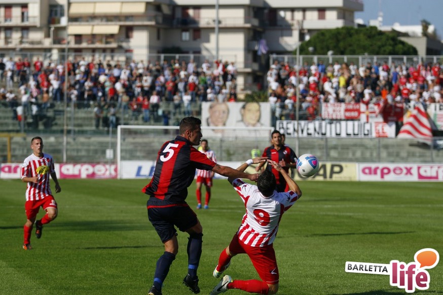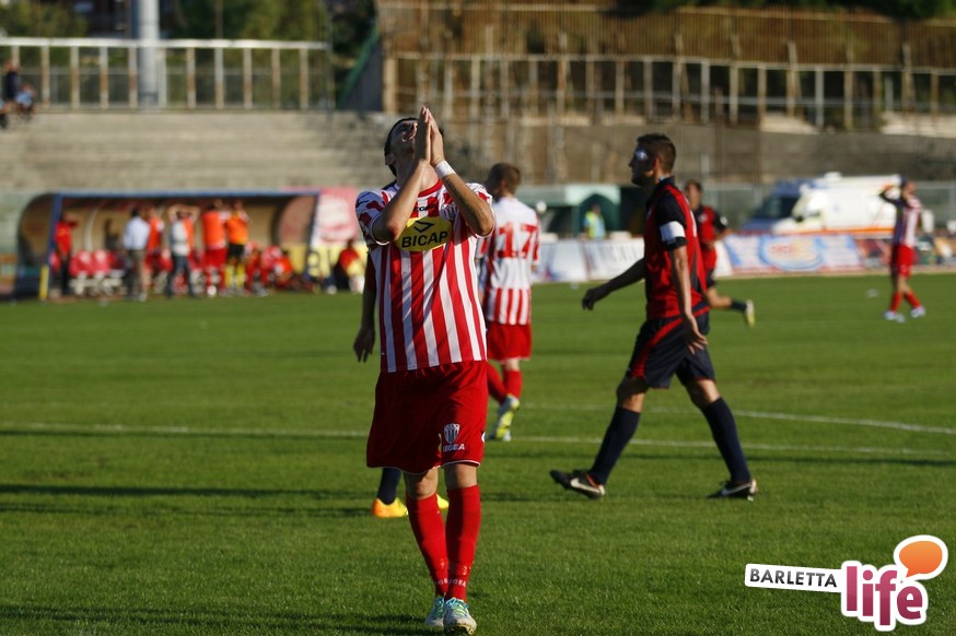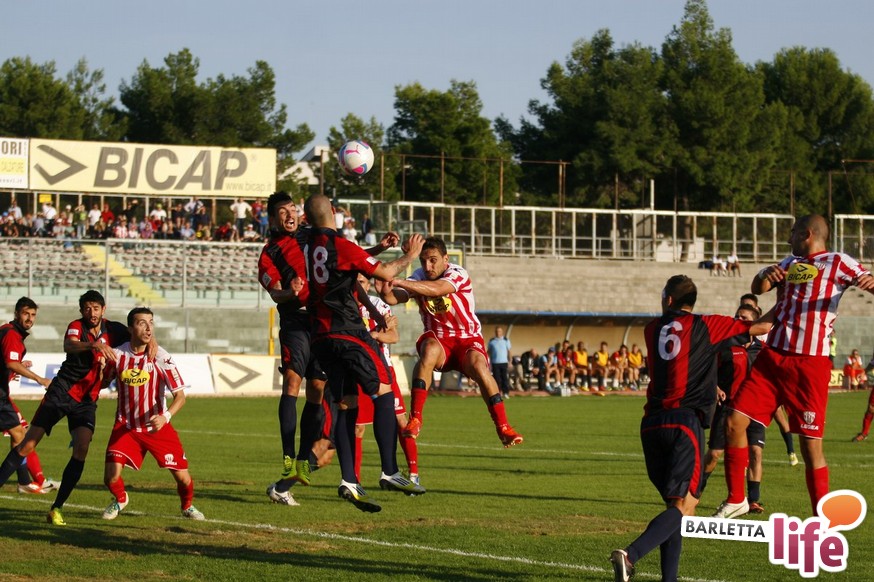 Barletta-L'Aquila 2-2 è stata una partita strana, con reti al primo e all'ultimo respiro. Nel mezzo due fughe abruzzesi, due agganci dei padroni di casa, un'espulsione e tante emozioni. A fine partita il primo pareggio con reti dei biancorossi di casa e il primato de L'Aquila nel girone B di Prima Divisione Lega Pro, sebbene in coabitazione con Frosinone, Pisa e Pontedera, sono stati accolti tiepidamente da entrambe le parti: biancorossi felici per le prime reti stagionali ma al tempo stesso dispiaciuti per non aver sfatato anche il tabù- vittoria, abruzzesi amareggiati per il successo sfumato in extremis. Finalmente su sponda barlettana si sono visti cuore e gioco allo stesso tempo: la classifica ora recita quota 3, mentre gli aquilani salgono a quota 17, agganciando la vetta. Riviviamo le emozioni del pareggio marcato dai centri di Carcione, Allegretti, Del Pinto e Picci attraverso i migliori scatti fotografici realizzati a bordo campo dagli obiettivi di Enrico Gorgoglione: