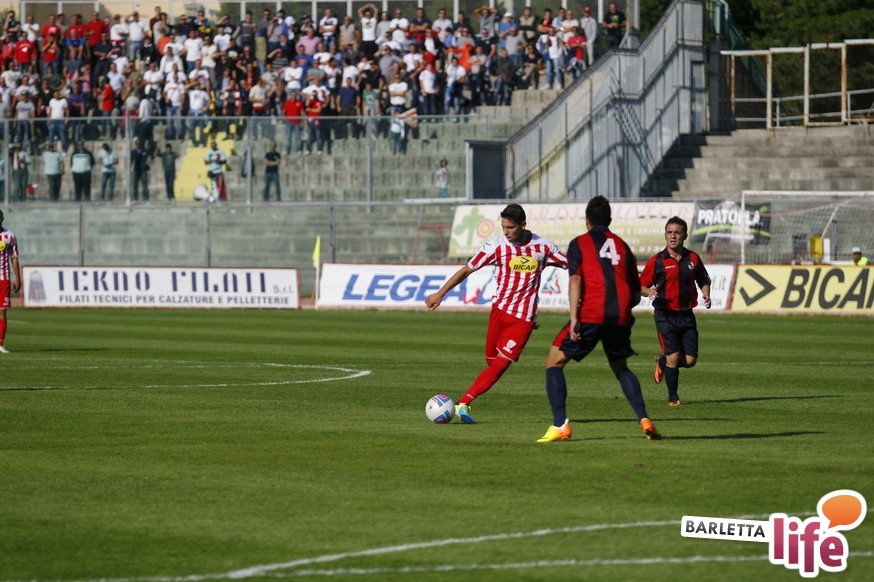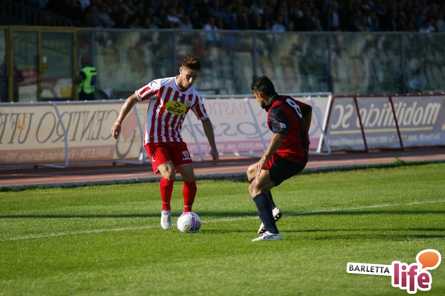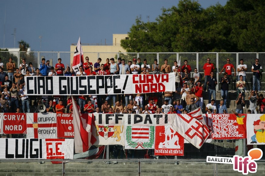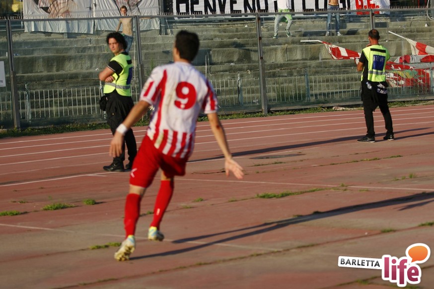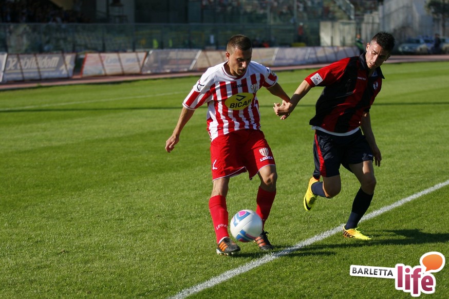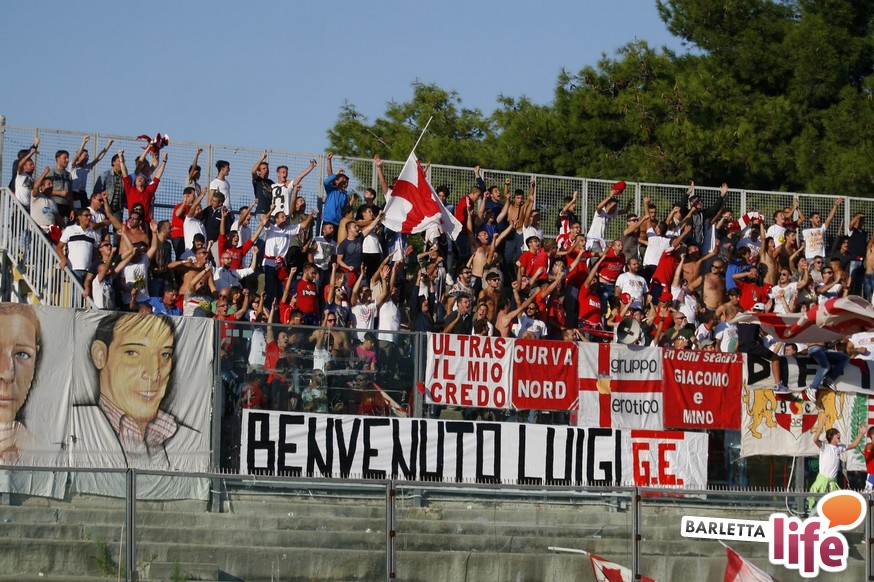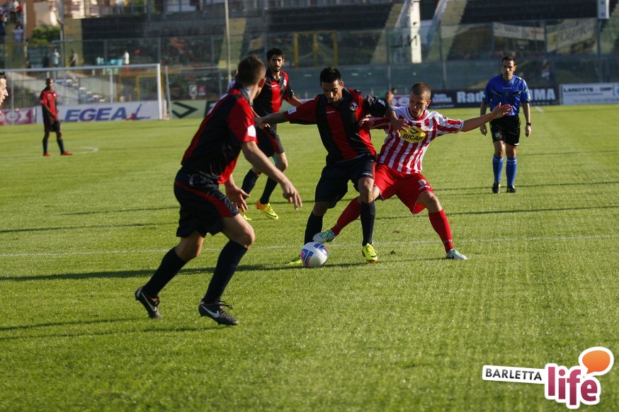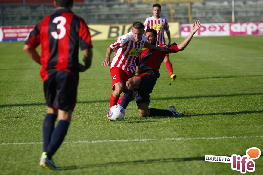 Barletta-L'Aquila 2-2 è stata una partita strana, con reti al primo e all'ultimo respiro. Nel mezzo due fughe abruzzesi, due agganci dei padroni di casa, un'espulsione e tante emozioni. A fine partita il primo pareggio con reti dei biancorossi di casa e il primato de L'Aquila nel girone B di Prima Divisione Lega Pro, sebbene in coabitazione con Frosinone, Pisa e Pontedera, sono stati accolti tiepidamente da entrambe le parti: biancorossi felici per le prime reti stagionali ma al tempo stesso dispiaciuti per non aver sfatato anche il tabù- vittoria, abruzzesi amareggiati per il successo sfumato in extremis. Finalmente su sponda barlettana si sono visti cuore e gioco allo stesso tempo: la classifica ora recita quota 3, mentre gli aquilani salgono a quota 17, agganciando la vetta. Riviviamo le emozioni del pareggio marcato dai centri di Carcione, Allegretti, Del Pinto e Picci attraverso i migliori scatti fotografici realizzati a bordo campo dagli obiettivi di Enrico Gorgoglione: