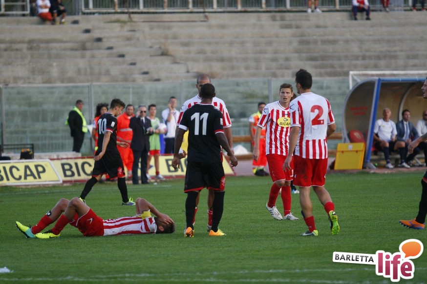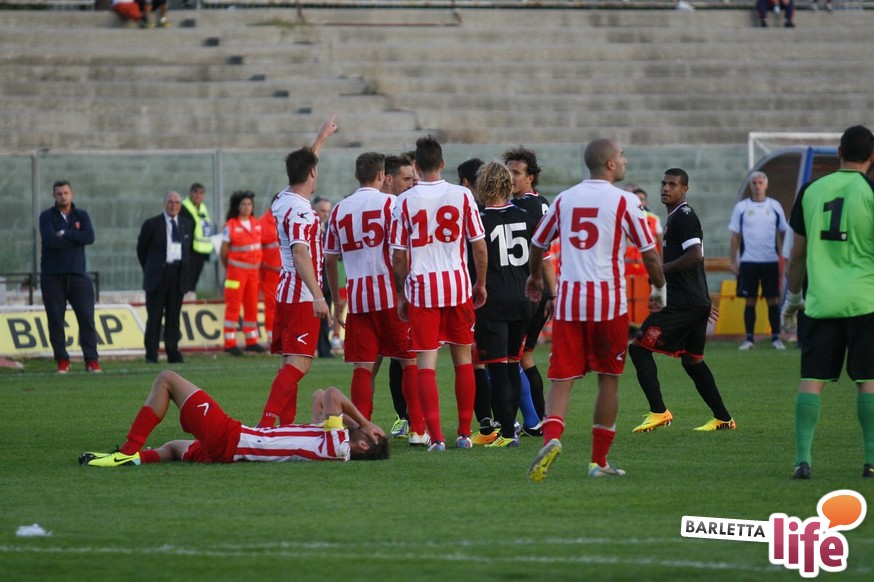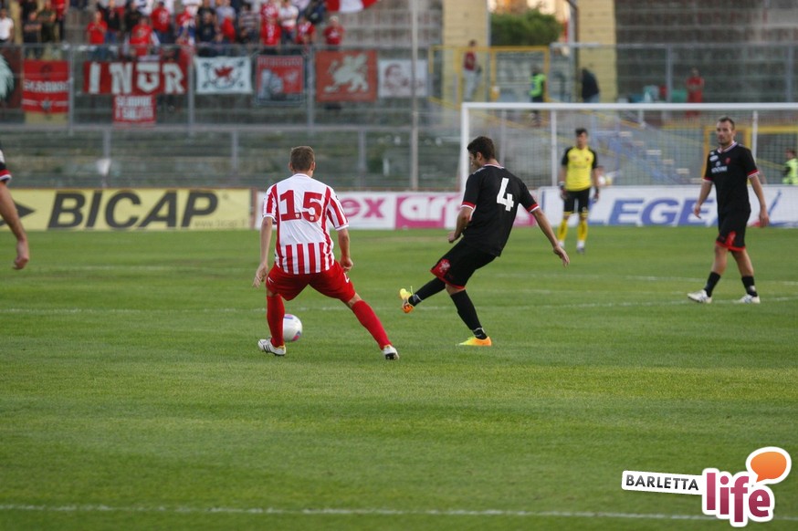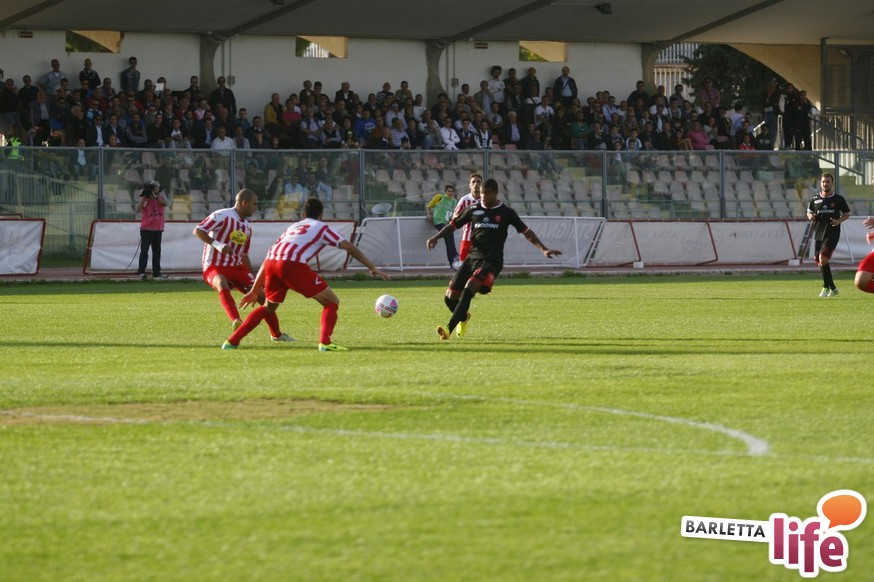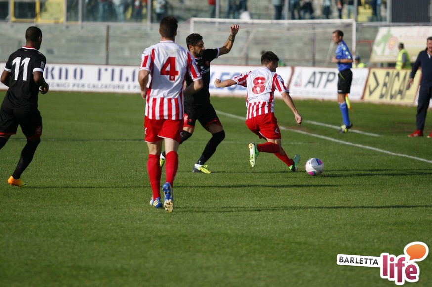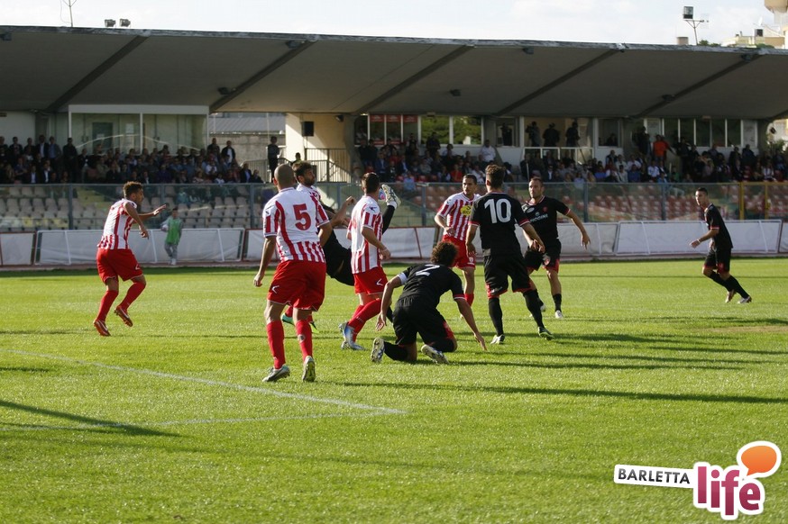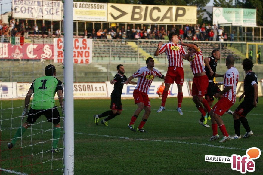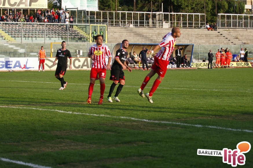 Dopo la settimana appena trascorsa, caratterizzata da un nugolìo di episodi con pochi precedenti nella storia recente, la rosa del Barletta Calcio avrebbe potuto reagire in due modi: o dimostrando finalmente di esserci oppure adeguandosi al depresso ambiente societario dopo l'addio del presidente Tatò, replicando la prestazione vista a Pagani, oppure reagendo in maniera forte. Camilleri e compagni hanno perseguito la seconda via, sfoderando determinazione e orgoglio, reggendo l'impatto contro una squadra ambiziosa come il Perugia e portando a casa un punto tanto meritato quanto amaro: il bottino avrebbe potuto infatti essere ben più congruo se Koprivec non avesse respinto un calcio di rigore di Picci dopo un'ora di gioco. Resta sullo sfondo il quarto punto in classifica e una piccola luce in fondo al tunnel tecnico che la squadra aveva imboccato dopo il ko al "Torre" di Pagani. Riviviamo le emozioni riservate da Barletta-Perugia 0-0 attraverso le istantanee scattate a bordo campo dagli obiettivi di Enrico Gorgoglione: