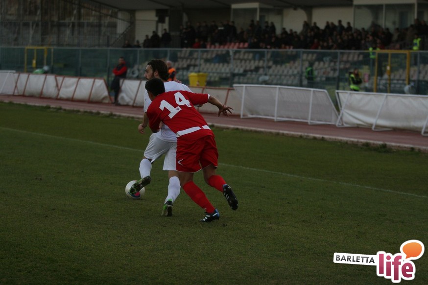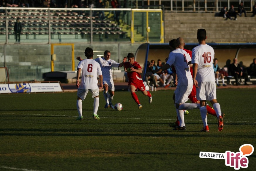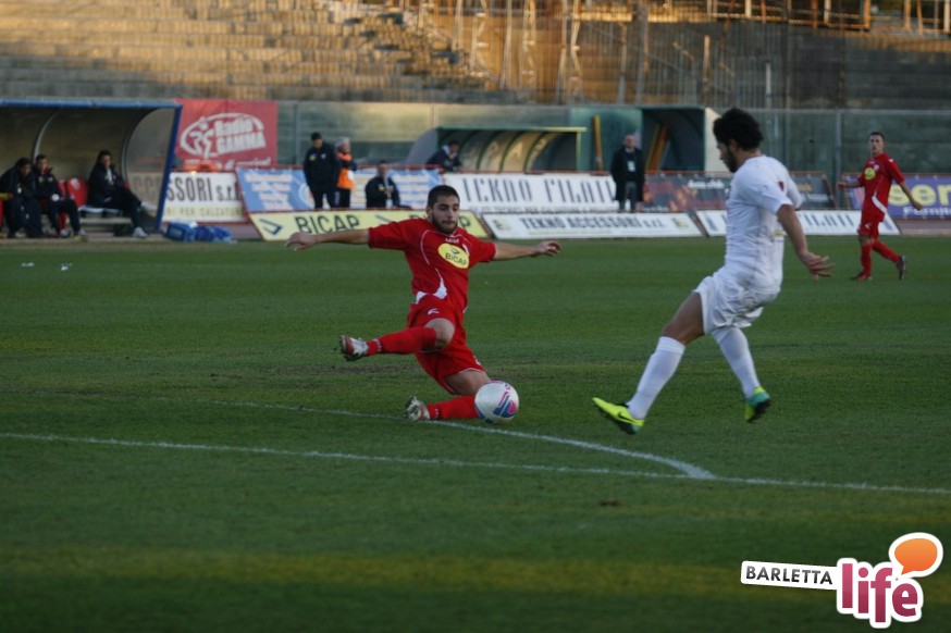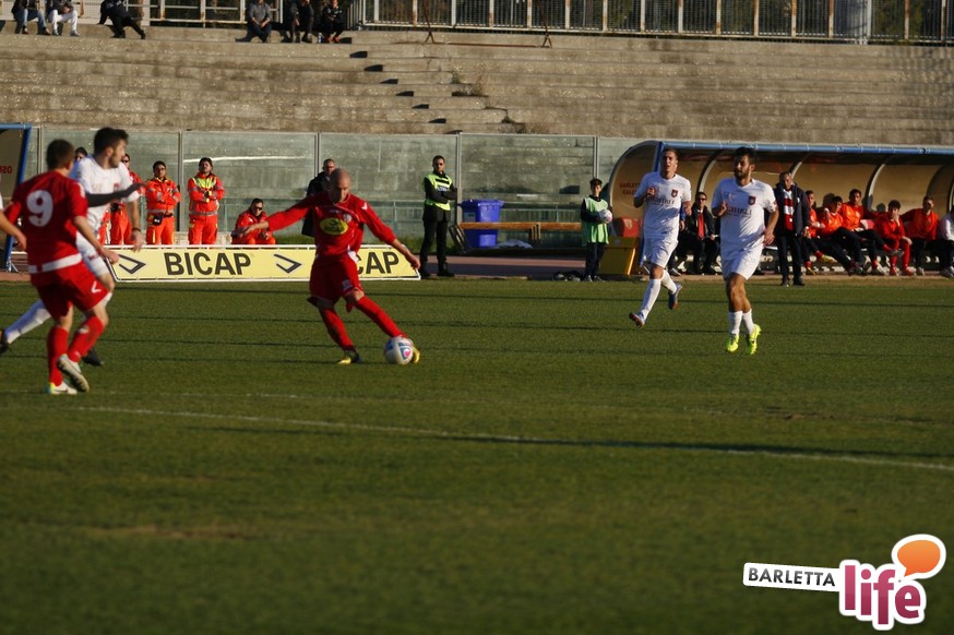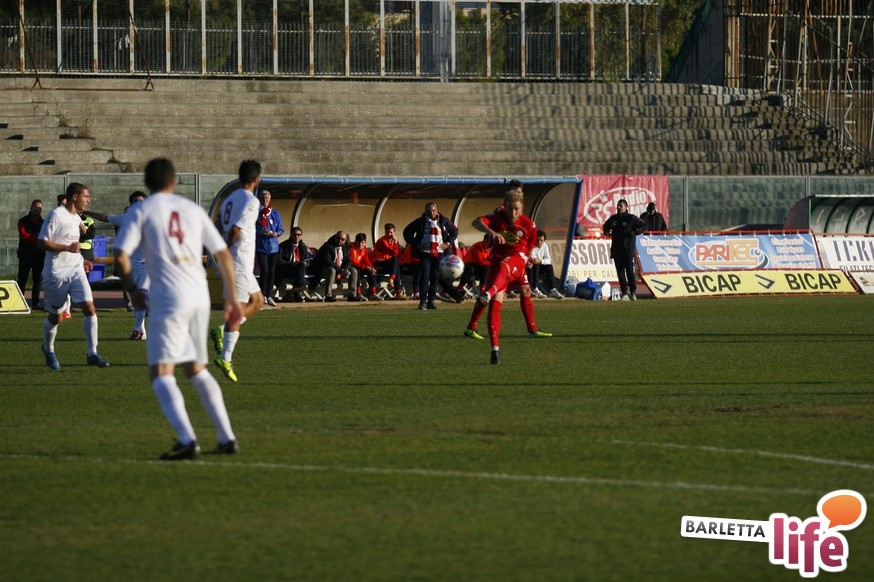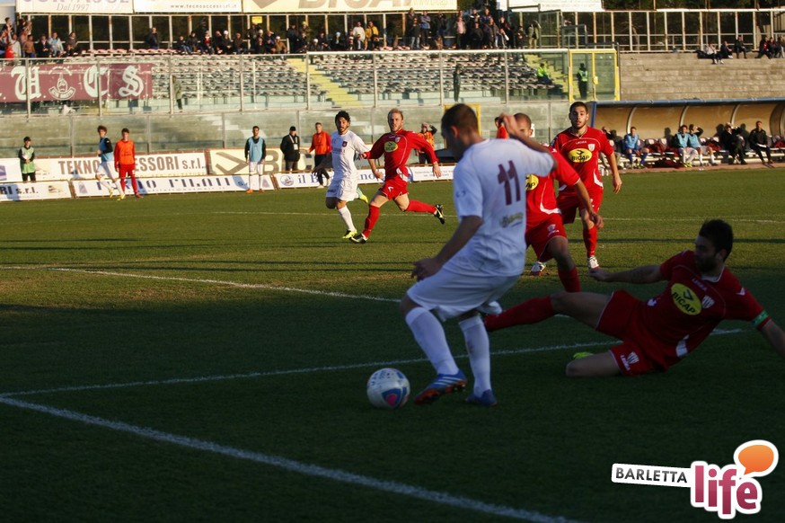 E' finita 2-2, ma Barletta-Pontedera- partita giocata ieri al "Puttilli" per il recupero del turno numero 14 del girone B di Prima Divisione Lega Pro- è stata una partita strana, con un tempo per parte. Alla fine la divisione della posta lascia l'amaro in bocca agli ospiti, vicini spesso e volentieri nel primo tempo al colpo di grazia, e rinfranca i biancorossi, che hanno reagito a "botte" (calcistiche) da orbi come le reti di Arrighini e Grassi con una veemente reazione di carattere e nervi nella ripresa, trovando i centri del pareggio con D'Errico prima e Ilari poi. Barletta che consolida la terz'ultima posizione, "habitat" di classifica biancorosso da un anno e mezzo a questa parte, con 10 punti all'attivo, mentre il Pontedera guadagna l'ottavo posto. Sullo sfondo restano le contestazioni dei tifosi di casa all'indirizzo della dirigenza di via Vittorio Veneto. Riviviamo il pareggio del "Puttilli" attraverso le istantanee scattate a bordo campo dagli obiettivi di Enrico Gorgoglione: