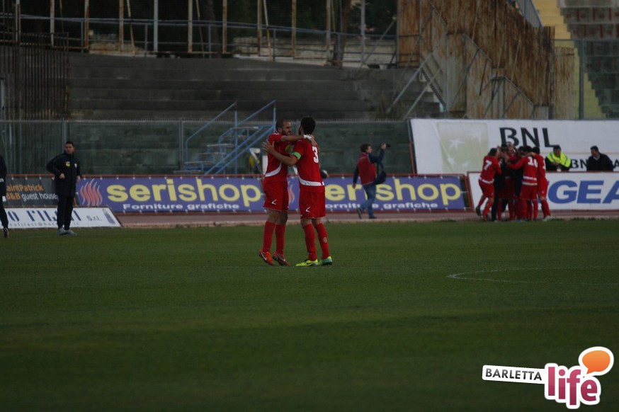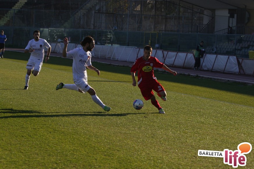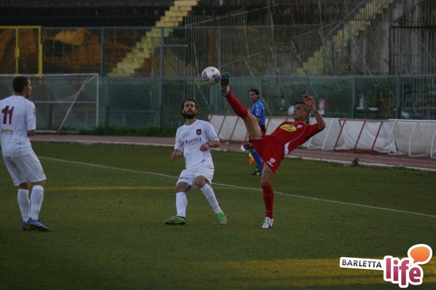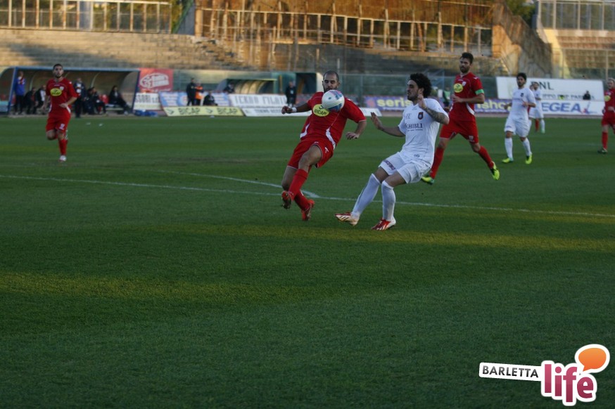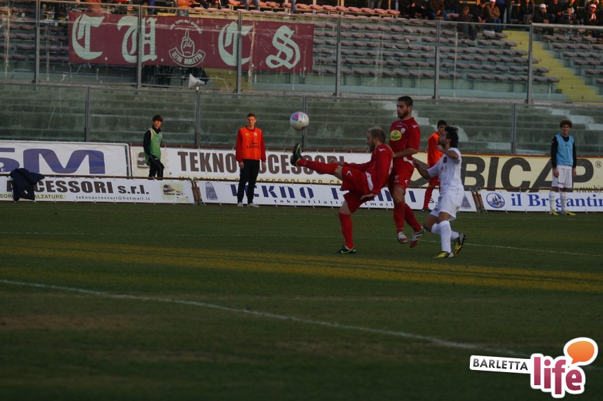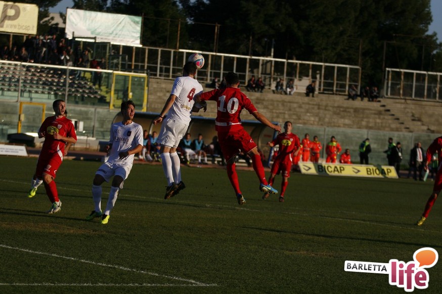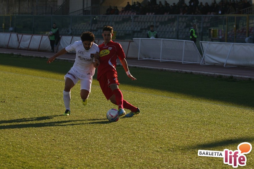 E' finita 2-2, ma Barletta-Pontedera- partita giocata ieri al "Puttilli" per il recupero del turno numero 14 del girone B di Prima Divisione Lega Pro- è stata una partita strana, con un tempo per parte. Alla fine la divisione della posta lascia l'amaro in bocca agli ospiti, vicini spesso e volentieri nel primo tempo al colpo di grazia, e rinfranca i biancorossi, che hanno reagito a "botte" (calcistiche) da orbi come le reti di Arrighini e Grassi con una veemente reazione di carattere e nervi nella ripresa, trovando i centri del pareggio con D'Errico prima e Ilari poi. Barletta che consolida la terz'ultima posizione, "habitat" di classifica biancorosso da un anno e mezzo a questa parte, con 10 punti all'attivo, mentre il Pontedera guadagna l'ottavo posto. Sullo sfondo restano le contestazioni dei tifosi di casa all'indirizzo della dirigenza di via Vittorio Veneto. Riviviamo il pareggio del "Puttilli" attraverso le istantanee scattate a bordo campo dagli obiettivi di Enrico Gorgoglione: