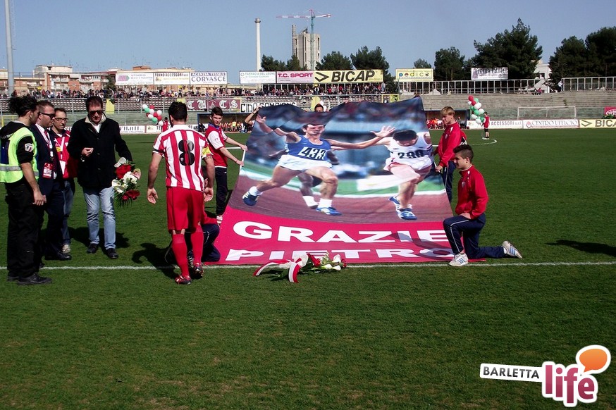 Un vecchio proverbio recita "non c'è due senza tre", ma la tifoseria biancorossa questo "tre" l'avrebbe evitato volentieri. Al "Puttilli", nel giorno del ricordo di Pietro Mennea, un Barletta sbiadito ed impaurito non va oltre il terzo 0-0 consecutivo contro un buon Sorrento. Più che il punto conquistato, il terzo con Orlandi in panchina, il tifo biancorosso e gli addetti ai lavori mal digeriscono un Barletta privo di gioco, inerme e quasi succube dell'avversario, incapace di attaccare e di pressare a dovere. Poche, pochissime le occasioni create dai biancorossi, che avrebbero potuto strappare i 3 punti con maggiore precisione sotto porta. Le occasioni sprecate da Simoncelli in avvio e da La Mantia a fine gara sono lo specchio di una squadra eternamente alla ricerca dell'uomo in grado di buttare la palla in rete. Riviviamo le (poche) emozioni di un grigio Barletta-Sorrento attraverso le istantanee colte dall'obiettivo di Francesco Digiorgio:
