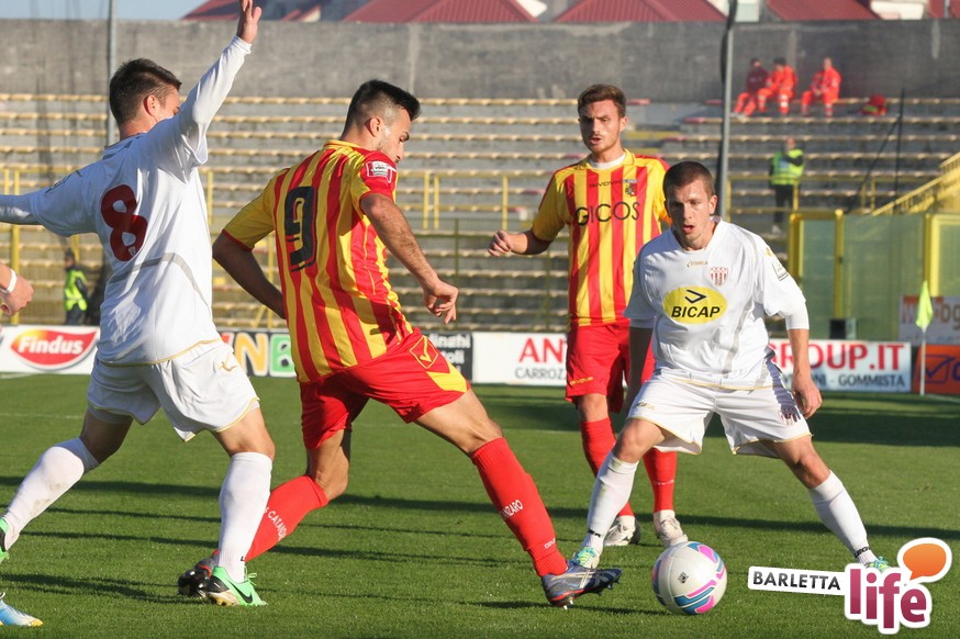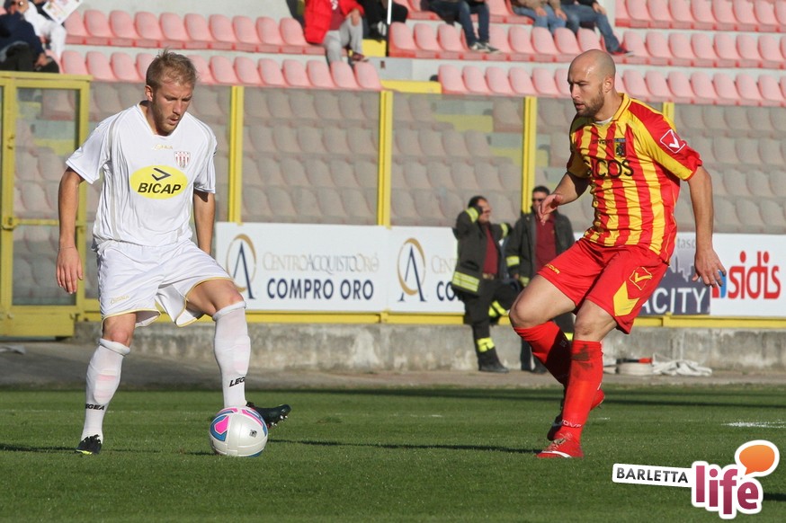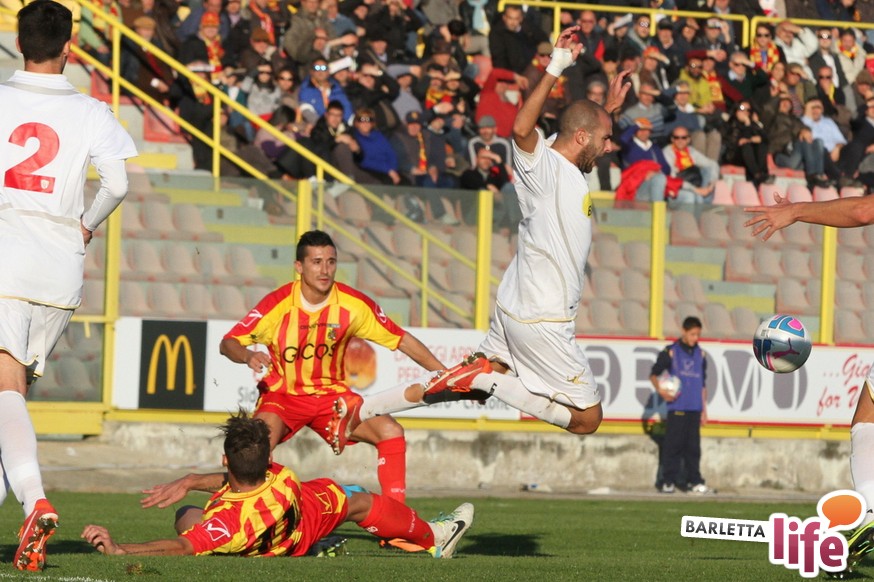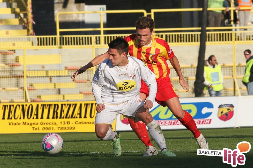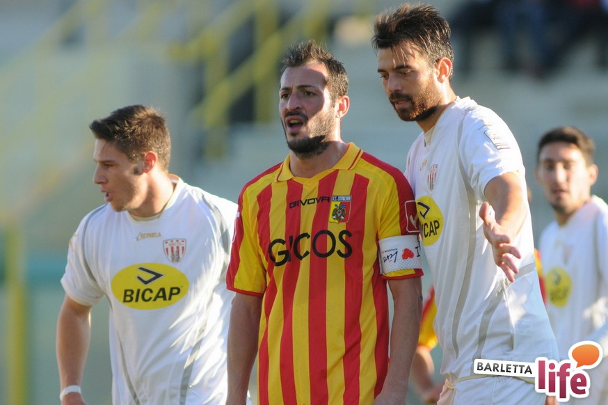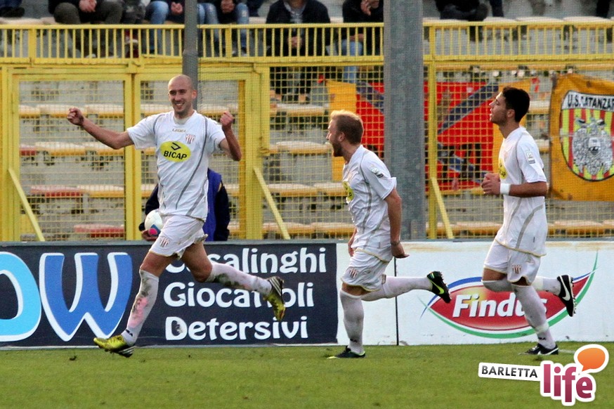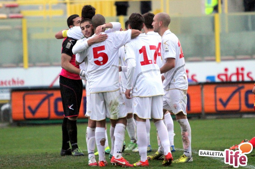 Serviva una reazione, una risposta dopo tre mesi di campionato ricchi di errori, passi indietro e avidi di gioie: il Barletta Calcio l'ha avuta, trovando sul prato del "Ceravolo" di Catanzaro un prezioso 1-1, che vale come una vittoria per il morale e l'orgoglio e avrebbe potuto essere tale al netto degli errori sotto porta e delle parate dell'estremo calabrese Bindi. Dopo un primo tempo di marca biancorossa, i padroni di casa erano passati in vantaggio con Fioretti, salvo essere raggiunti cinque minuti dopo da Ilari, l'uomo più in forma al momento in casa-Barletta. Un pareggio che vale doppio, celebrato nel giorno della festa tra le due tifoserie, gemellate, e che rappresenta un punto di ripartenza in vista del doppio confronto interno previsto tra sabato e mercoledì contro Nocerina e Pontedera. Riviviamo le emozioni del match pareggiato dai biancorossi nel gremito "Ceravolo" di Catanzaro (quasi 4000 spettatori presenti) attraverso la photogallery gentilmente concessa dall'Ufficio Stampa dell'U.S. Catanzaro: