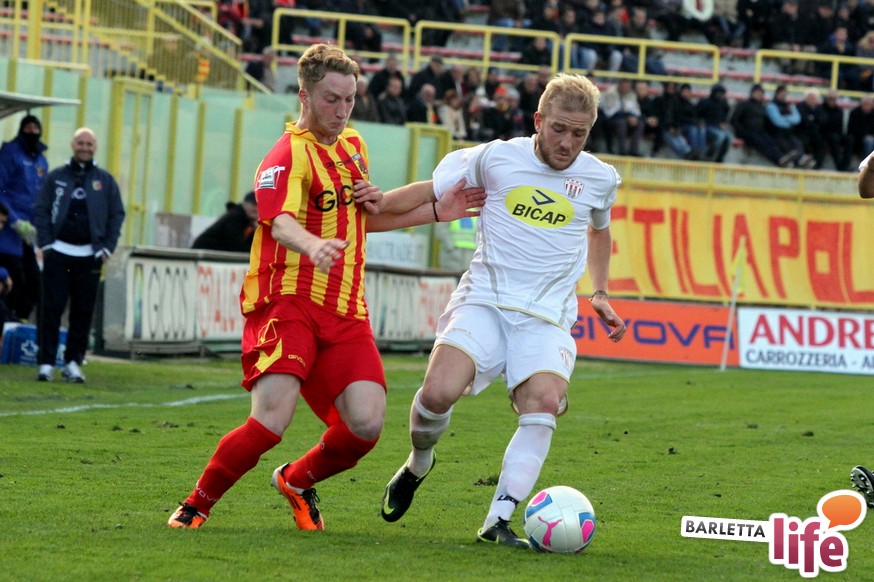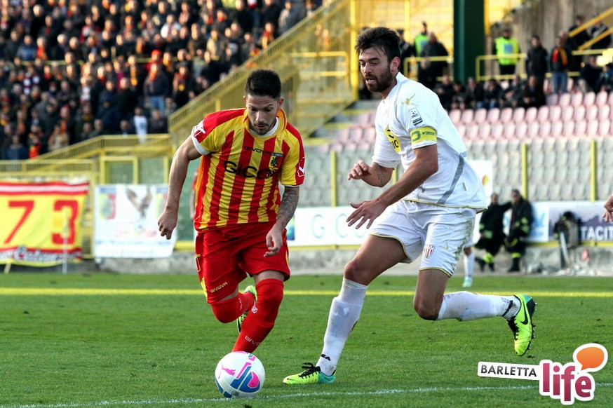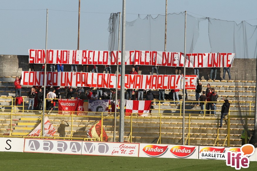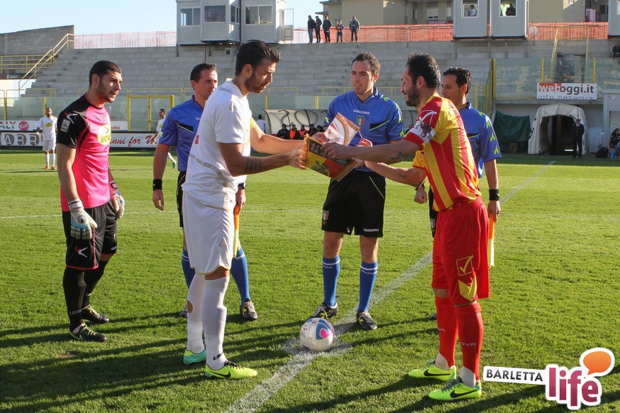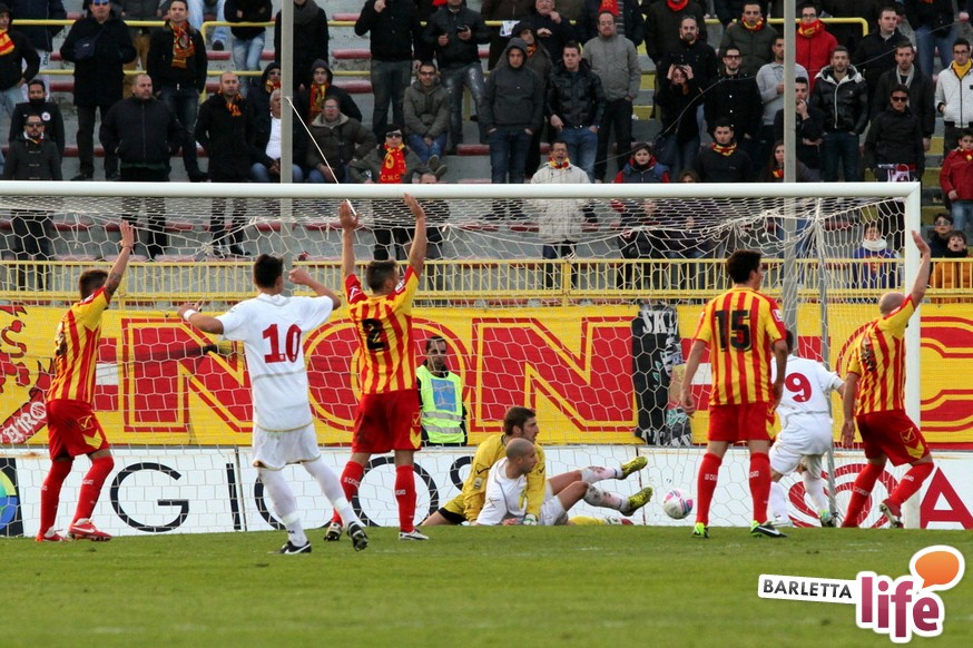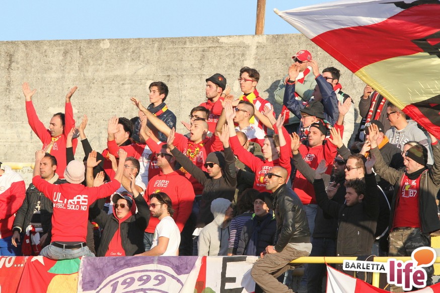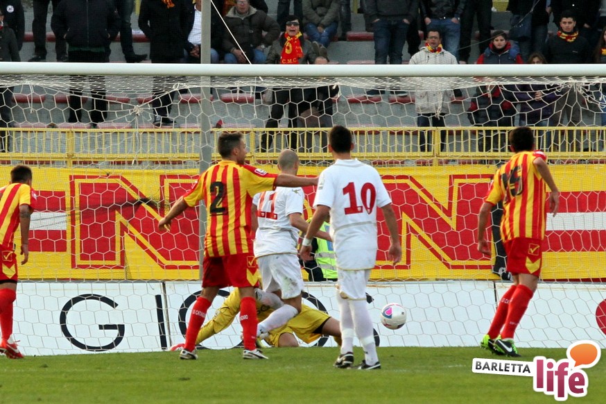 Serviva una reazione, una risposta dopo tre mesi di campionato ricchi di errori, passi indietro e avidi di gioie: il Barletta Calcio l'ha avuta, trovando sul prato del "Ceravolo" di Catanzaro un prezioso 1-1, che vale come una vittoria per il morale e l'orgoglio e avrebbe potuto essere tale al netto degli errori sotto porta e delle parate dell'estremo calabrese Bindi. Dopo un primo tempo di marca biancorossa, i padroni di casa erano passati in vantaggio con Fioretti, salvo essere raggiunti cinque minuti dopo da Ilari, l'uomo più in forma al momento in casa-Barletta. Un pareggio che vale doppio, celebrato nel giorno della festa tra le due tifoserie, gemellate, e che rappresenta un punto di ripartenza in vista del doppio confronto interno previsto tra sabato e mercoledì contro Nocerina e Pontedera. Riviviamo le emozioni del match pareggiato dai biancorossi nel gremito "Ceravolo" di Catanzaro (quasi 4000 spettatori presenti) attraverso la photogallery gentilmente concessa dall'Ufficio Stampa dell'U.S. Catanzaro: