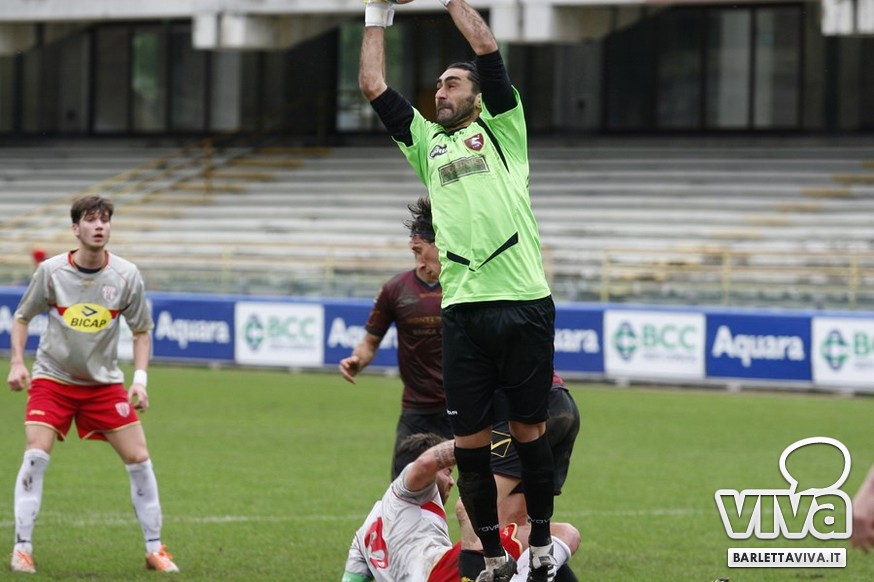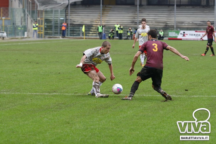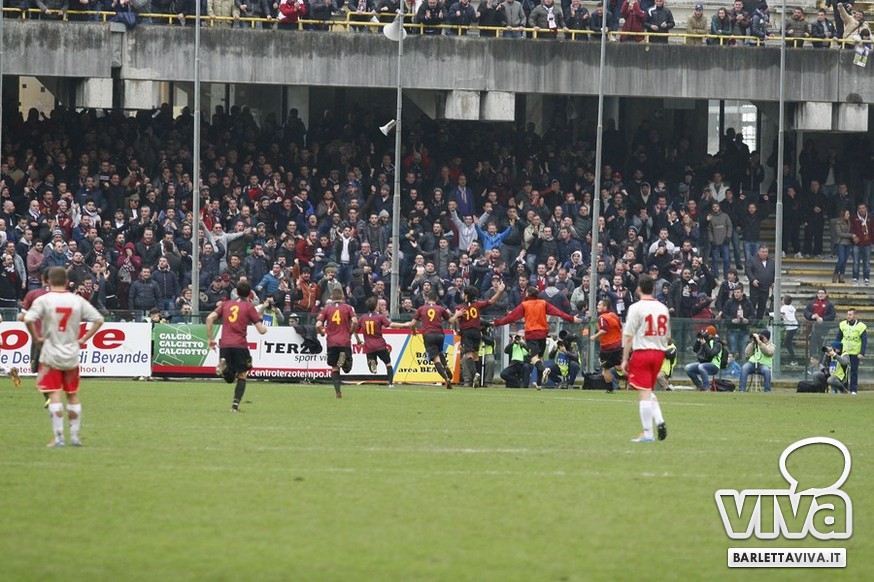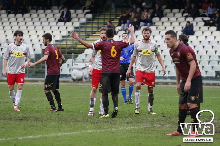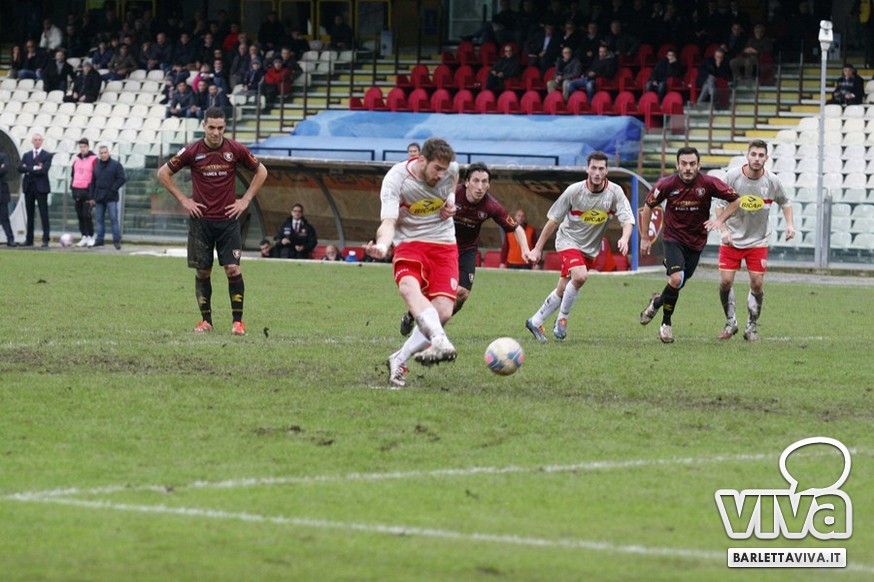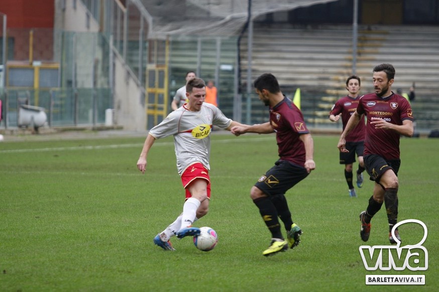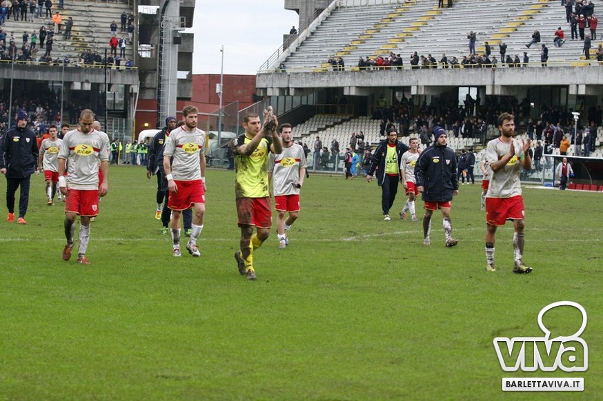 Tre schiaffi con vista sulla costiera amalfitana riportano il Barletta sulla terraferma. All'Arechi di Salerno, gli uomini di mister Orlandi hanno ceduto per 3-0 alla Salernitana del neo-tecnico Gregucci. Un ko secco, frutto di una prestazione opaca che fa registrare un importante passo indietro nel percorso di miglioramento denotato nel 2014 biancorosso. Dopo venti minuti giocati alla pari, la Salernitana ha presto preso metri e possesso della manovra, risultando superiore a Camilleri e compagni sul piano del ritmo e del palleggio. I centri di Gustavo, Mancini e Mendicino, conditi dall'ispirazione di Pasquale Foggia hanno condannato il Barletta alla nona sconfitta stagionale, la più pesante sul piano numerico e una delle più opache sotto il profilo del gioco e del carattere. Del pomeriggio dell'Arechi si salvano soprattutto gli oltre duecento tifosi di fede barlettana presenti in terra cilentana, ora il prossimo ostacolo si chiama Lecce. Riviviamo le emozioni principali di Salernitana-Barletta attraverso gli scatti fotografici ripresi dagli obiettivi idi Enrico Gorgoglione.