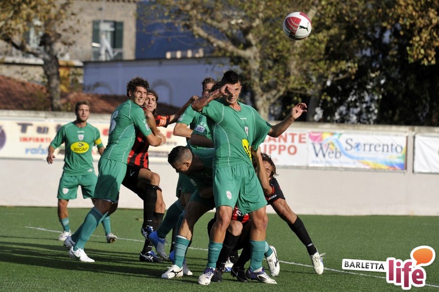 Ci sono terreni di gioco ai quali si lega indissolubilmente la propria storia negli anni, e lo stadio "Italia" di Sorrento per il Barletta è uno di questi. 25 anni fa i biancorossi vi festeggiarono la storica prima promozione in serie B, ieri pomeriggio, 11 novembre 2012, vi hanno conquistato la prima vittoria di questa stagione così complicata. E' stata la vittoria del cuore, dell'orgoglio per gli uomini di Stringara, davanti a un avversario non certo irresistibile. Erano tanti i giovanissimi in campo, e due di questi, Jacopo Dezi e Luca Calapai, hanno regalato i tre punti al Barletta, rimontando il vantaggio sorrentino firmato da Schenetti. E' successo tutto nella ripresa, ma il 2-1 finale ci racconta di un Barletta che sale a quota 6 punti in classifica dopo 10 giornate del campionato di Prima Divisione, girone B, agganciando proprio i ragazzi di Bucaro in penultima posizione, stante anche la mancata disputa per maltempo di Carrarese-Gubbio. Una vittoria che restituisce vigore all'ambiente barlettano e ridesta a quasi 200 giorni dall'ultimo sorriso in gare ufficiali i tifosi barlettani arrivati a Sorrento: questa vittoria è anche loro. Domenica arriva al "Puttilli" la Paganese, tassativo non fermarsi più, ora. Noi di Barlettalife.it vi facciamo rivivere le emozioni della sfida dello stadio "Italia" attraverso le istantanee più belle raccolte nella photogallery curata da Luigi Penna: