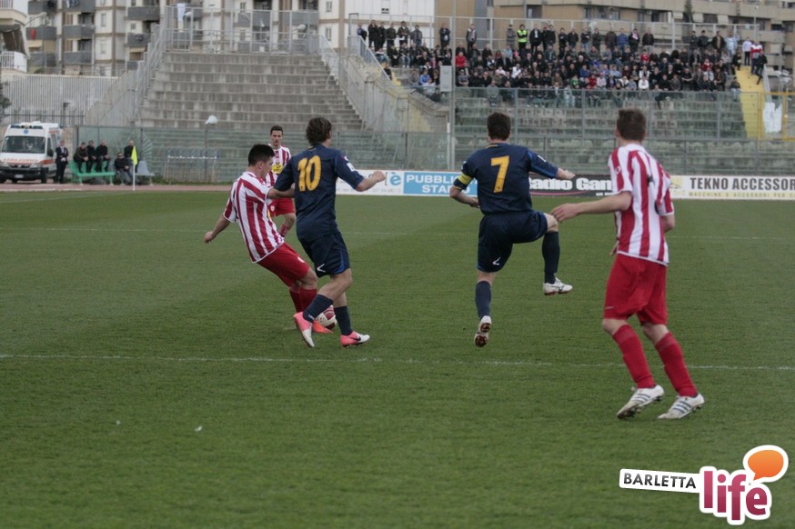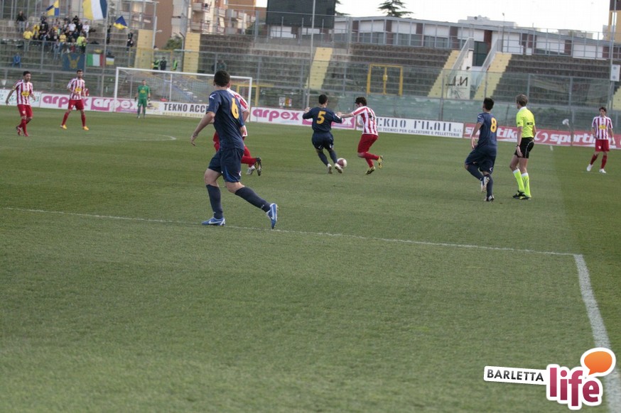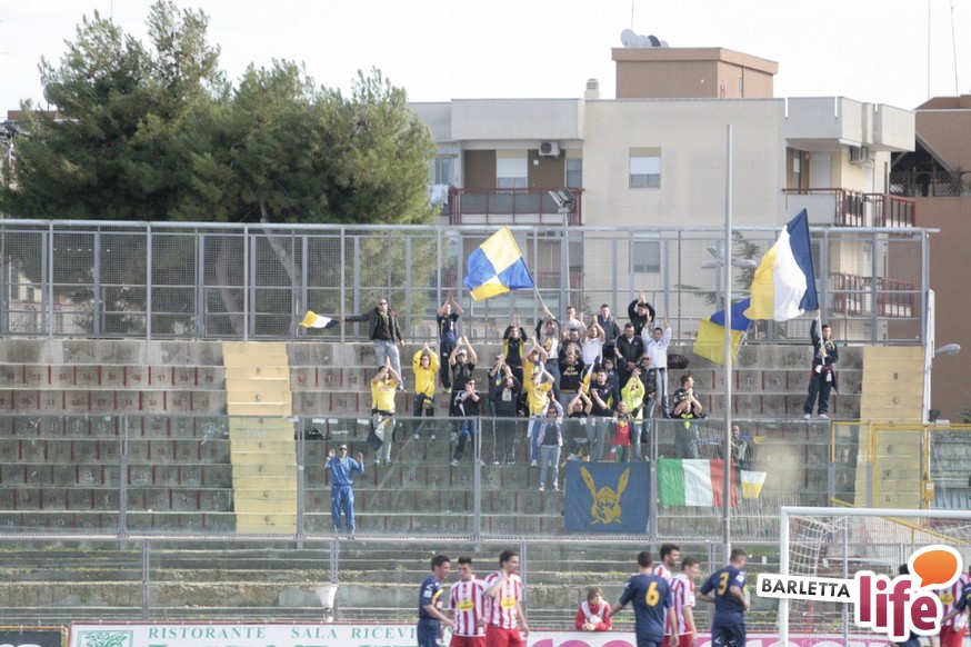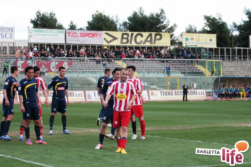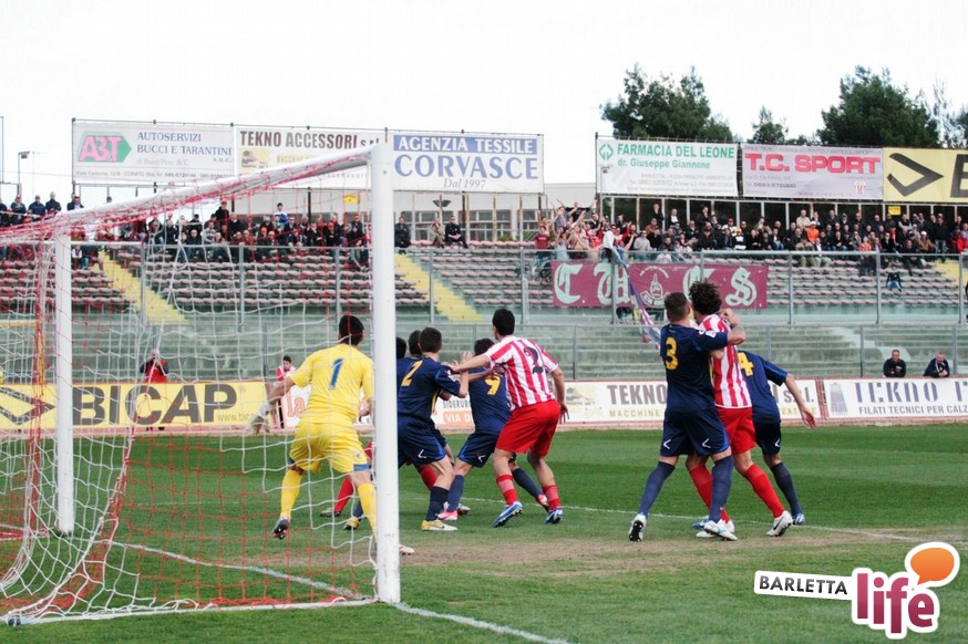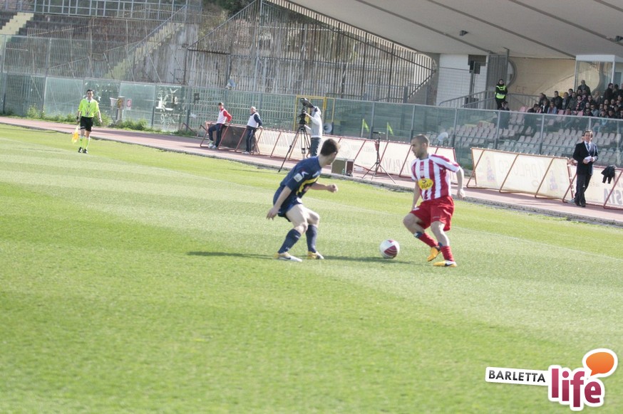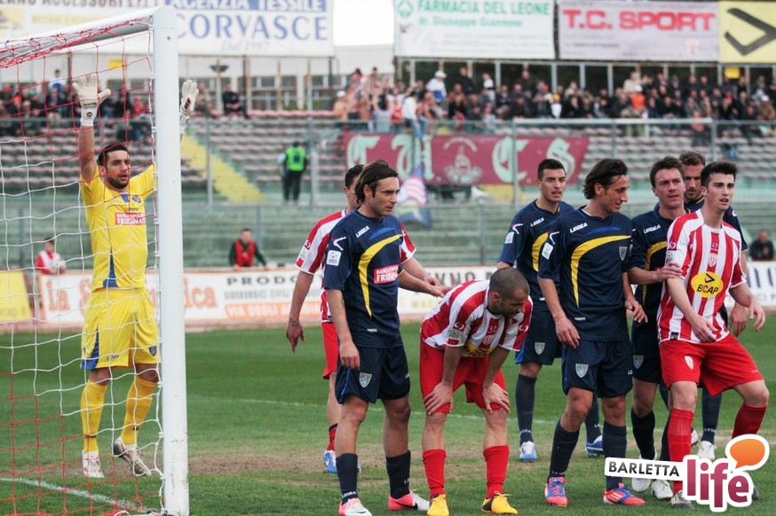 Non si può certo dire che la tempesta sia del tutto terminata, ma quanto meno in casa Barletta calcio ha smesso di "grandinare". Dopo i 4 ko di fila che hanno lasciato l'amaro in bocca all'intera piazza, ieri contro un Frosinone insolitamente impoverito nelle fonti di gioco e nella capacità di offendere, si è visto un buon Barletta, capace di conquistare un punto che non è certo la medicina di tutti mali, ma quanto meno rende meno amaro il boccone. Esordio positivo, dunque, per il nuovo Barletta griffato Nevio Orlandi, che ha saputo "rispolverare" il 3-5-2 rilanciando uomini che nella precedente gestione erano ai margini – vedi Simoncelli – e riproponendo la difesa a 3 tanto cara a Stringara con diversi accorgimenti in più. Il punto conquistato contro gli uomini di mister Stellone permette ai biancorossi di salire a quota 15, guadagnando terreno sulle dirette concorrenti Sorrento e Carrarese. Certamente, la situazione di classifica non è ancora delle migliori, e la settimana che condurrà al derby sarà comunque tesa, ma la buona prestazione offerta e gli incoraggianti cori dei tifosi – che a fine partita cantavano "vi vogliamo così"- fanno ben sperare per un exploit al "Degli Ulivi". Si tornerà da subito a lavorare in vista del match contro l'Andria, ma intanto riviviamo insieme l'esordio di mister Orlandi sulla panchina biancorossa attraverso le istantanee più belle della partita colte dall'obiettivo di Francesco Digiorgio e i riflessi filmati montati e gentilmente concessi dall'ufficio stampa della S.S. Barletta Calcio: