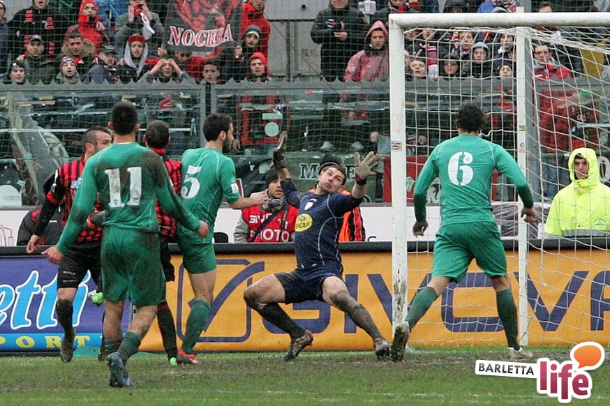 Tra pochi giorni si celebrerà la Disfida a Barletta, per ora nell'ambiente calcistico biancorosso si è consumata una disfatta. Lo 0-4 rimediato a Nocera Inferiore dai biancorossi, in tenuta verde per un pomeriggio, è stato un'autentica disfatta. Una partita decisa nella ripresa dopo un tempo di onorevole resistenza, con Chiosa, Daffara, Evacuo e Giuliatto che uno dopo l'altro hanno bucato con troppa facilità Liverani, con un Barletta ridotto in 10 sullo 0-2 a causa dell'espulsione di Pippa. Troppo evidenti le differenze tecniche nel cuore del campo, troppo nette le crepe che il fallimentare mercato di gennaio non ha colmato. La truppa biancorossa è durata un tempo, tornando a perdere dopo un mese di imbattibilità e restando impantanata con Sorrento e Carrarese nei bassifondi della graduatoria. La Nocerina, dal canto suo, si conferma formazione costruita per la vetta e rafforza la sua terza posizione, avvicinando l'Avellino, che nel prossimo turno arriverà al "Cosimo Puttilli". Ora sarà necessario leccarsi di fretta le ferite, ornare quanto prima la squadra che ha superato Perugia e Pisa. e capire che con questo atteggiamento il baratro della Seconda Divisione si avvicina sempre più. Noi intanto riviviamo il ko contro la Nocerina degli ex De Liguori e Mazzeo attraverso le istantanee più belle del match, colte dagli obiettivi di GiusFa Villani di ForzaNocerina.it e i riflessi filmati montati e concessi dall'Ufficio Stampa della S.S. Barletta Calcio: