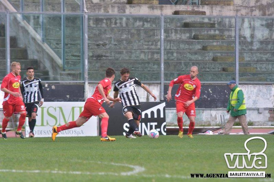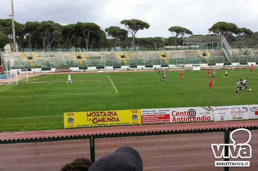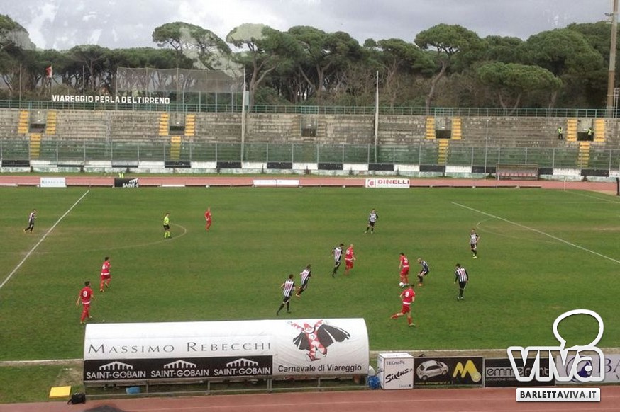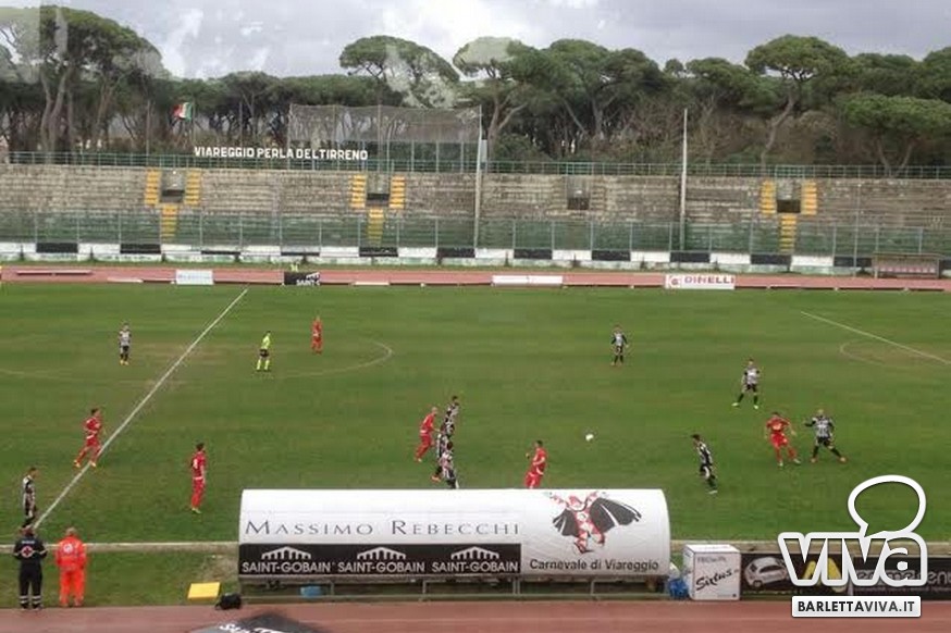 Un film già visto. Un Barletta generoso, capace questa volta anche di passare in vantaggio (il gol in trasferta mancava dall'8 dicembre 2013) e di far assaporare ai suoi tifosi l'illusione della vittoria, cede con il passare dei minuti all'avversario e lascia sorrisi e punti a Viareggio, al cospetto di un avversario non irresistibile ma affamato e determinato a riscattare il ko di sette giorni prima in quel di Ascoli: sconfitta numero 14 in stagione dopo 29 turni del girone B di Prima Divisione Lega Pro maturata e campionato che volge al termine senza acuti e con tante delusioni per Cane e compagni. L'1-2 rimediato ieri pomeriggio al "Torquato Bresciani" di Viareggio lascia il Barletta in penultima posizione, davanti solo alla Paganese e alla pari con l'Ascoli, e concretizza la quarta sconfitta di fila in trasferta per i biancorossi. Riviviamo le principali azioni di Viareggio-Barletta 2-1 attraverso la photogallery concessa dai colleghi di VersiliaToday e gli highlights di Amica9 Tv: