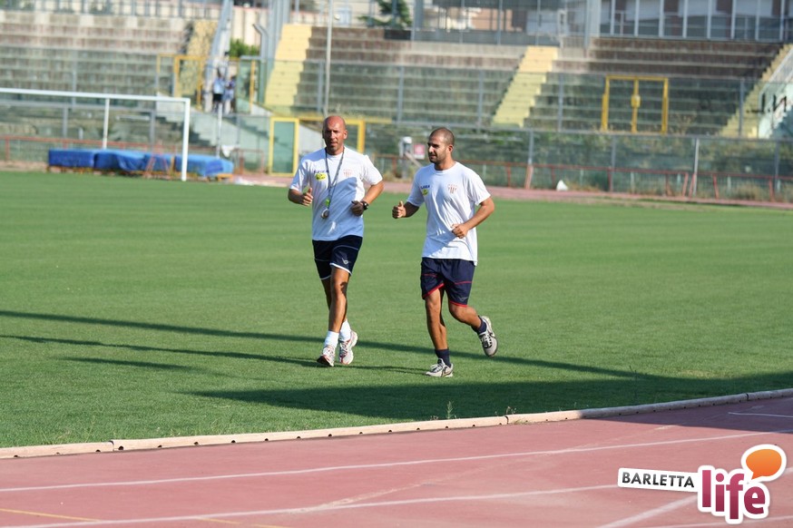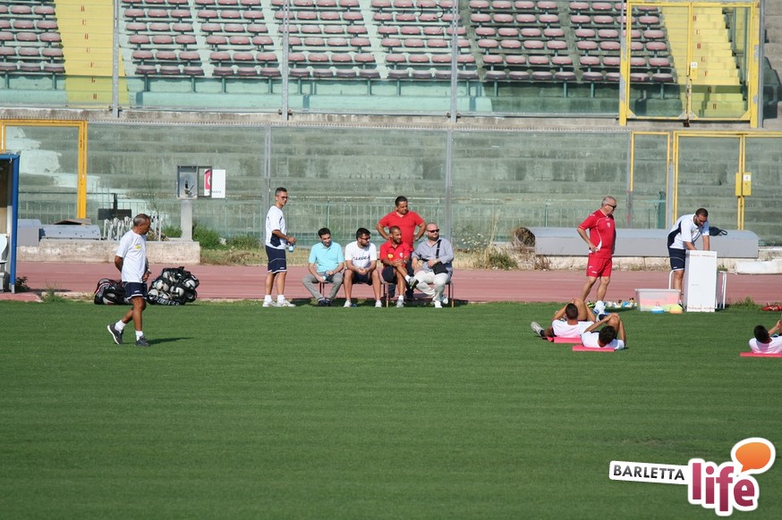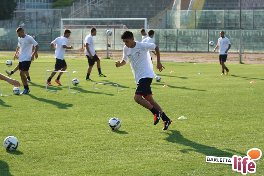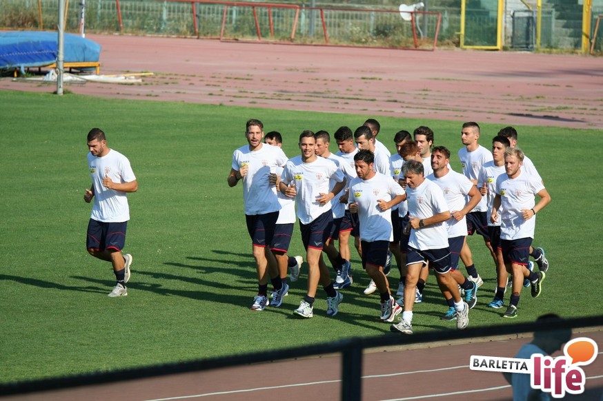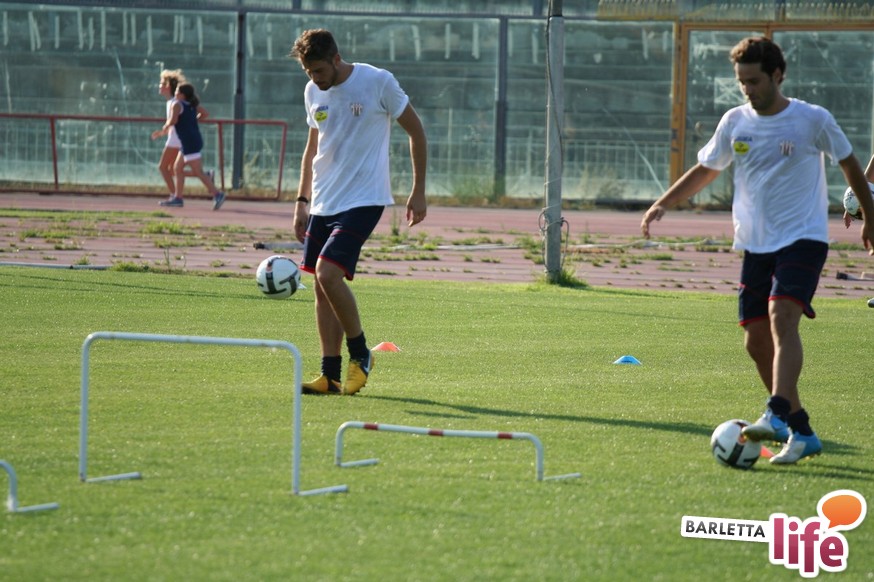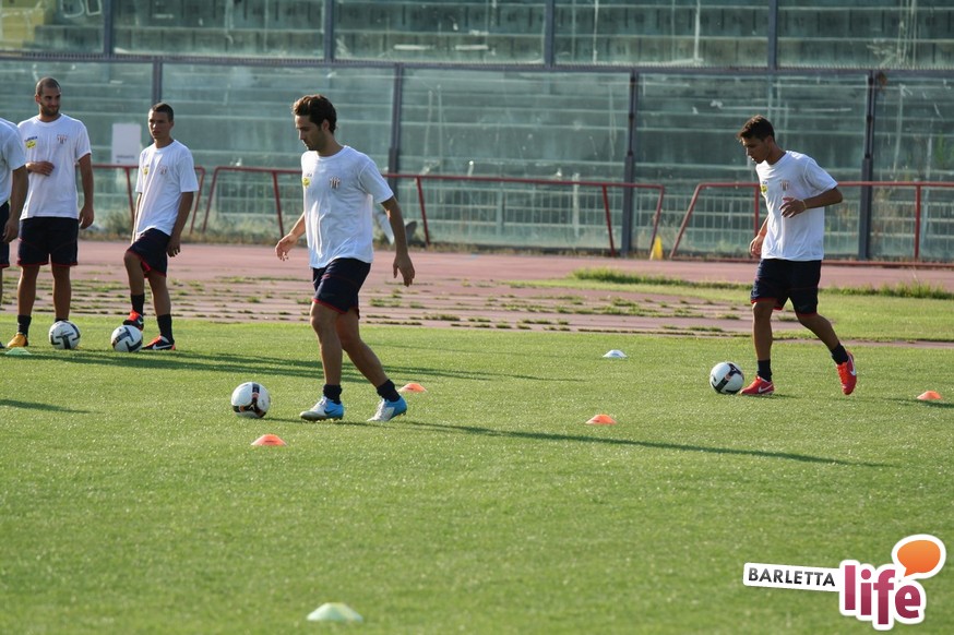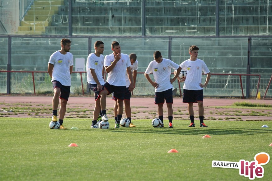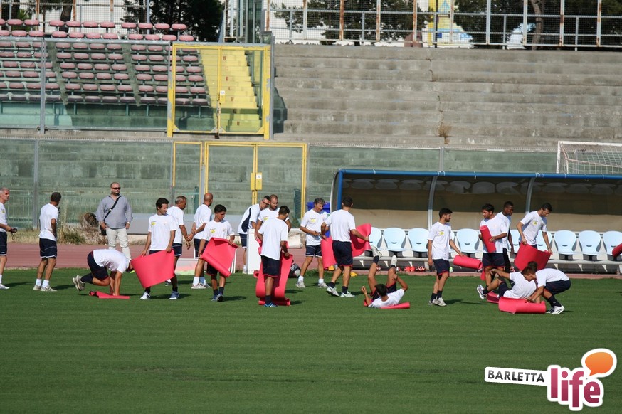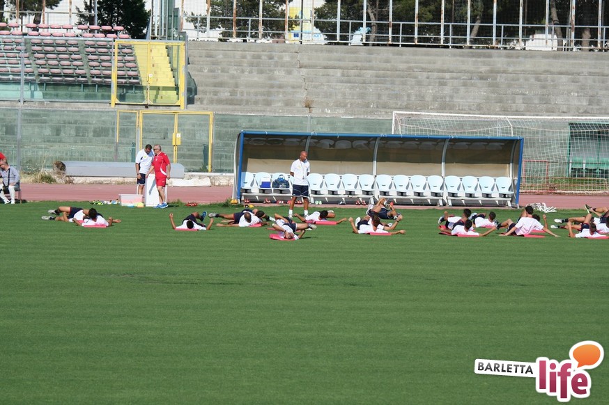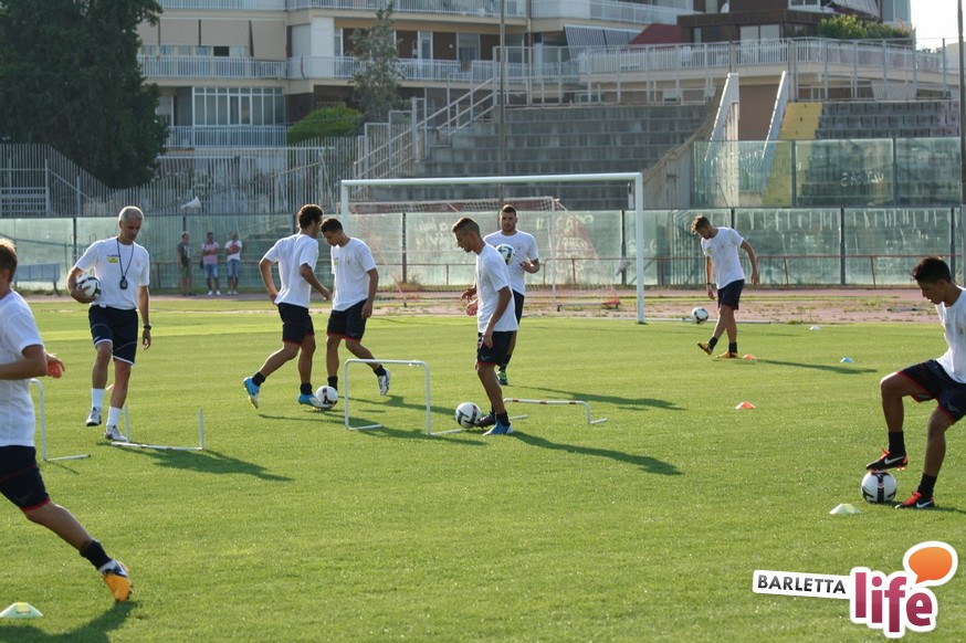 Il gruppo ha alternato una serie di corsette a bordo campo con esercizi aerobici e a corpo libero, per una seduta dalla durata di circa un'ora e mezza. Oltre a Zappacosta, assente perché impegnato nel lungo percorso di riabilitazione dopo l'intervento al crociato di maggio, non si è allenato Daniele Simoncelli, che ha assistito agli allenamenti in borghese: l'attaccante romagnolo, al quinto anno a Barletta, è in odore di partenza e se dovesse avere offerte soddisfacenti in Lega Pro potrebbe rescindere il contratto con il sodalizio di via Vittorio Veneto.