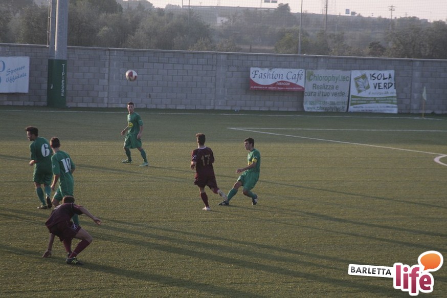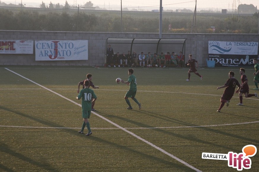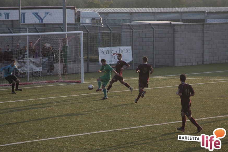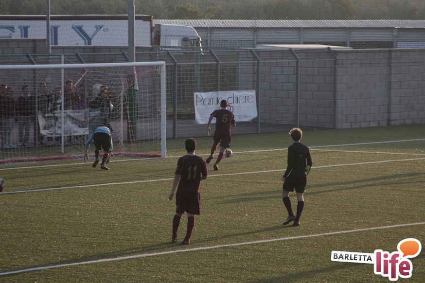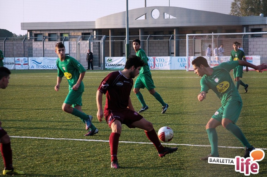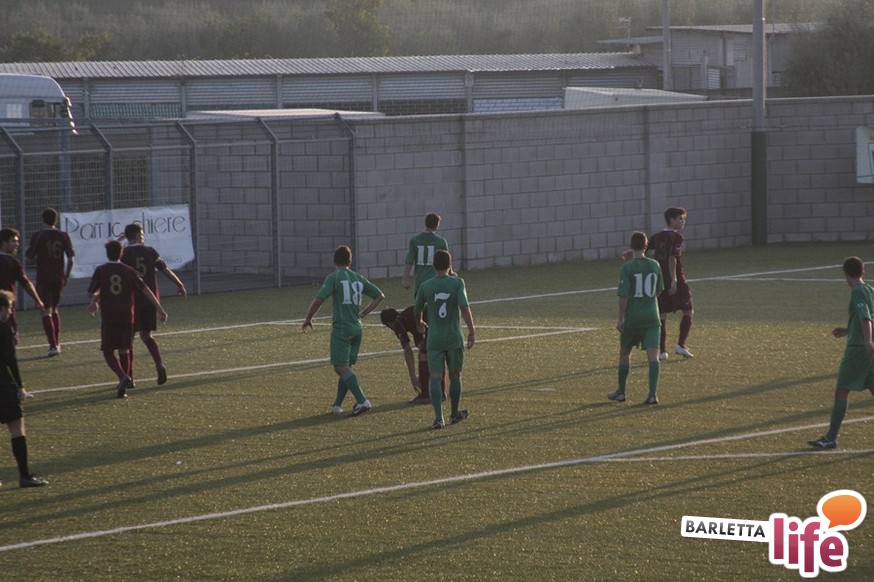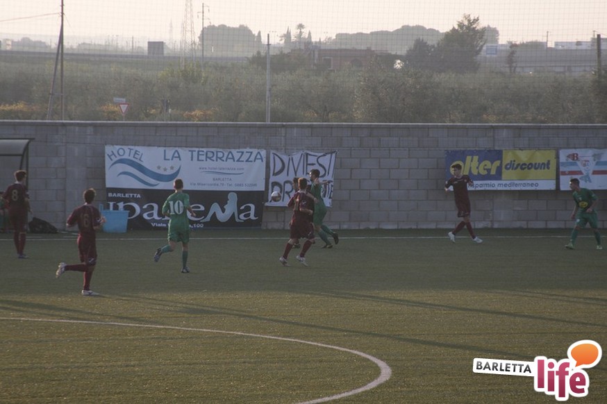 La cronaca- Biancorossi in vantaggio al 14': azione di rimessa che Lorito realizza il vantaggio anticipando con un tocco di sinistro il portiere avversario in uscita. Al 27' Palmitessa raccoglie un assist di Ragno dalla destra e, dai sedici metri, supera con un preciso destro l'estremo difensore campano. I biancorossi sono padroni del campo e al 43' chiudono i conti: Cormio crossa dalla sinistra per Palmitessa che, indisturbato all'interno dell'area di rigore, deposita in rete all'altezza del secondo palo. L'esterno d'attacco barlettano completa la personale tripletta al 27' del secondo tempo, con un tiro dal limite dell'area che giunge a conclusione di un'azione manovrata. Terminava con un netto successo per i ragazzi di Pavone jr.: è tornato il sorriso in casa biancorossa dopo un mese senza vittorie.