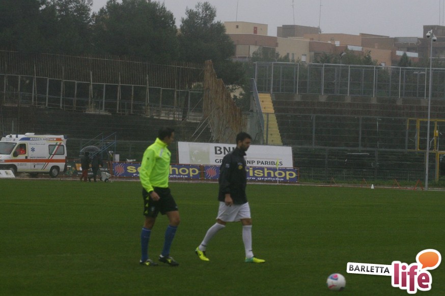 Come spesso accade, come recita un vecchio adagio, "tra i due litiganti, il terzo gode". E anche tra Barletta e Pontedera è accaduto questo, visto che biancorossi e granata, che dovevano affrontarsi nel match per la quattordicesima giornata del girone B del campionato di Prima Divisione. A vincere – ma solo metaforicamente – è stata la pioggia copiosa, caduta ininterrottamente sulla Città della Disfida sin da sabato pomeriggio. La notizia del possibile rinvio del match era già rimbalzata su tutti i monitor e sui social network, ma la conferma ufficiale è arrivata soltanto alle ore 14:25. La comunicazione del rinvio è apparsa sul sito ufficiale del sodalizio di via Vittorio Veneto, al termine dell'ultimo sopralluogo tentato dal fischietto dell'incontro, il signor Ros di Pordenone, e dai due capitani, Vincenzo Camilleri e Manuel Caponi. Nel girone B del campionato di Prima Divisione si tratta del secondo rinvio di giornata dopo quello di Catanzaro-Benevento, e per il recupero si parla dell'11 o del 18 dicembre. Tra Barletta e Pontedera non ci sono vinti e vincitori, tutti tornano a casa senza aver potuto ammirare la solita domenica di calcio.