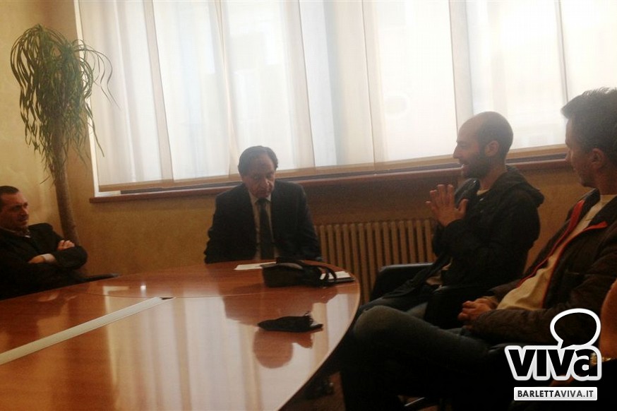 Tanto tuonò che alla fine piovve. Dopo il botta-e-risposta virtuale nato un paio di settimane fa sulla pagina Facebook del sindaco Pasquale Cascella, nella giornata di ieri il primo cittadino di Barletta, unitamente agli assessori Antonio Divincenzo e Antonio Rizzi ha accolto a Palazzo di Città una delegazione del Barletta Club "I Biancorossi". Sul tavolo dell'incontro il progetto di iniziativa popolare che il club di tifosi intende perseguire per dare un sostegno al nuovo assetto societario di un'azienda in vendita, seguendo un modello già sperimentato positivamente da numerosi club sportivi con il sostegno della Lega Pro.