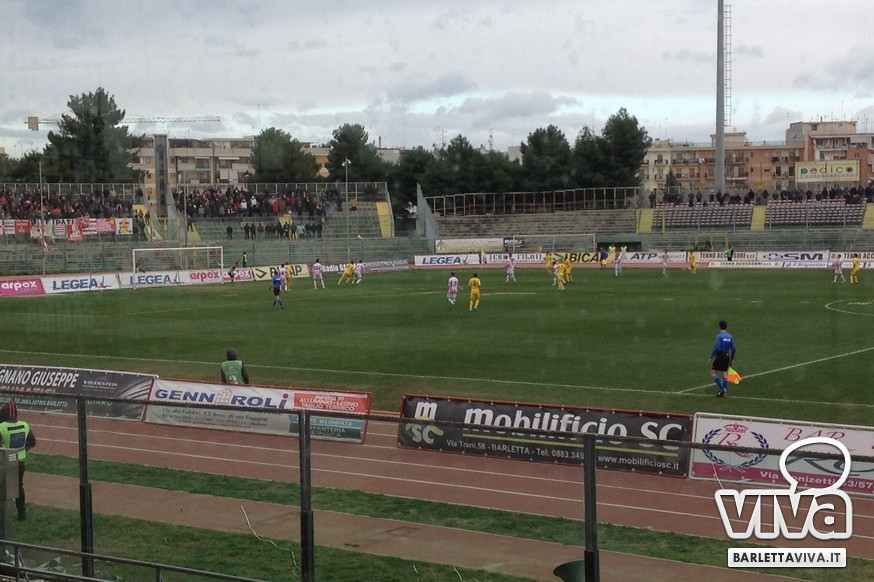 Nel finale Orlandi e Stellone attingono dalla panchina: al 35' si rivede dopo quattro mesi La Mantia, che rileva uno spento Cicerelli, mentre Zigon lascia il posto a Branzani. Su sponda ciociara Gessa dà fiato a Frara, mentre Carlini suentra a Frabotta. Al 39' Mantovani fa tremare Zappino: il suo piazzato dai 30 metri trova l'attento portiere ospite. Ancora Barletta al 40': filtrante di Mantovani per Ilari, tocco corto sul quale ancora Zappino è prodigioso. Gol sbagliato, gol (quasi) subìto: corner da destra di Gessa, Blanchard stacca in anticipo su tutti e supera Liverani, ma Piscopo segnala la spinta del numero 6 ciociaro su Camilleri. Ribaltamento di fronte e Barletta in vantaggio: D'Errico da sinistra offre un cross a giro sul quale La Mantia anticipa tutti e fa 2-1. Ritorno al gol dopo sette mesi per l'attaccante ciociaro, che ritrova la rete contro la squadra che l'aveva lanciato. Il "Puttilli" esplode: inutili gli attacchi frusinati, Branzani spreca il tris. E' festa: Frosinone ko, biancorossi che possono trovare il secondo sorriso di fila in casa.
