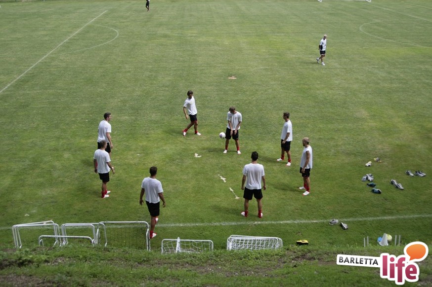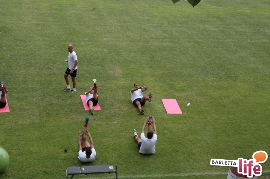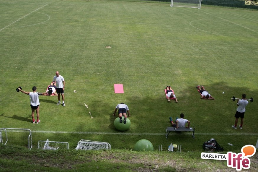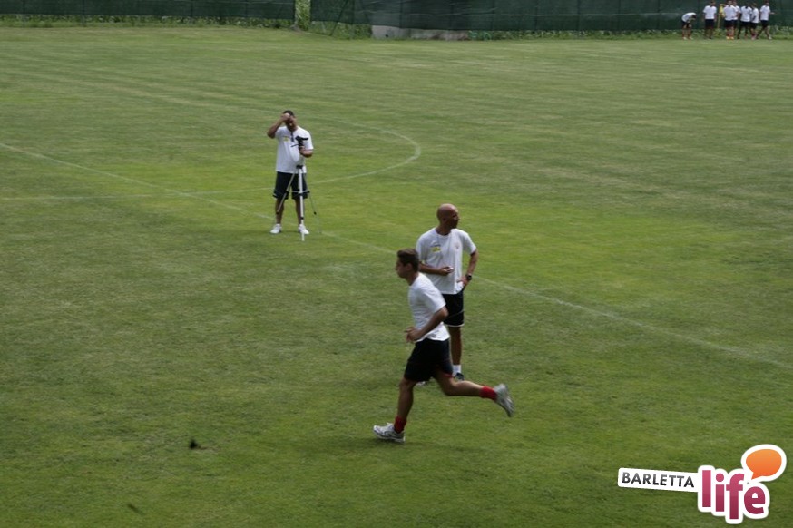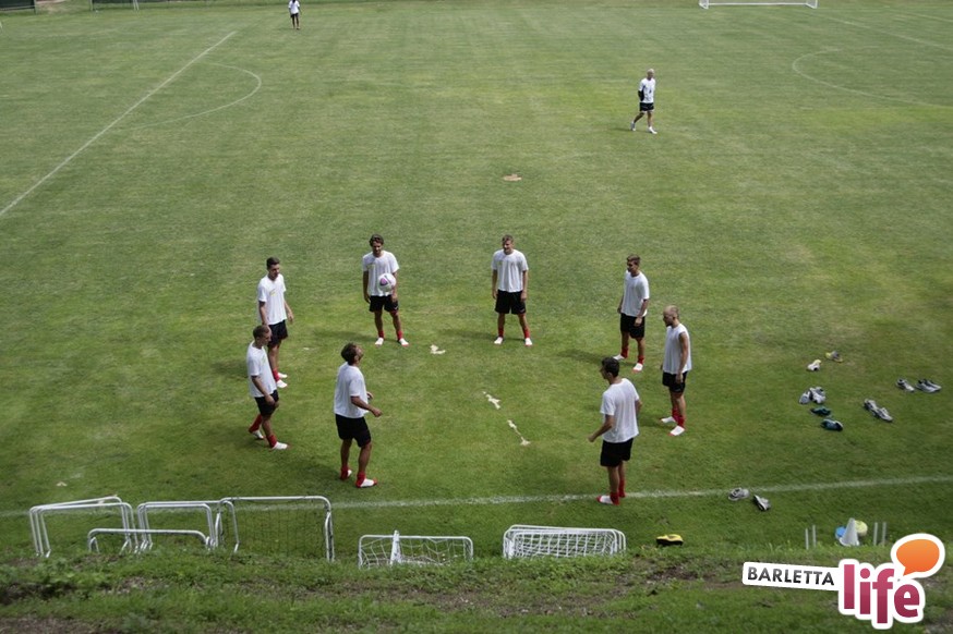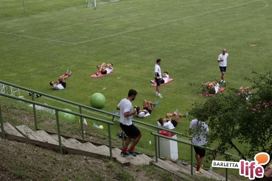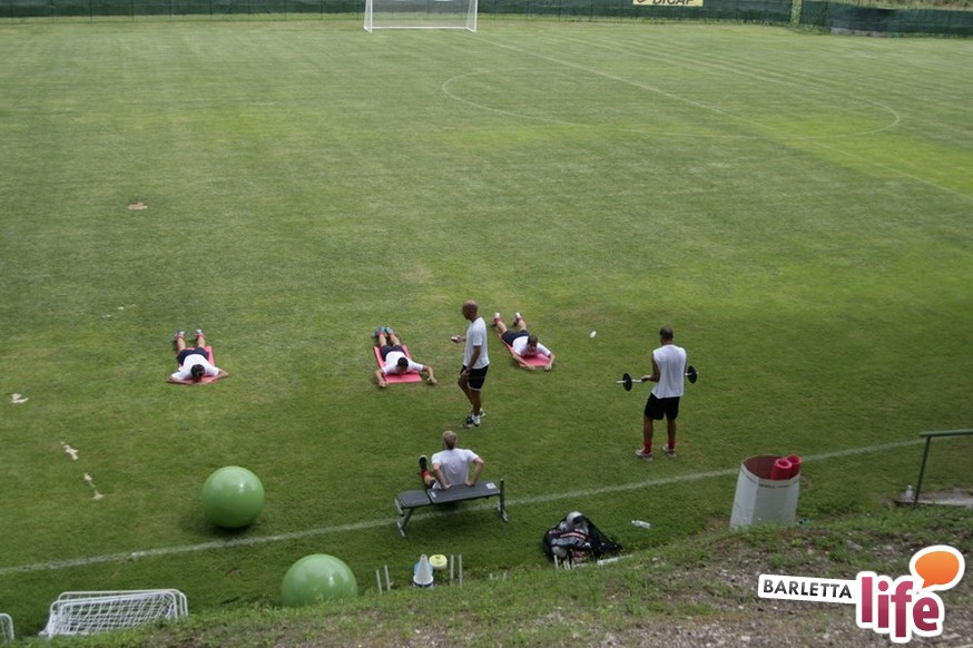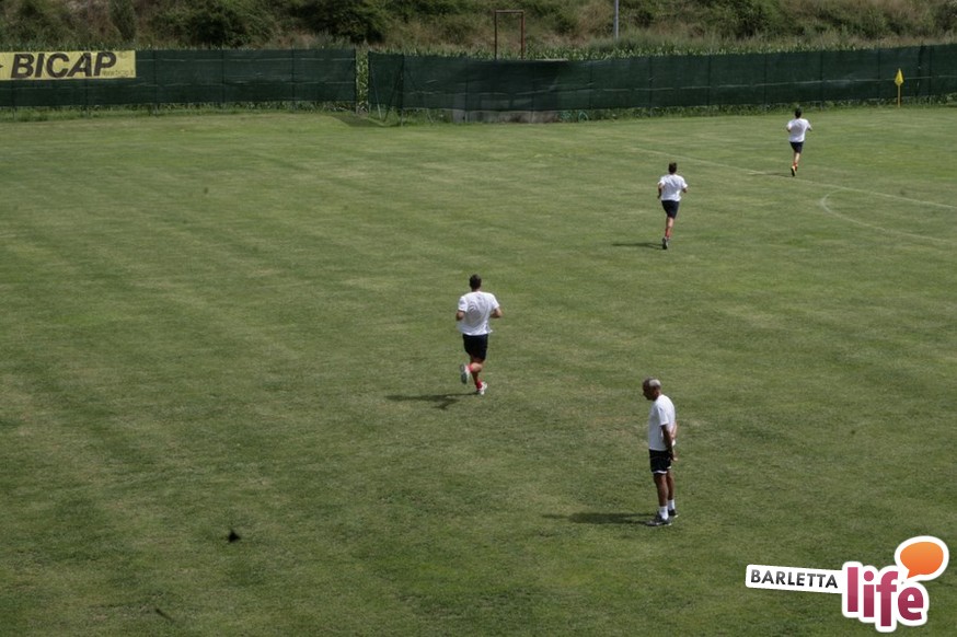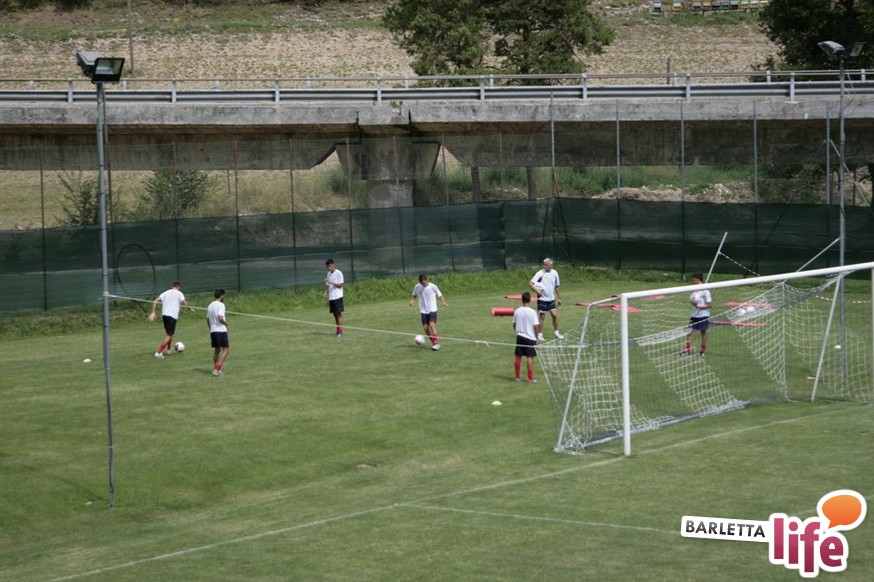 Un'ora e mezza di corsa e cura della fase tecnica questa mattina per il Barletta Calcio 2013/2014 in quel di Cascia. Dopo la vittoria ottenuta ieri in amichevole contro la compagine locale nell'esordio stagionale, il gruppo a disposizione di mister Nevio Orlandi ha ripreso a lavorare sul campo di allenamento: sessione avviata con gruppi divisi tra palestra e lavoro atletico con il prof. Mondilla e il prof. Nanula e i "Berretti" impegnati nel palleggio a bordo campo. A seguire, scatti sul breve per tutto il gruppo e "torelli" al volo.