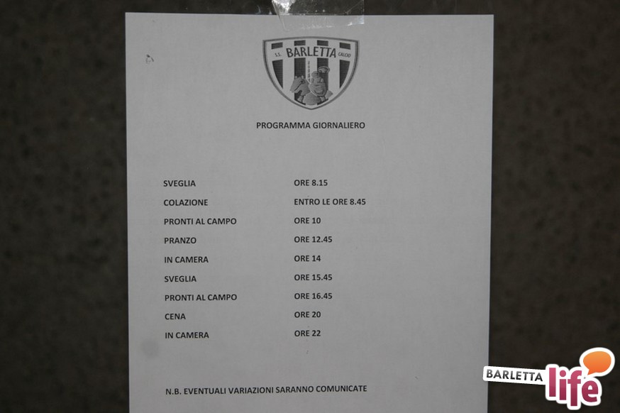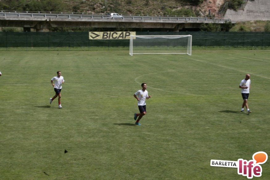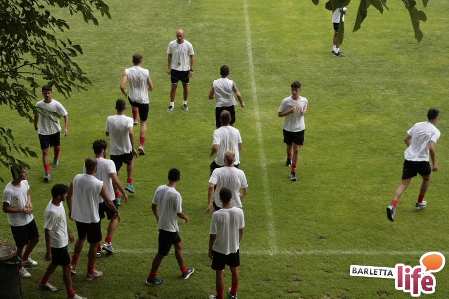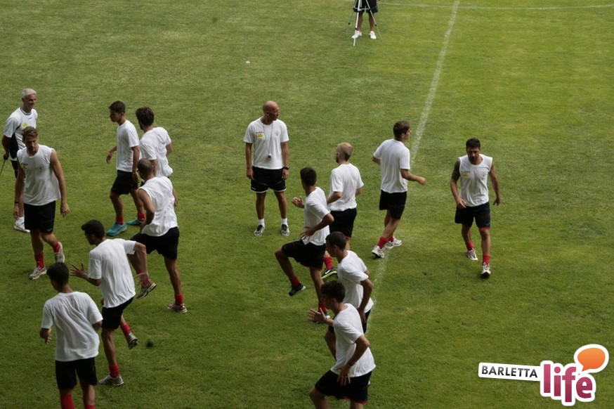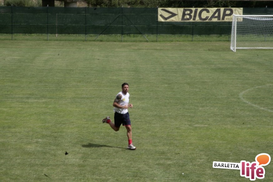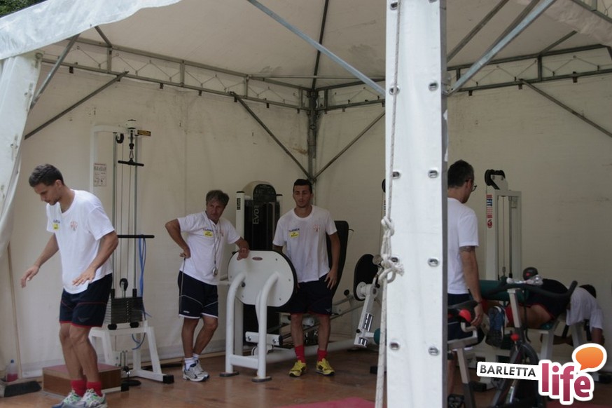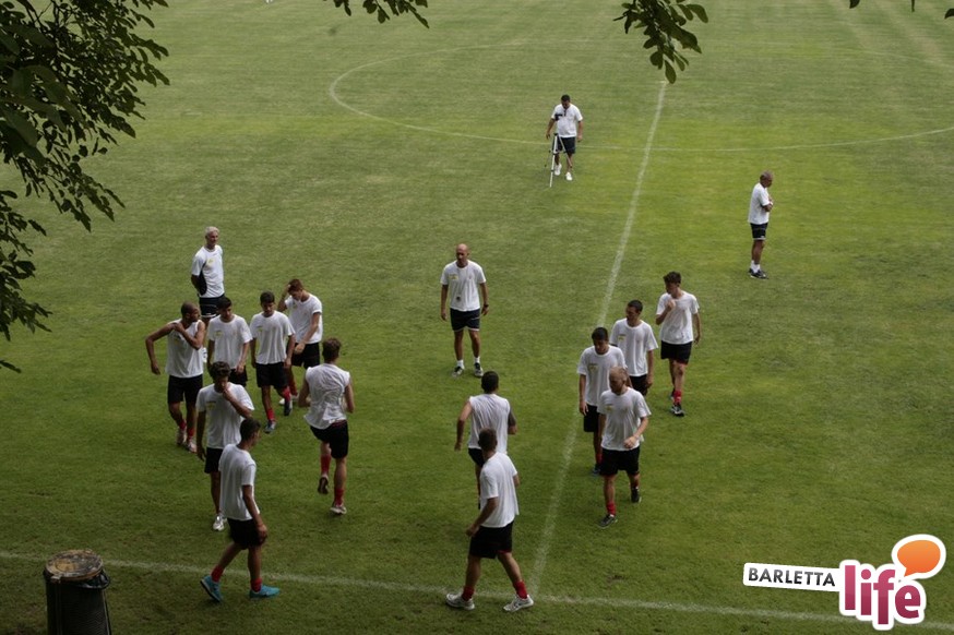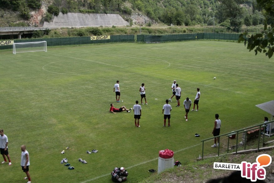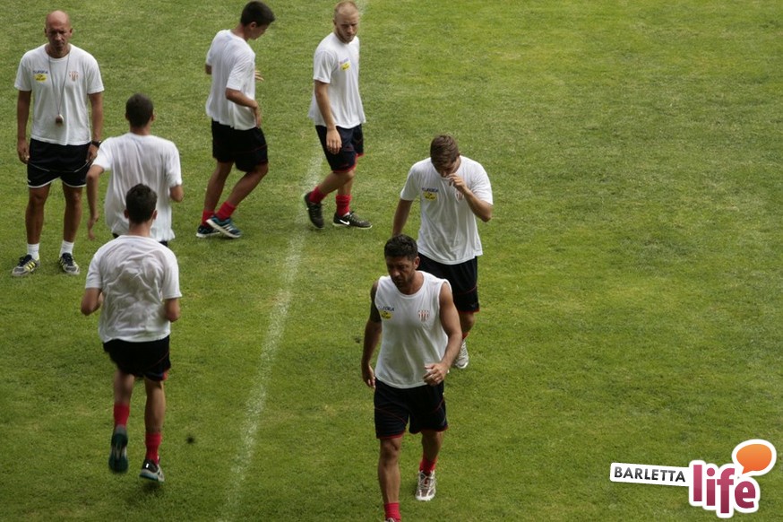 Un'ora e mezza di corsa e cura della fase tecnica questa mattina per il Barletta Calcio 2013/2014 in quel di Cascia. Dopo la vittoria ottenuta ieri in amichevole contro la compagine locale nell'esordio stagionale, il gruppo a disposizione di mister Nevio Orlandi ha ripreso a lavorare sul campo di allenamento: sessione avviata con gruppi divisi tra palestra e lavoro atletico con il prof. Mondilla e il prof. Nanula e i "Berretti" impegnati nel palleggio a bordo campo. A seguire, scatti sul breve per tutto il gruppo e "torelli" al volo.