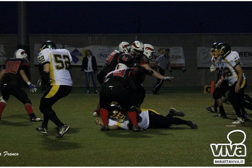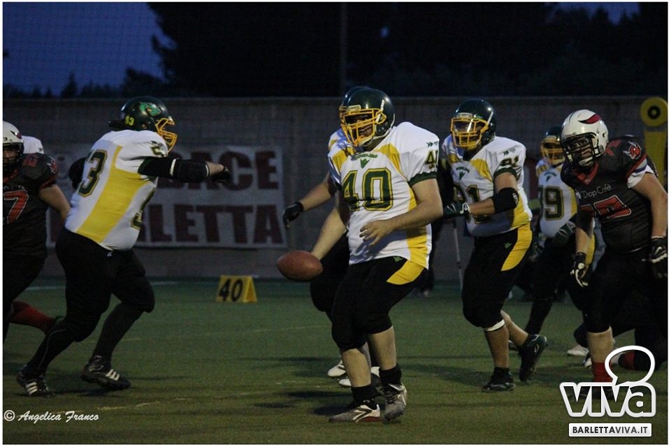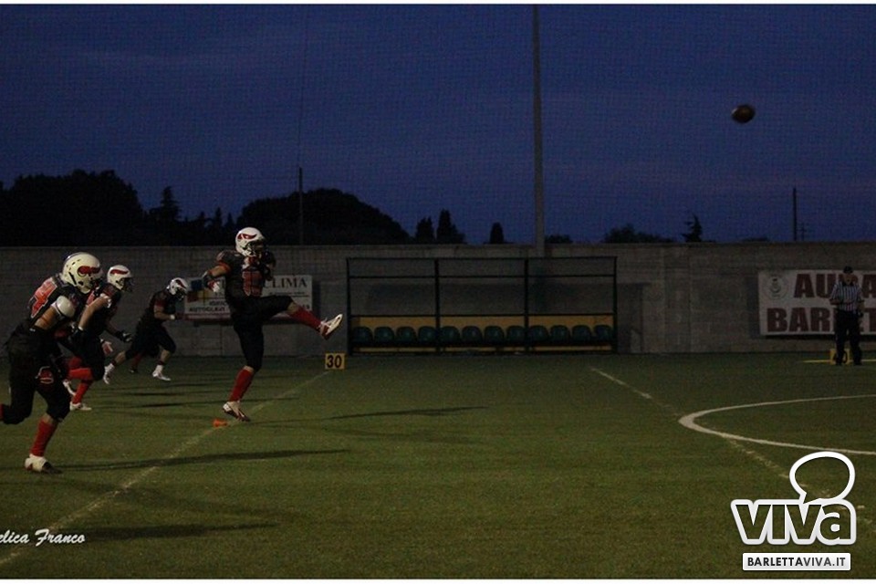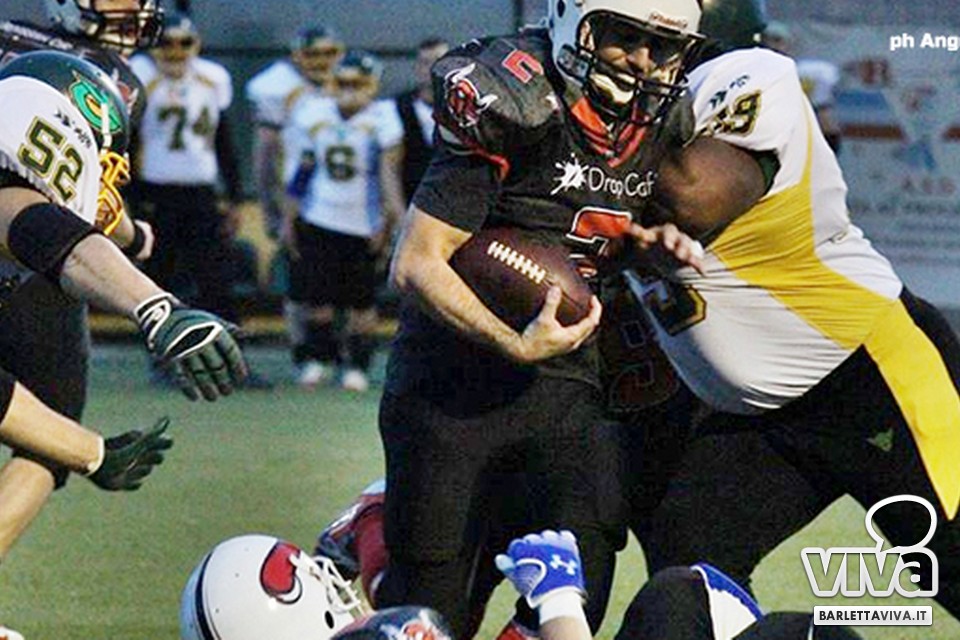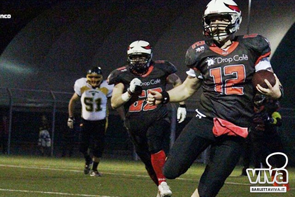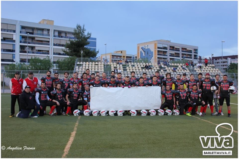 Una vittoria per archiviare la prima parte di stagione e proiettarsi sui playoff. Sabato sera i Mad Bulls Barletta hanno superato agevolmente e largamente sul sintetico del "Manzi-Chiapulin" i Goblins Lanciano, giunti all'ombra di Eraclio in edizione rimaneggiata, collezionando un largo 56-0. Successo numero 5 su 6 impegni nel girone, che non è però valso il sorpasso sui Patriots Bari/Team Puglia, vittoriosi per 21-0 sui Brindisi Bucks e primi al termine delle qualificazioni per effetto del miglior parziale negli scontri diretti contro i Tori Matti del poker tecnico Papalino-Banks-Calò-Allegretti. I Mad Bulls hanno così terminato il gruppo B in seconda posizione e torneranno in campo nell'ultimo weekend di maggio per le Wild Card, contro un avversario da definire: per avere la griglia definitiva da Nord a Sud, occorrerà attendere la griglia ufficiale della post-season, che sarà nota soltanto all'indomani dell'incontro del 23 Maggio tra Crabs e Gladiatori.